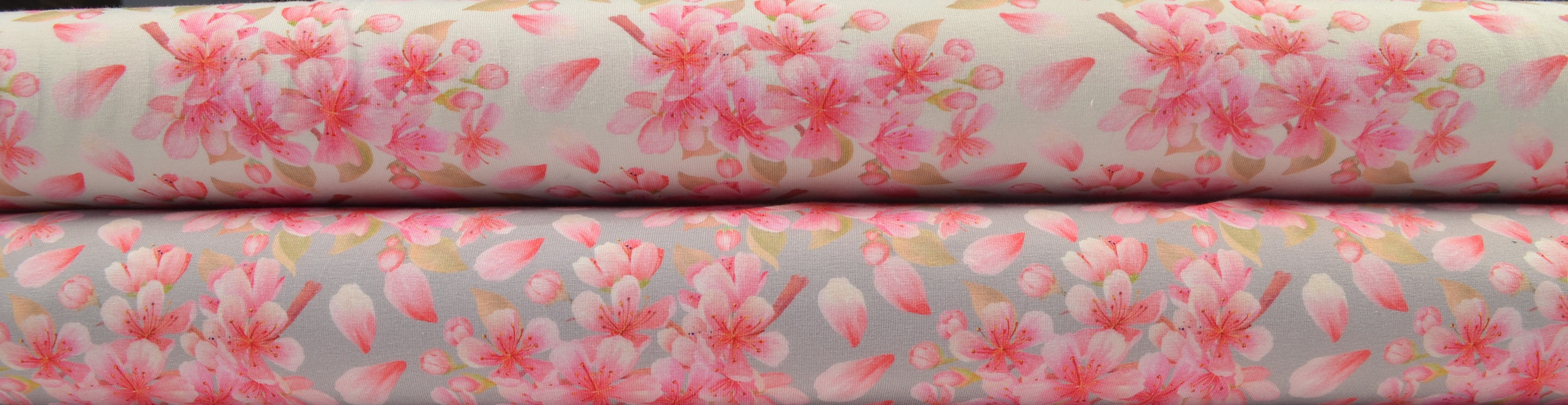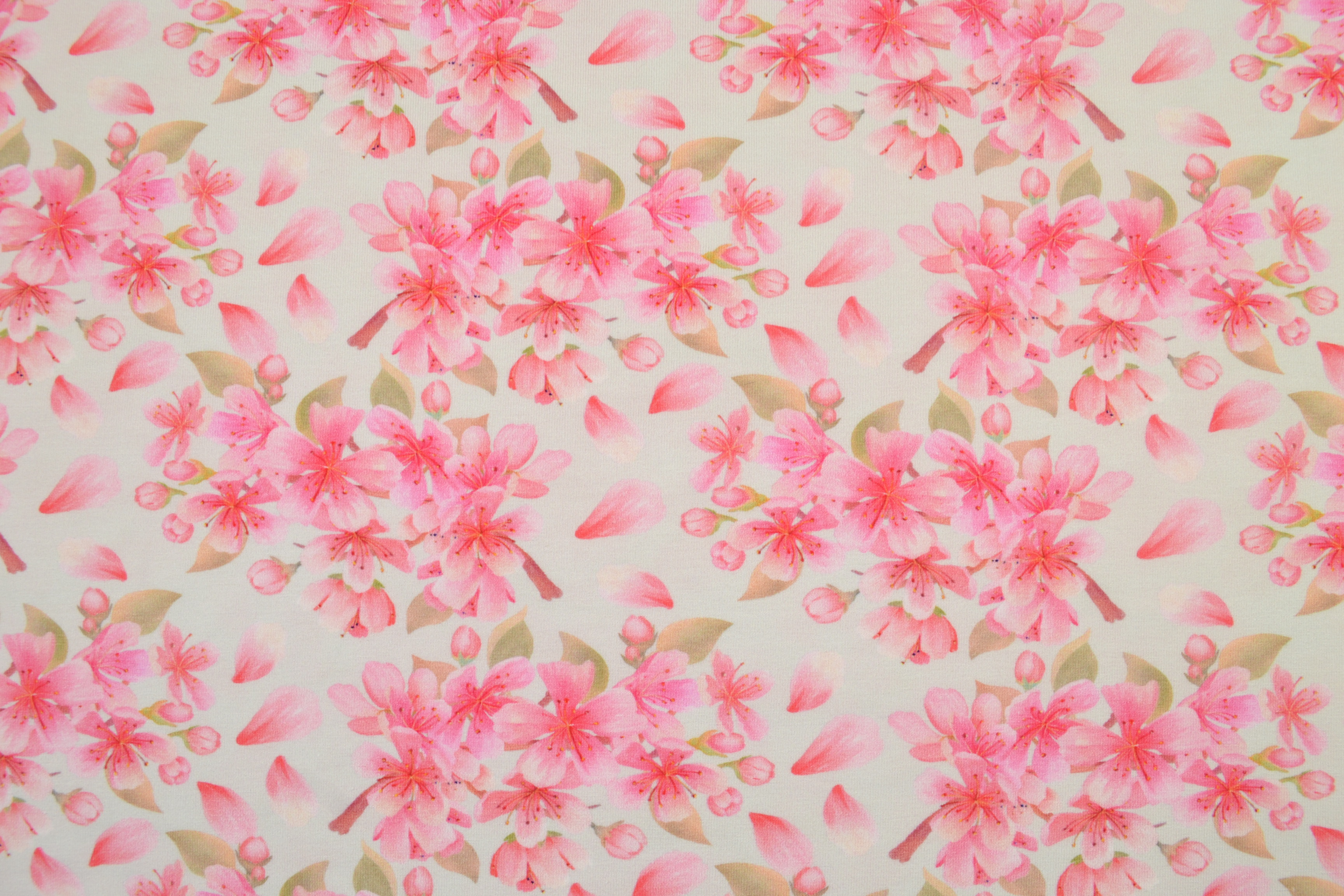 Produktinformationen "Baumwolljersey Bio Blüten, weiß/rosa"