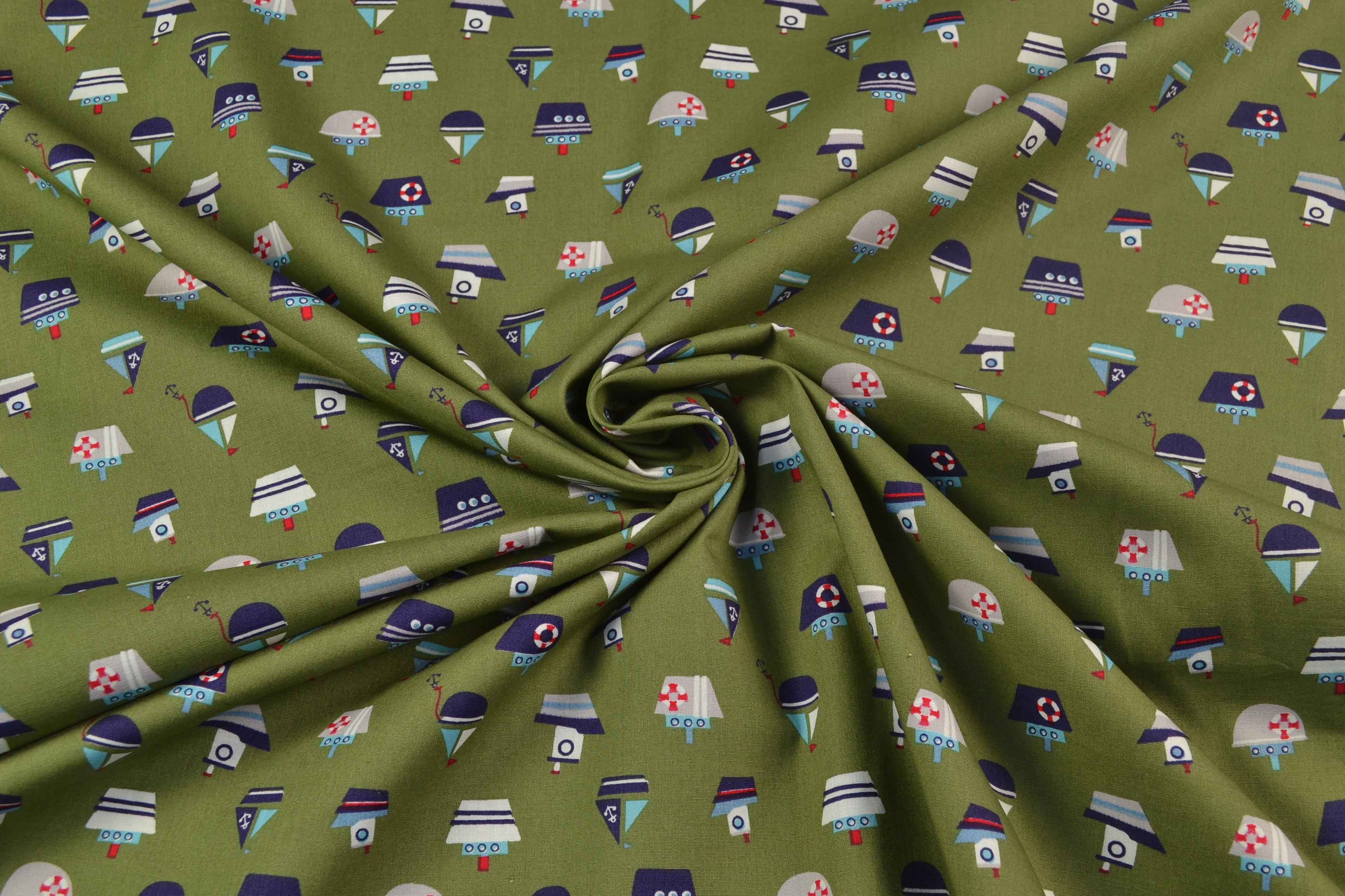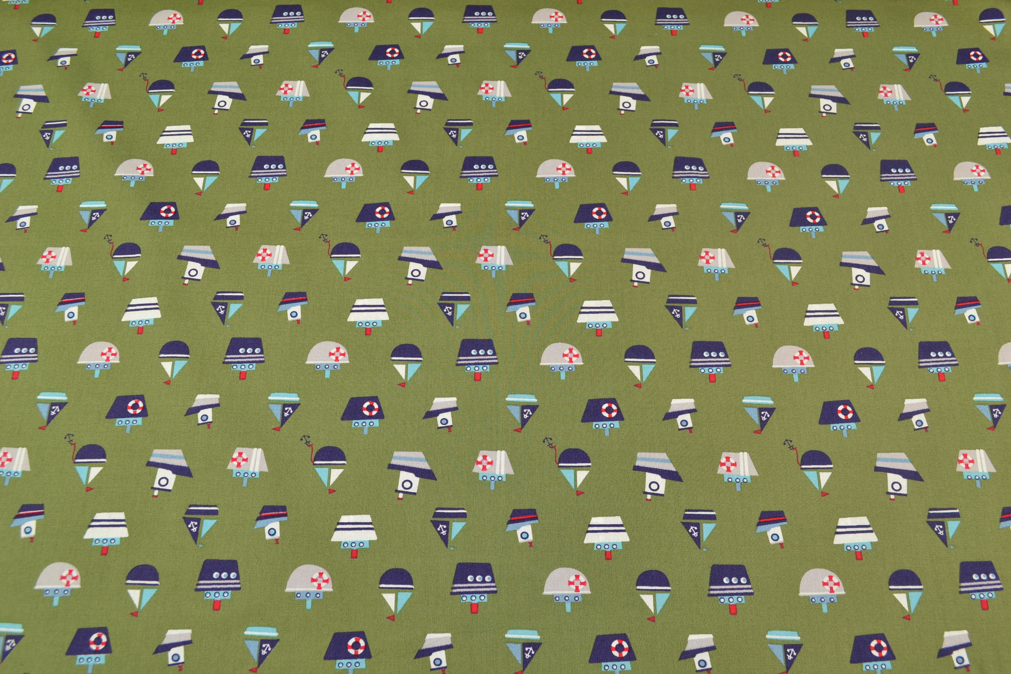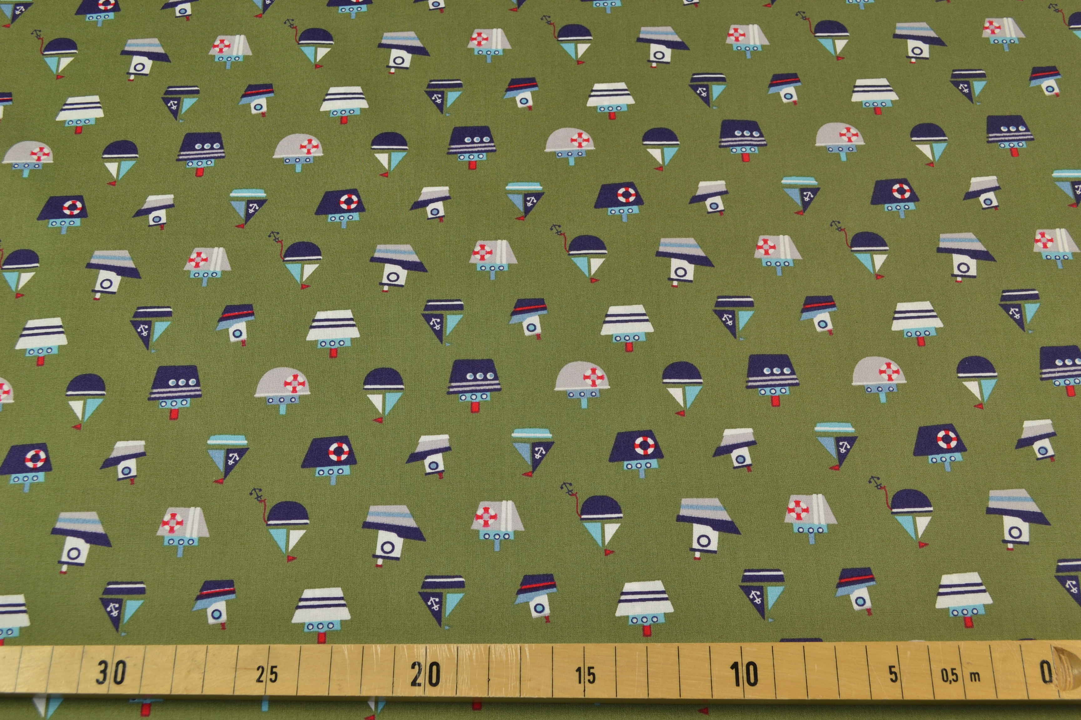 Produktinformationen "Baumwollstoff Schiffe, khaki"