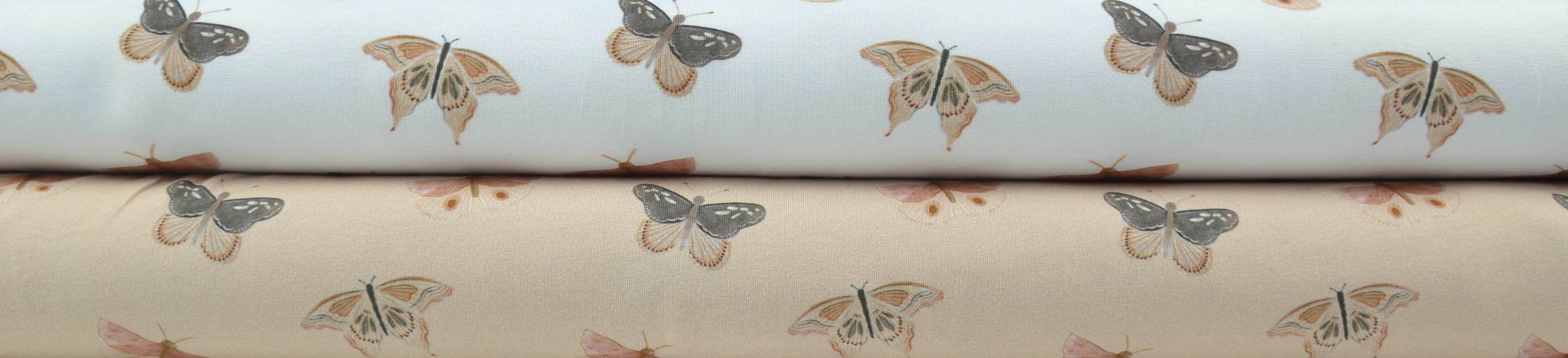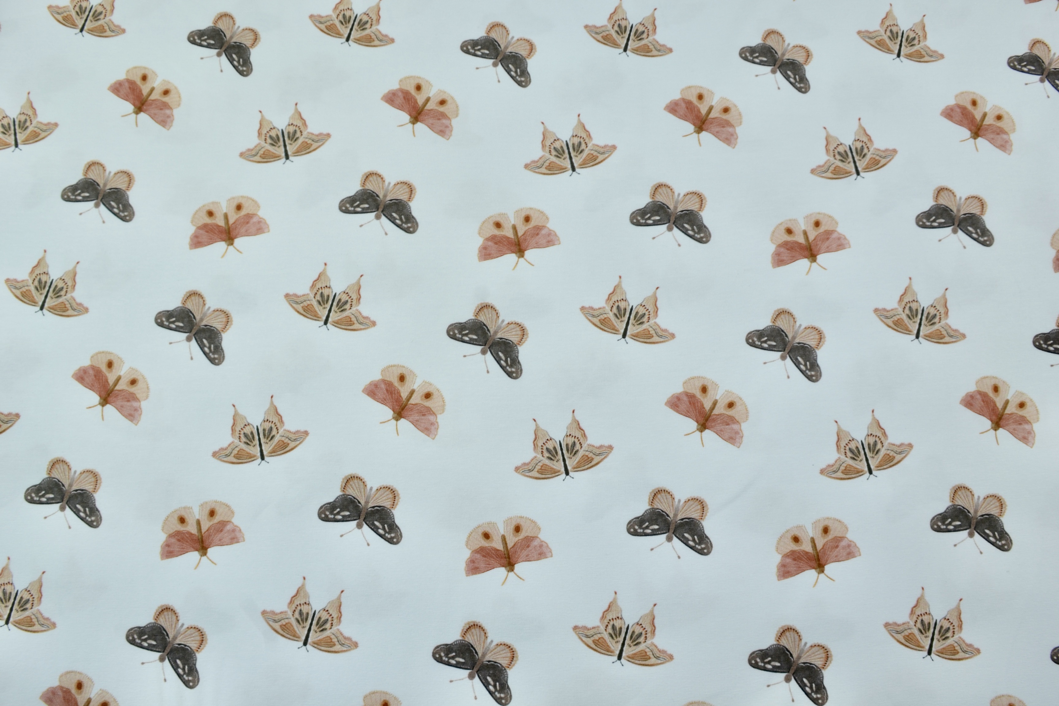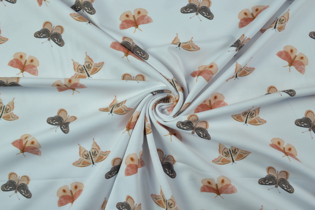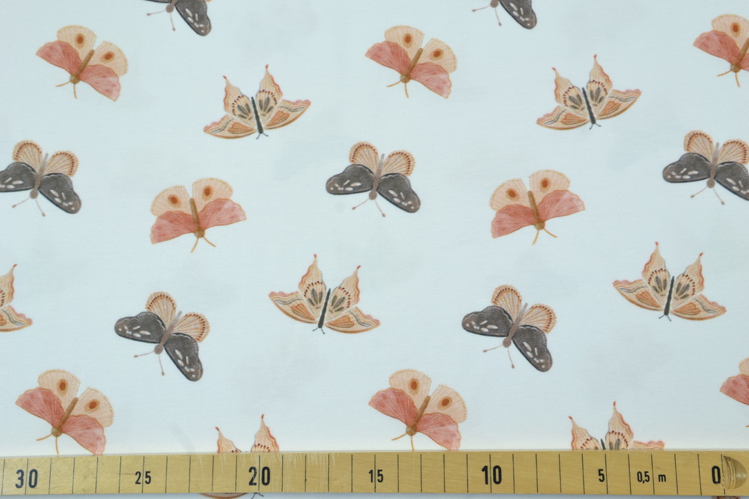 Produktinformationen "Bio Baumwolljersey Digitaldruck, Schmetterlinge weiß"