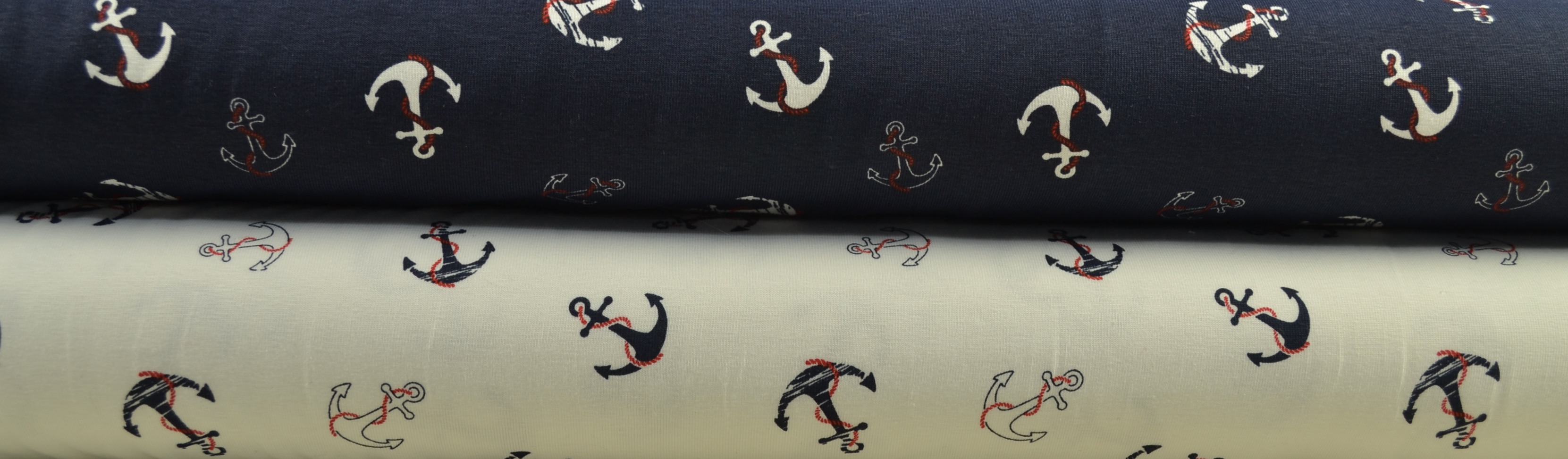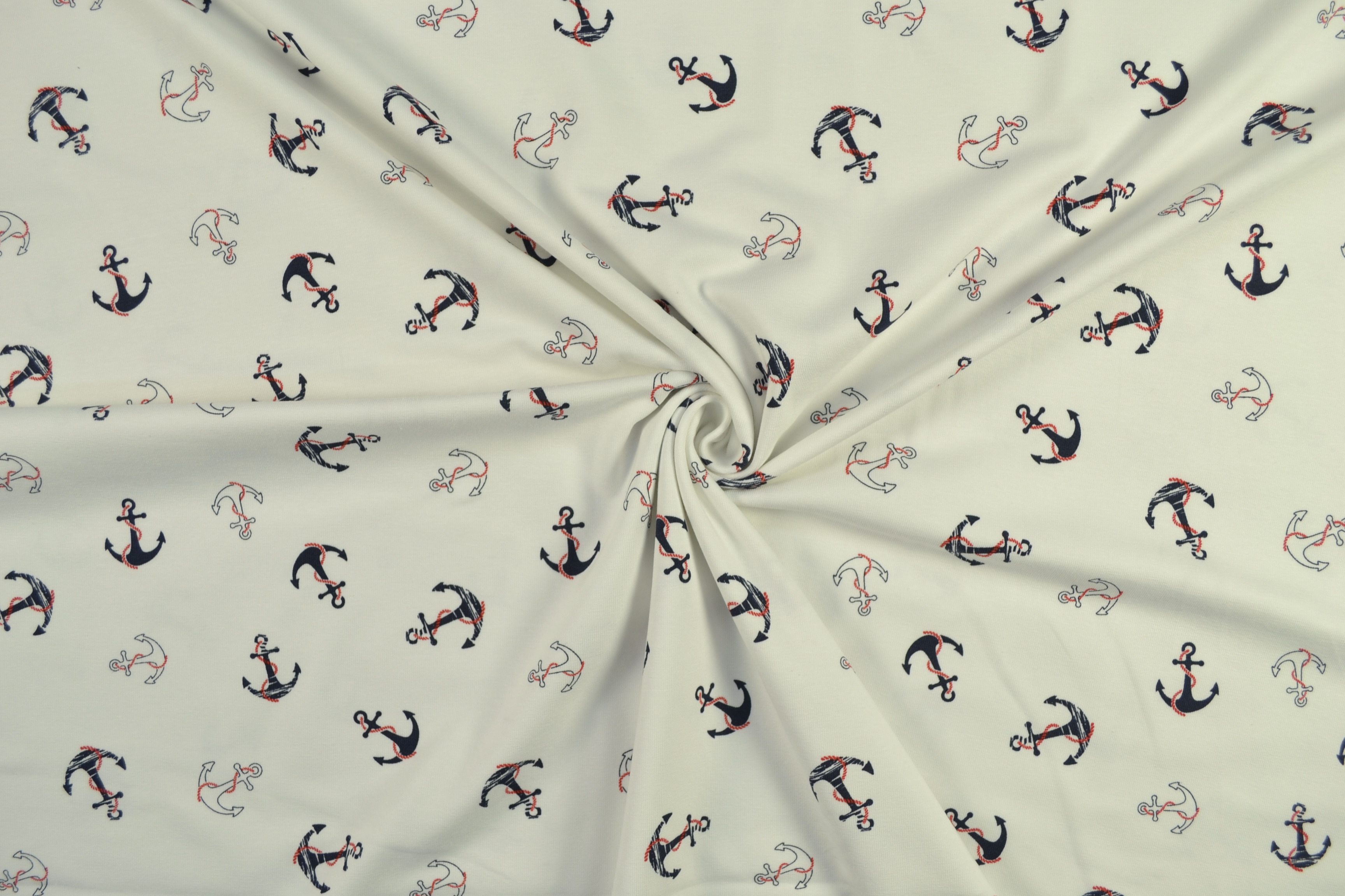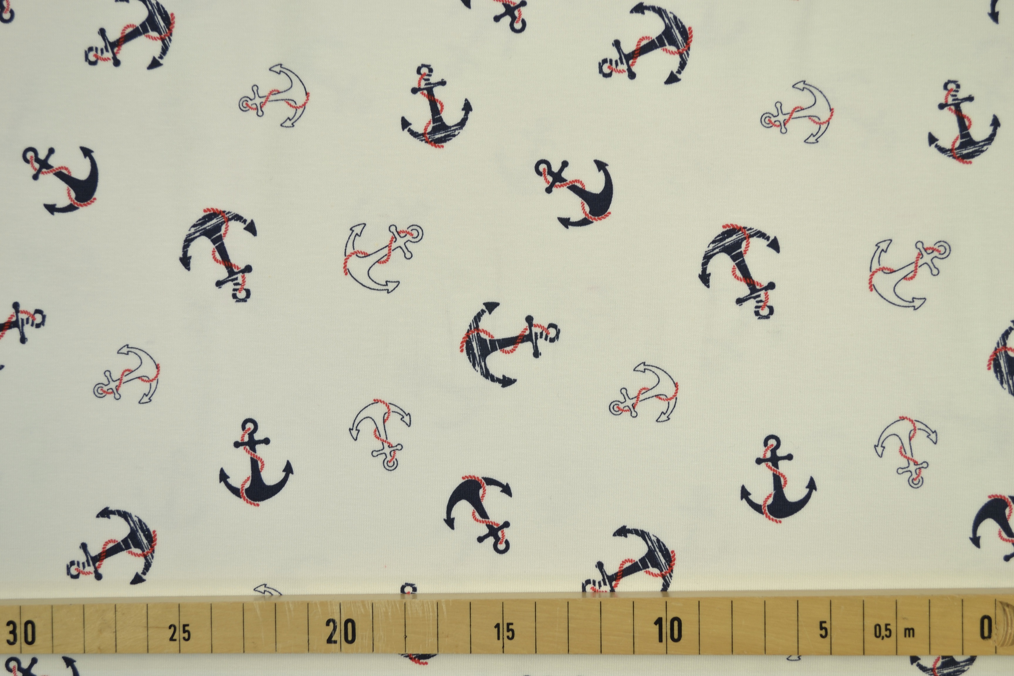 Produktinformationen "Baumwolljersey bedruckt Anker, weiß"