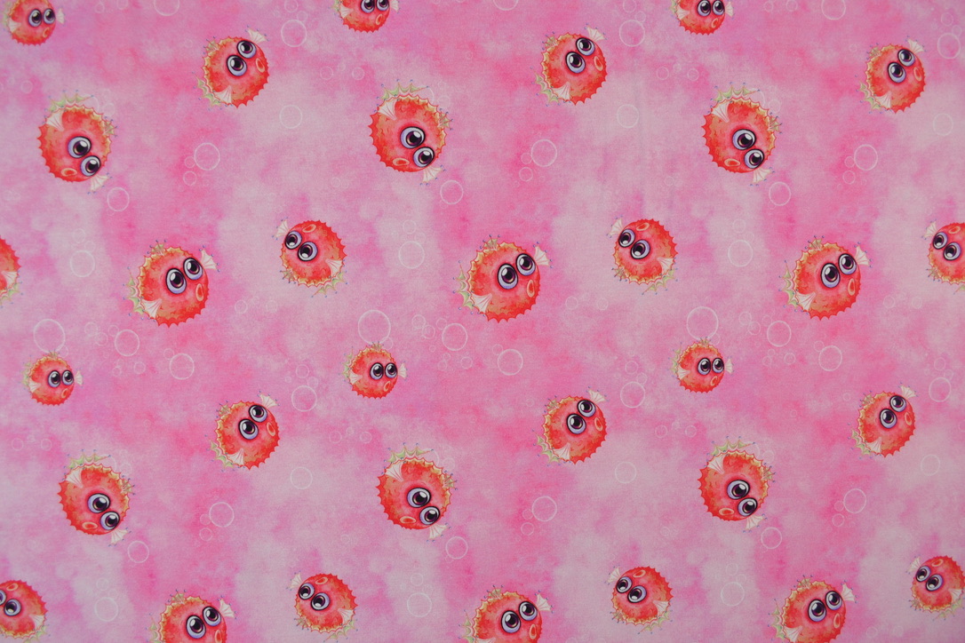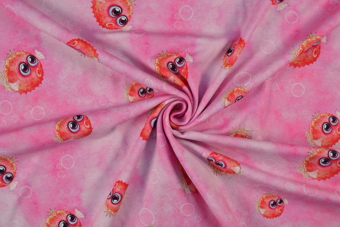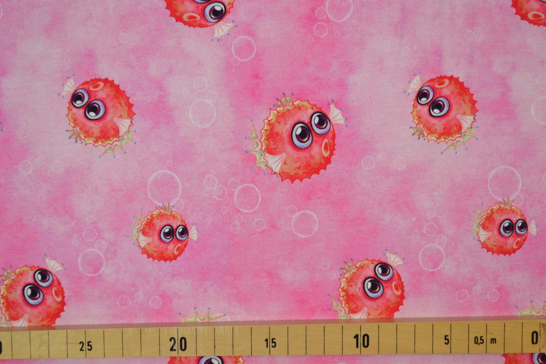 Produktinformationen "Baumwolljersey bedruckt Kugelfisch, pink"