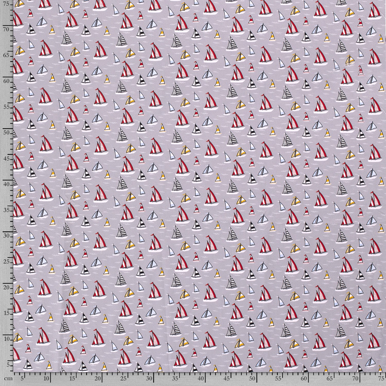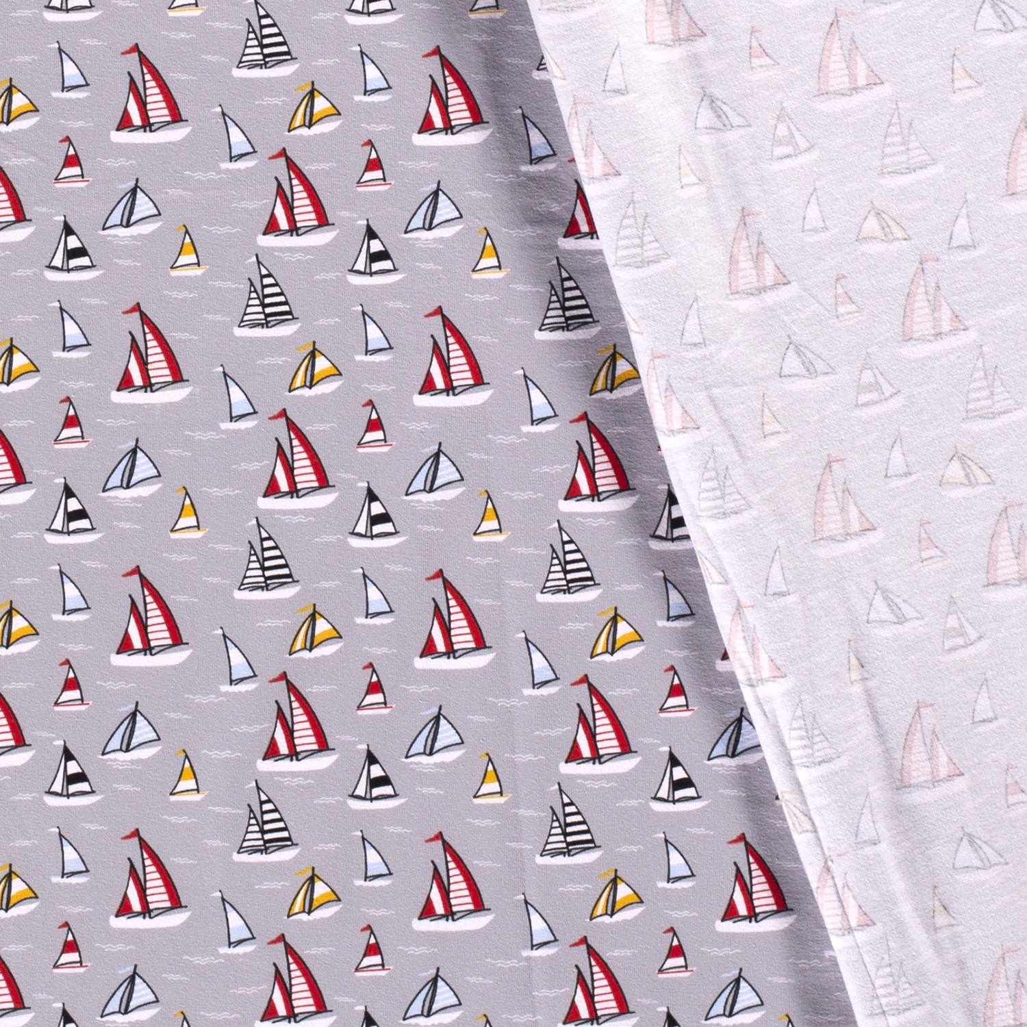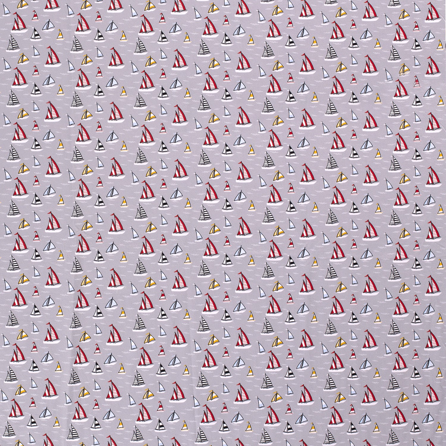 Produktinformationen "Baumwolljersey bedruckt Segelboote, hellgrau"
