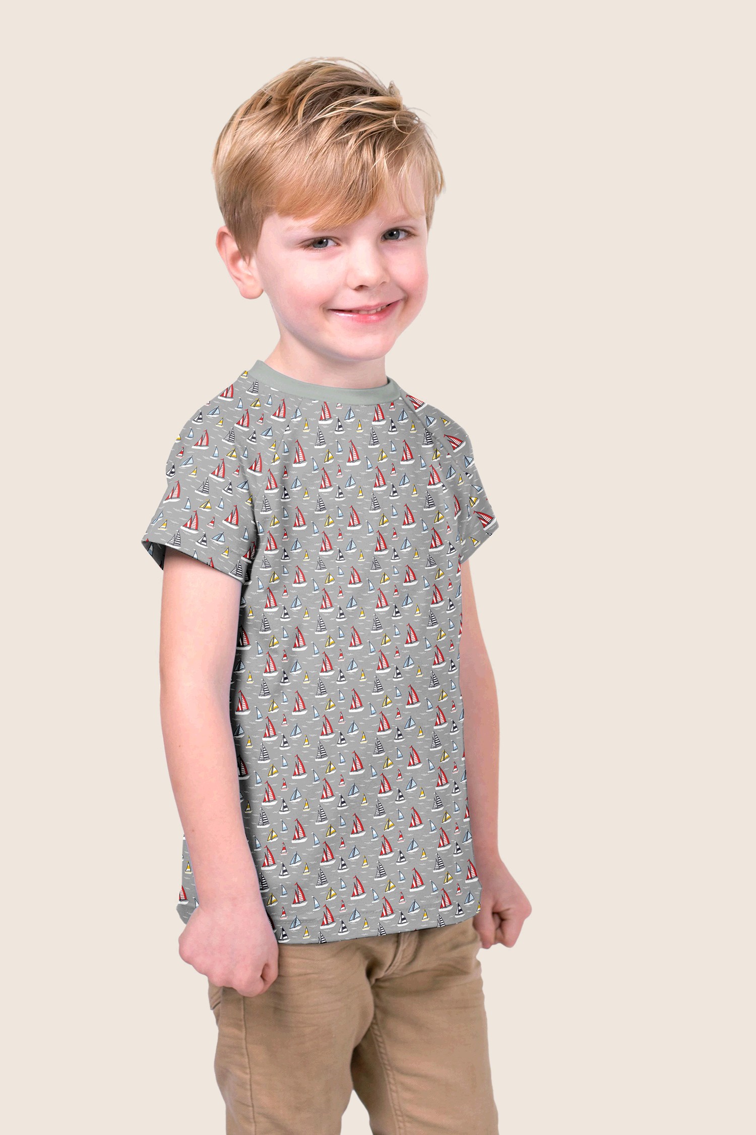 Baumwolljersey bedruckt Segelboote, hellgrau