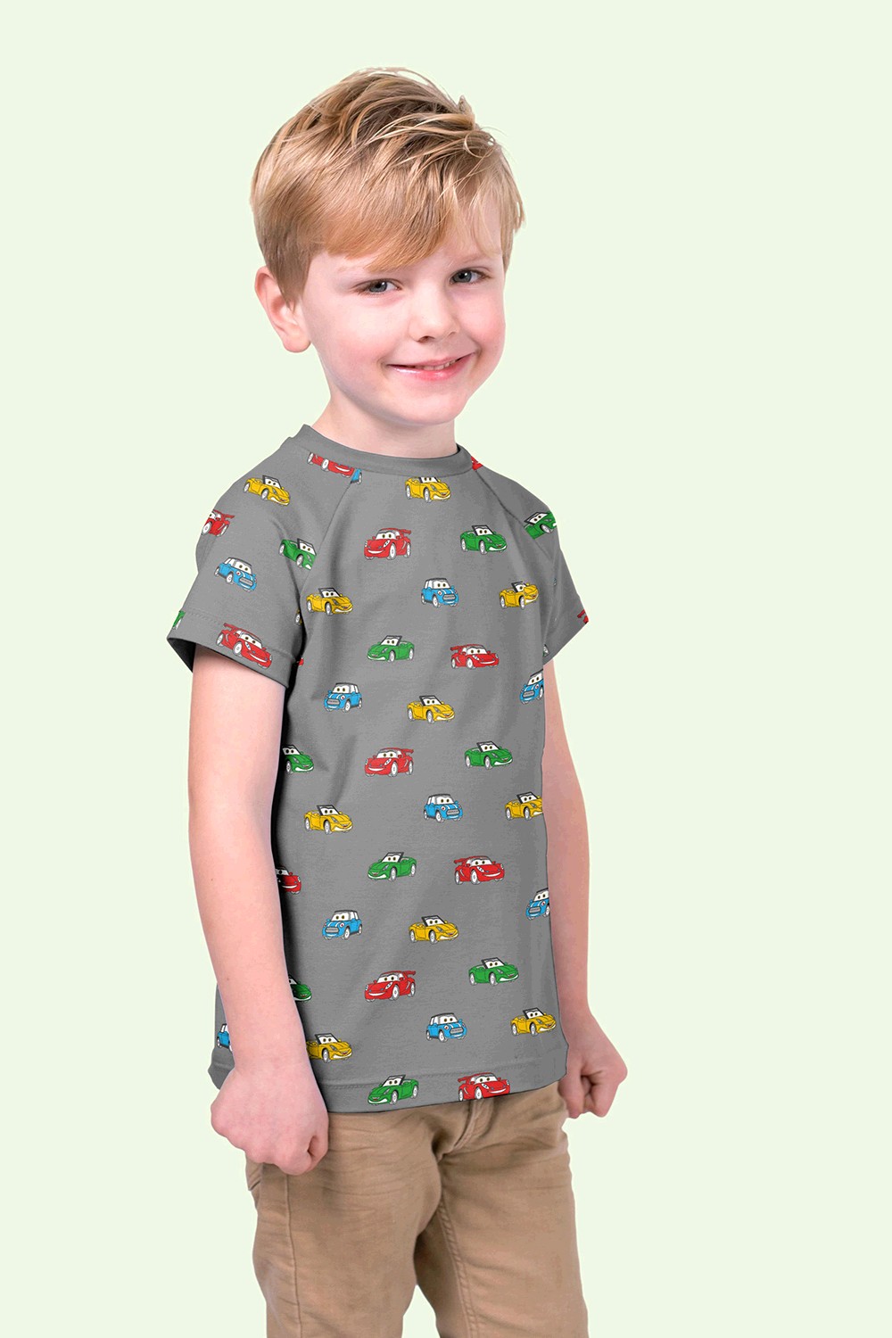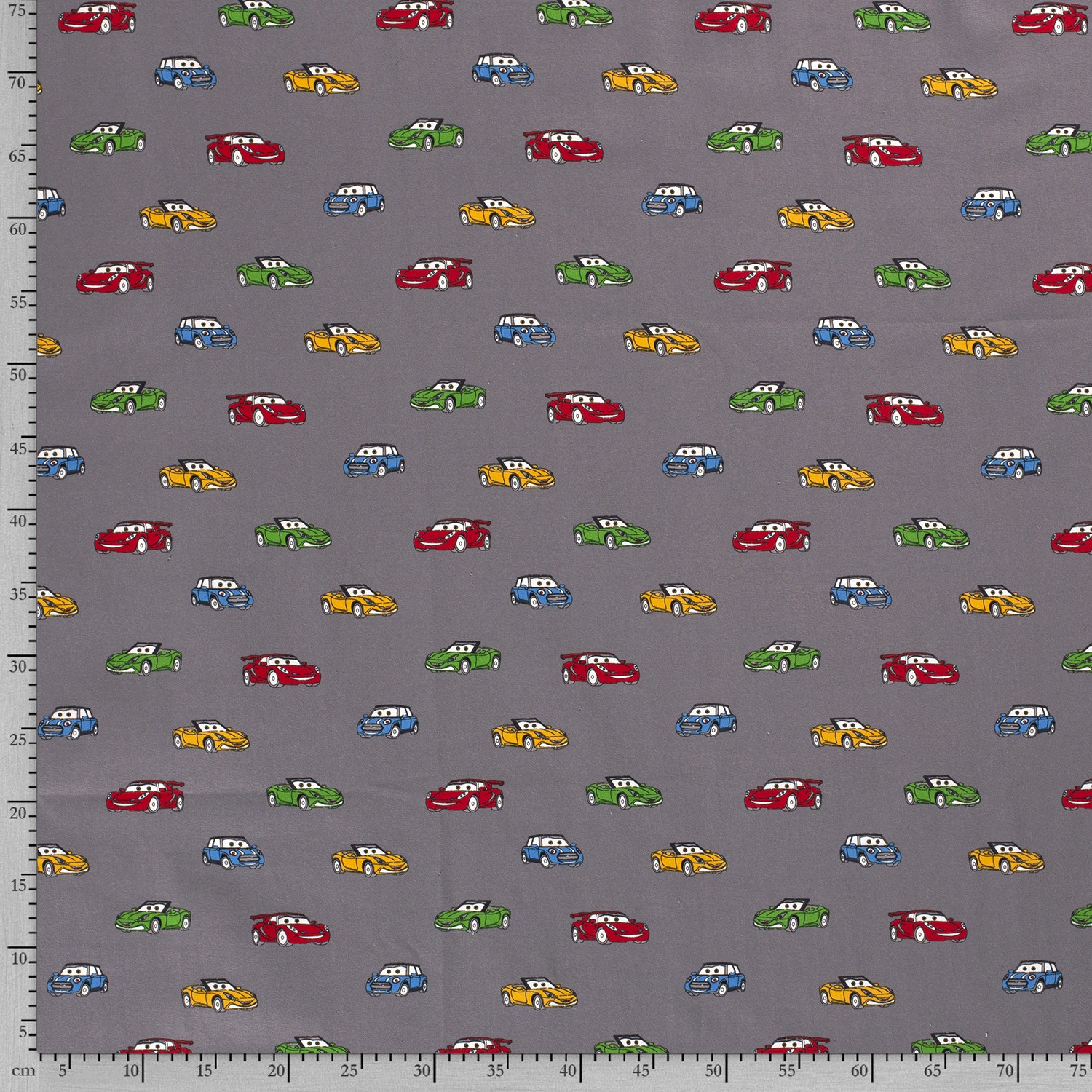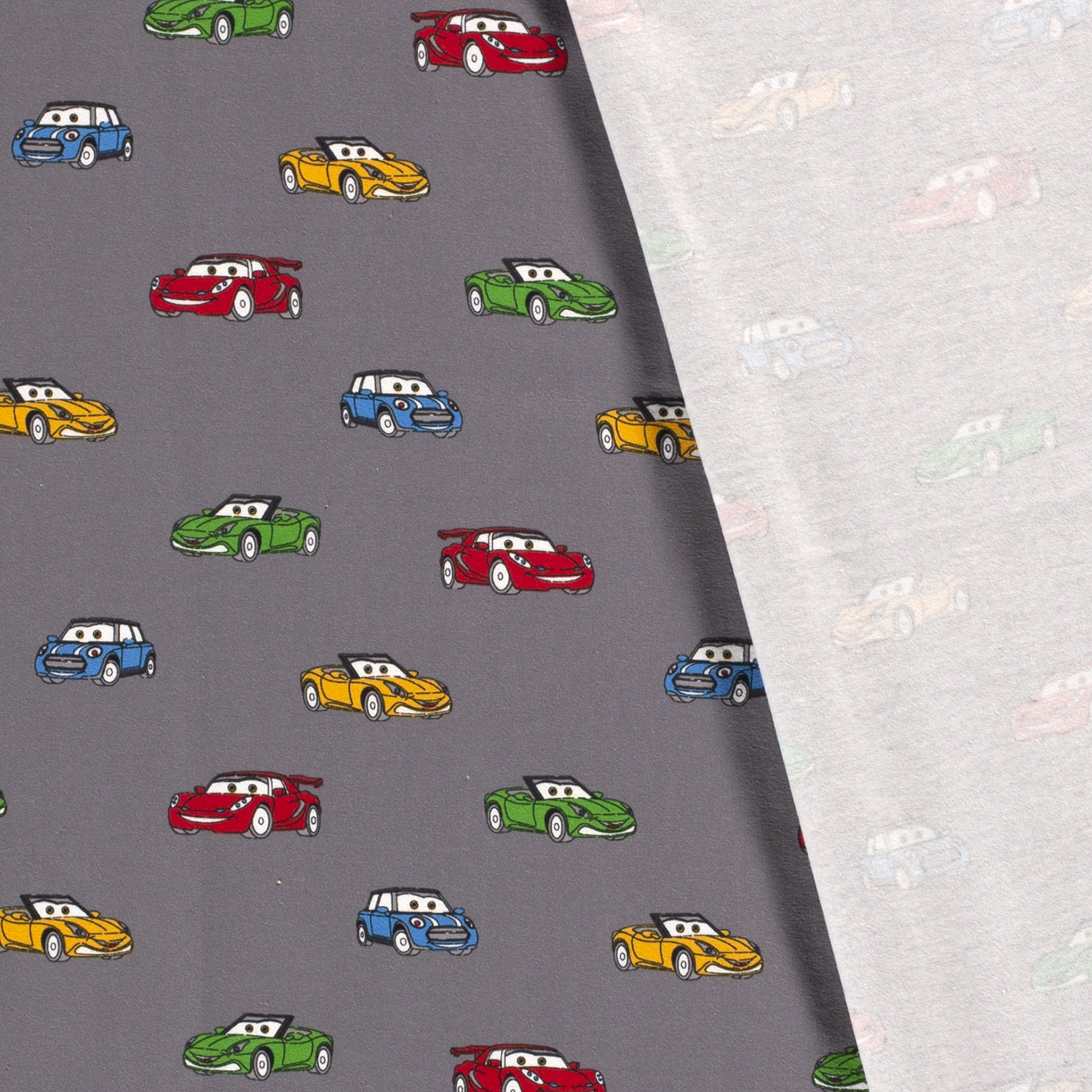Produktinformationen "Baumwolljersey bedruckt Rennautos, grau"