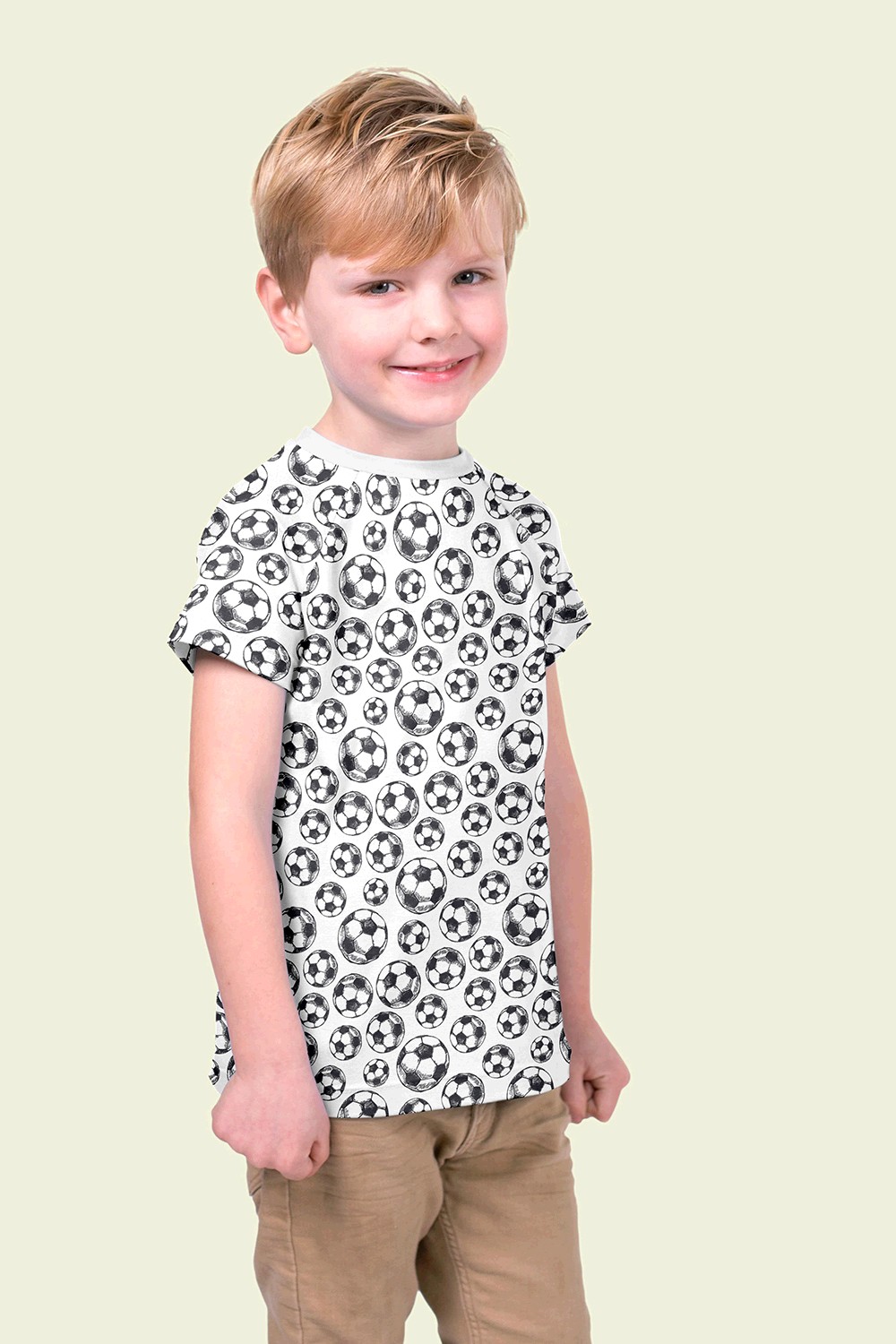 Produktinformationen "Baumwolljersey bedruckt Fußball, weiß"