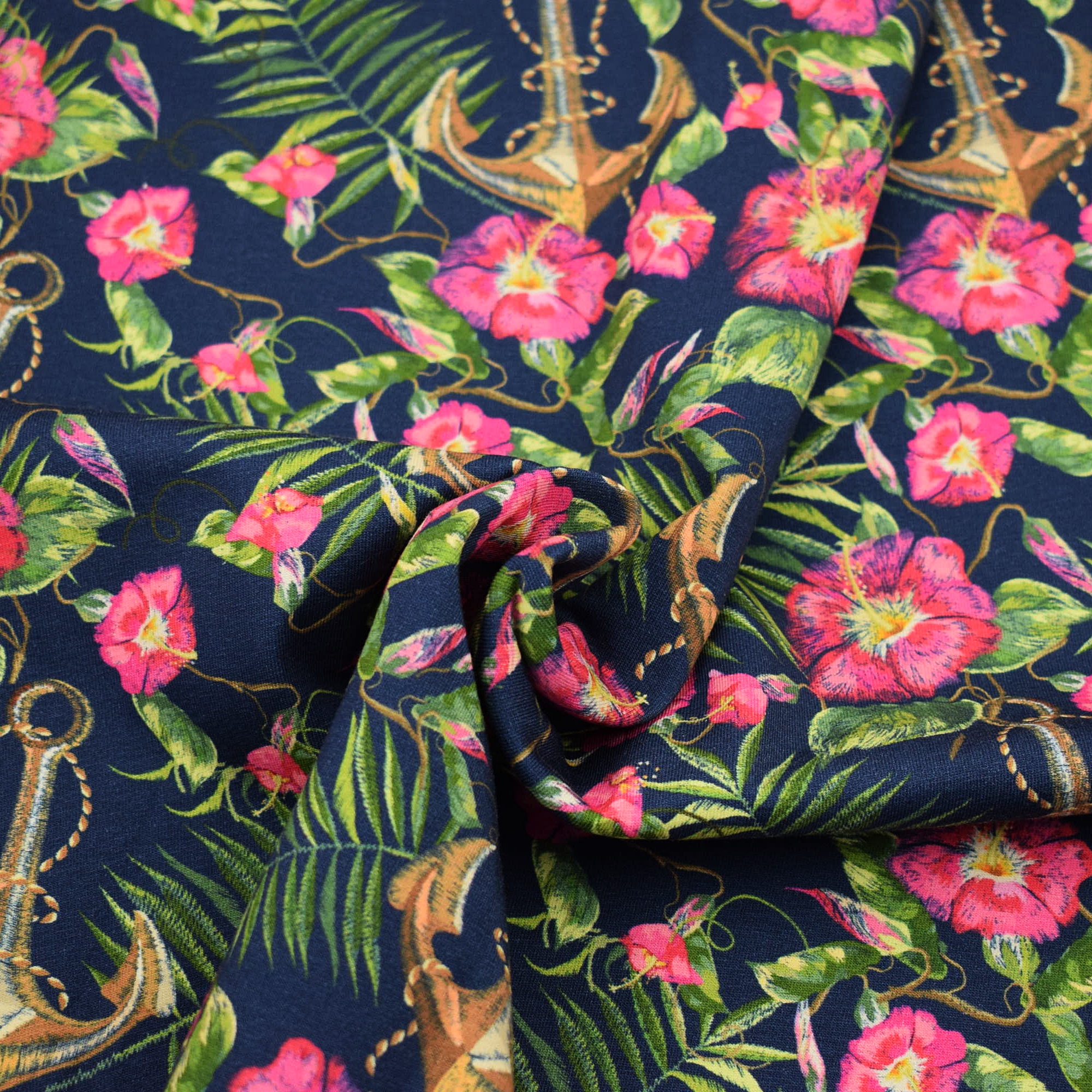 Dieser bedruckte Jerseystoff mit einem schönen Frühlingsmotiv bringt Leben auf den Nähtisch! Aufgrund des hohen Baumwollanteils ist Baumwolljesey mit Digitaldruck wunderbar weich und atmungsaktiv. Hierdurch bietet der Stoff einen hohen Tragekomfort und ein angenehmes Hautgefühl. Der Elasthan Anteil des Baumwoll Stoffs sorgt dafür, dass sich Kleidung aus Jersey eng an den Körper anschmiegt, gleichzeitig allerdings jede Bewegung mitmacht. Daher eignet sich Jersey Stoff hervorragend für Kinder- und Babybekleidung, wie z.B. T-Shirts, Kleider oder Sporthosen. Auch Accessoires wie Mützen aus bedrucktem Baumwolljersey Stoff sind ein echter Hingucker! Baumwolljersey lässt sich leicht verarbeiten und ist somit auch für Nähanfänger hervorragend geeignet. Ebenfalls für einen WOW-Effekt sorgt das schöne, bunte Frühlingsmotiv des Baumwoll Jersey Stoffes.