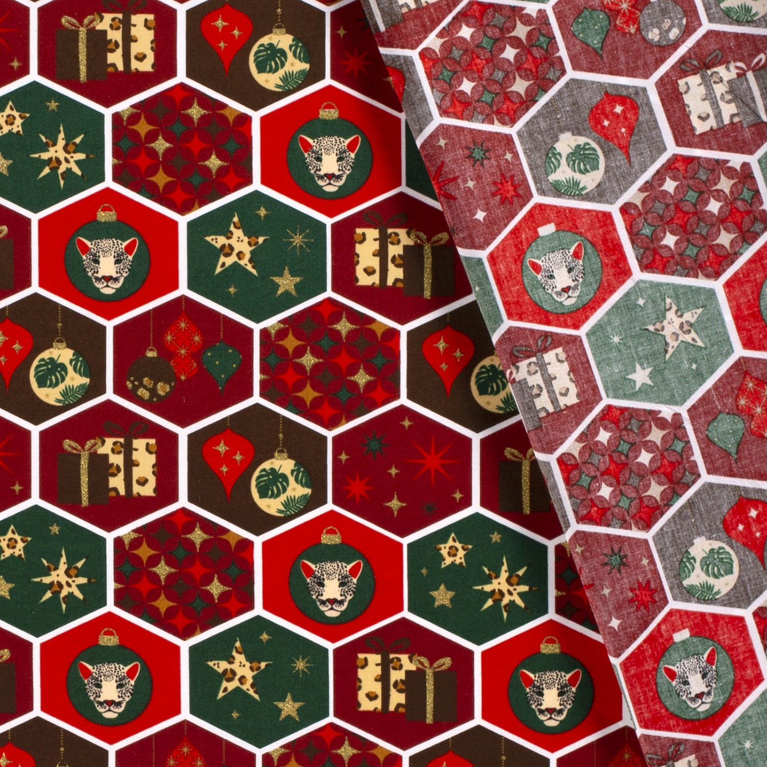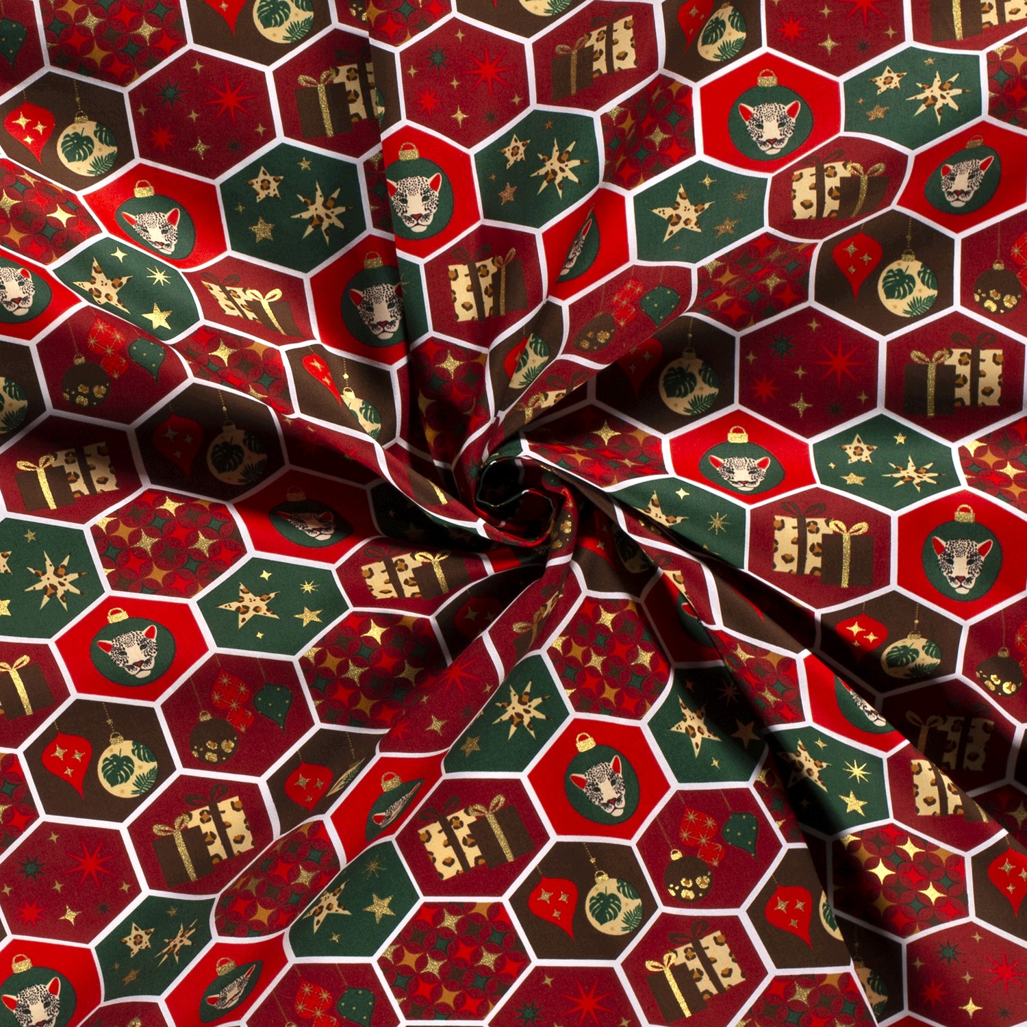 Baumwolle Popeline Stoff Bedruckt Weihnachten, dunkelrot