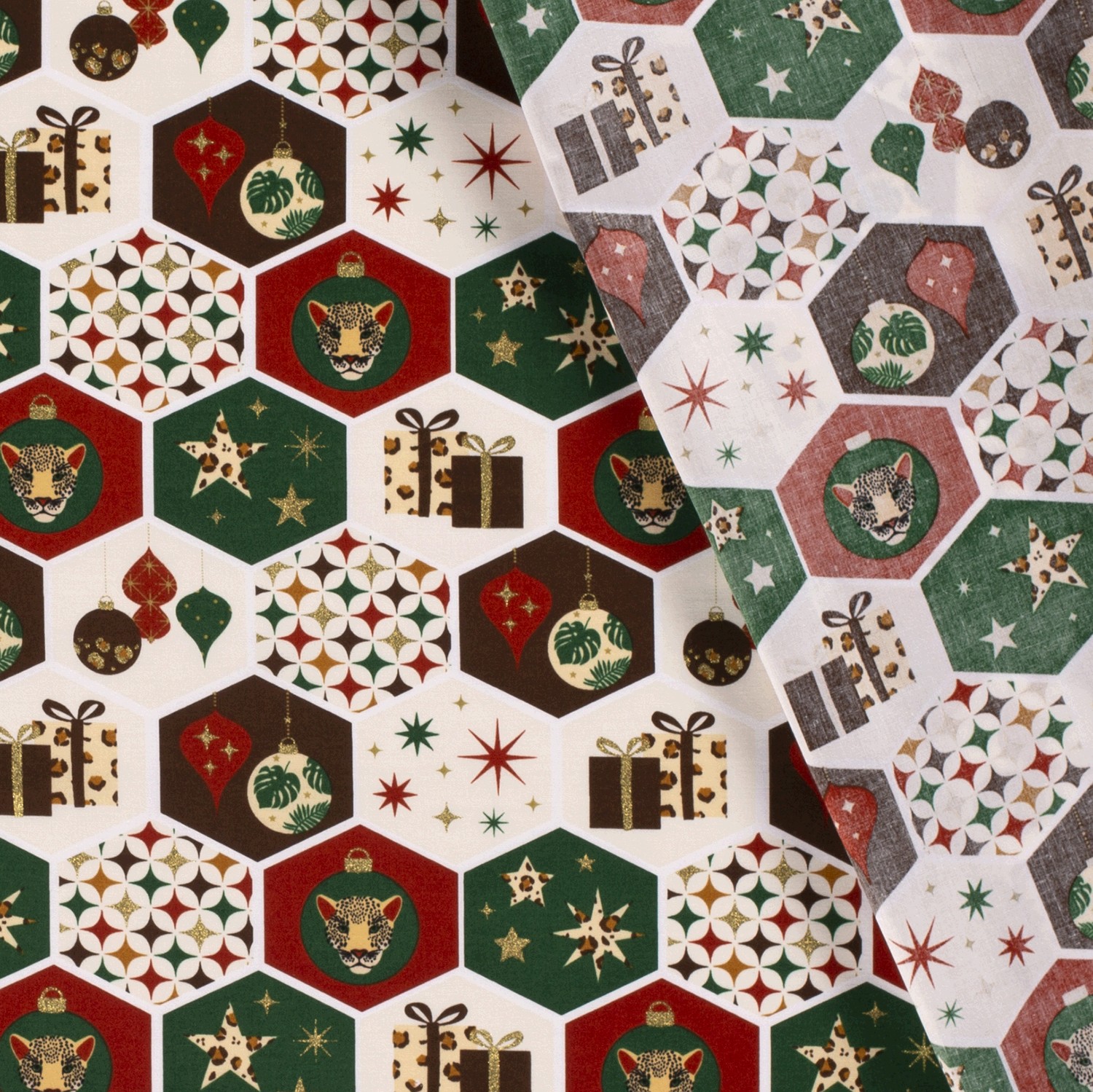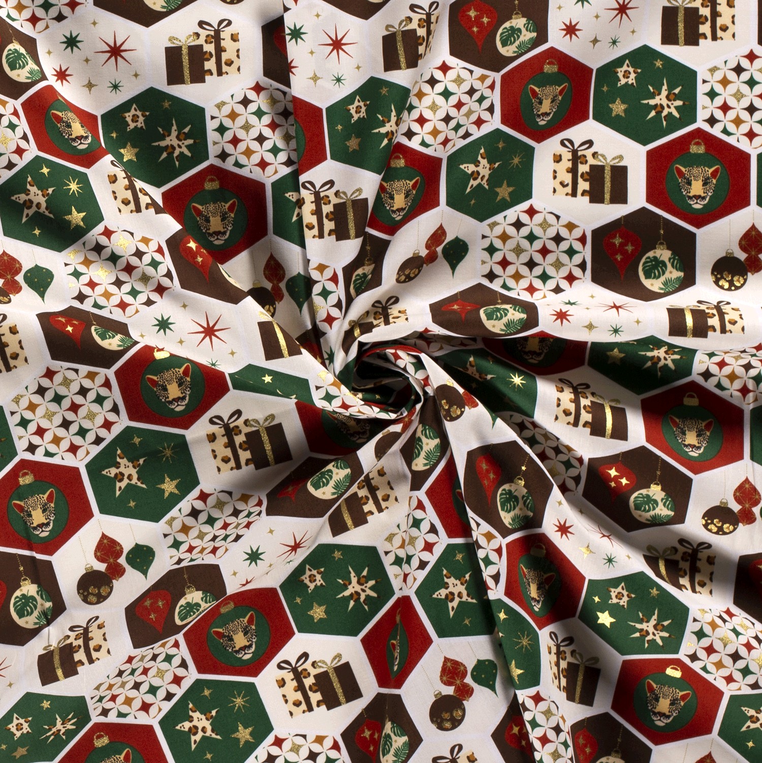 Baumwolle Popeline Stoff Bedruckt Weihnachten, wollweiß