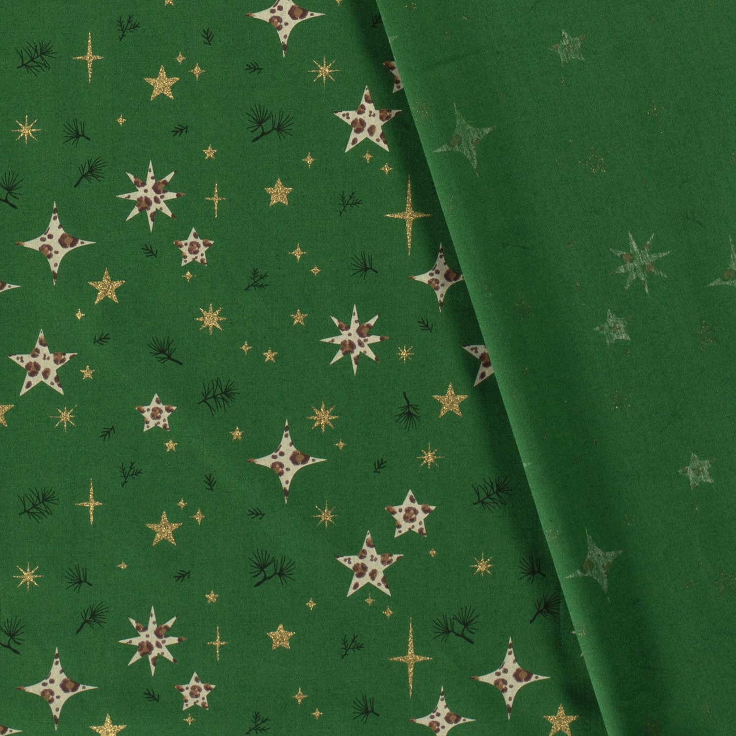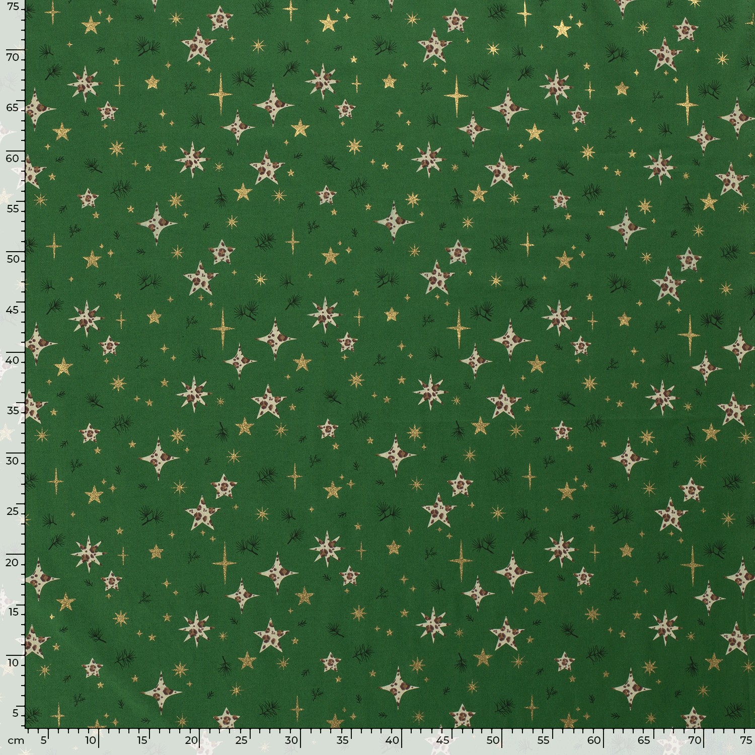 Baumwolle Popeline Stoff Bedruckt Sterne, grün