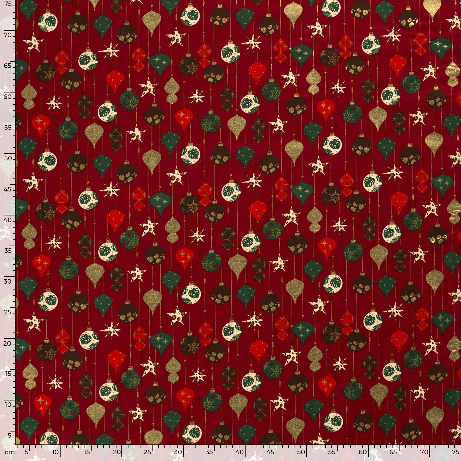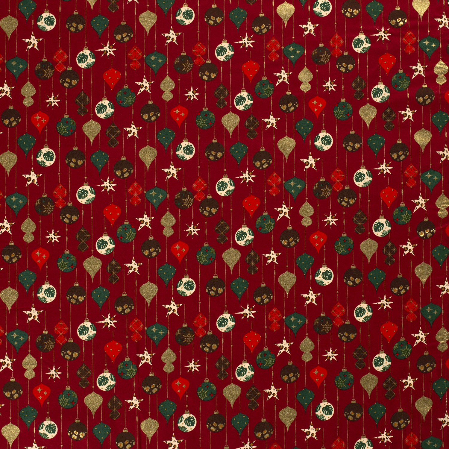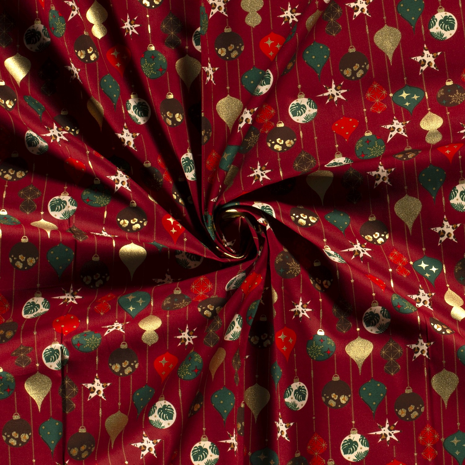 Produktinformationen "Baumwolle Popeline Stoff Bedruckt Weihnachtskugeln, dunkelrot"