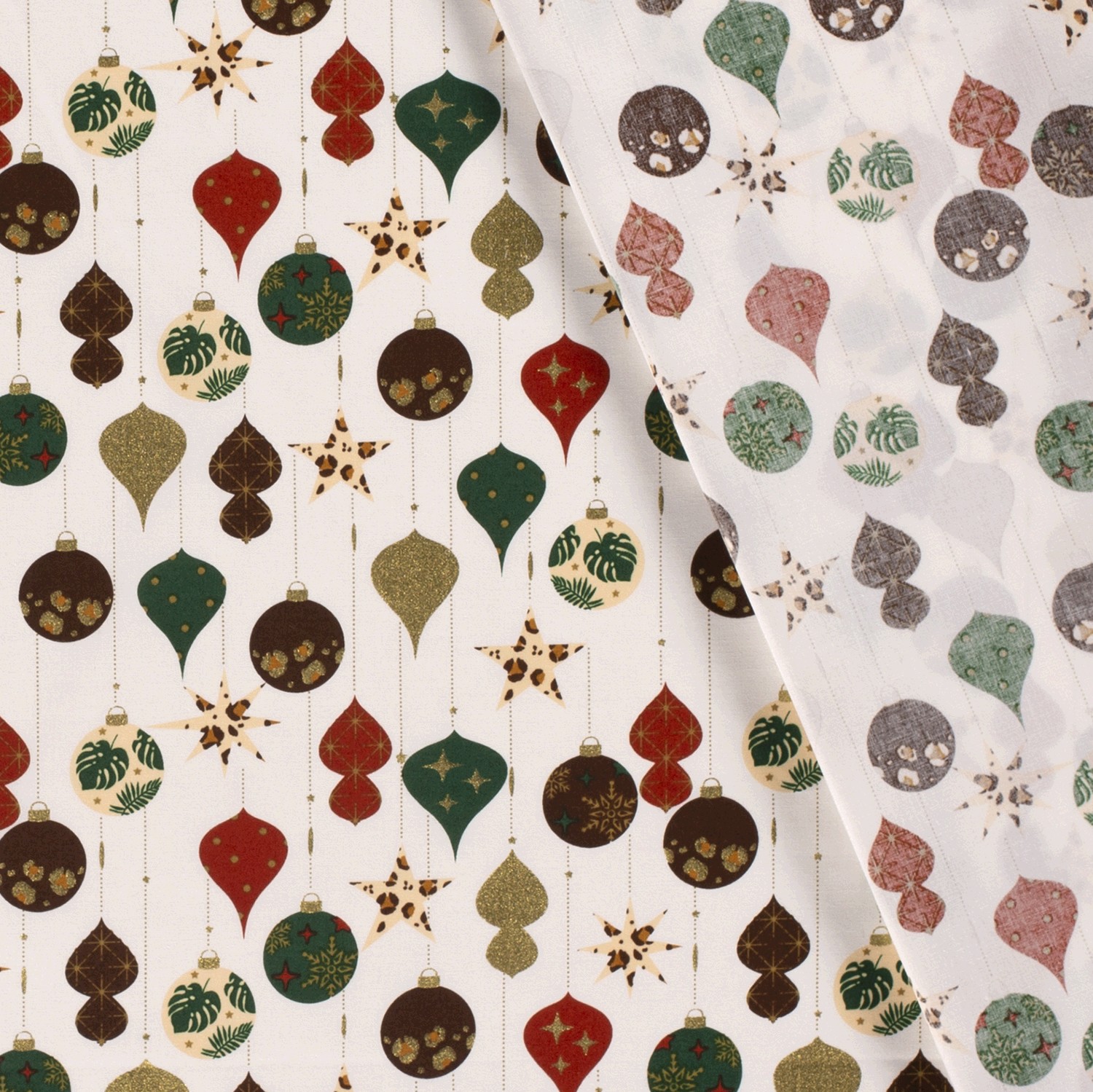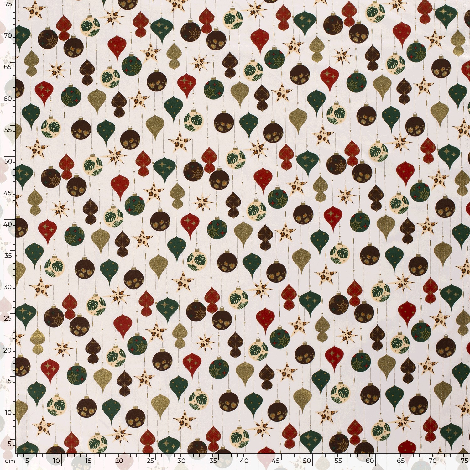 Baumwolle Popeline Stoff Bedruckt Weihnachtskugeln, wollweiß