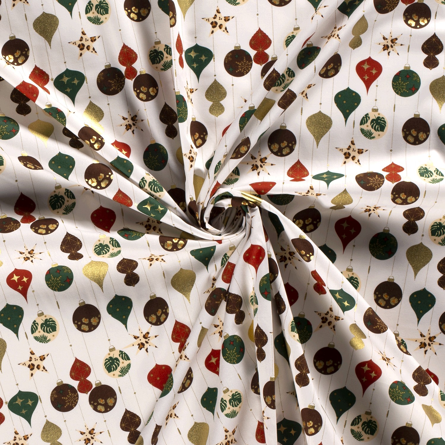 Produktinformationen "Baumwolle Popeline Stoff Bedruckt Weihnachtskugeln, wollweiß"