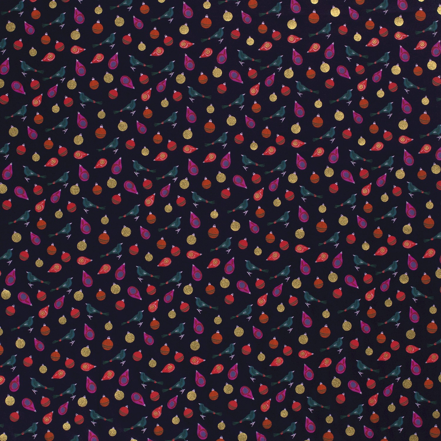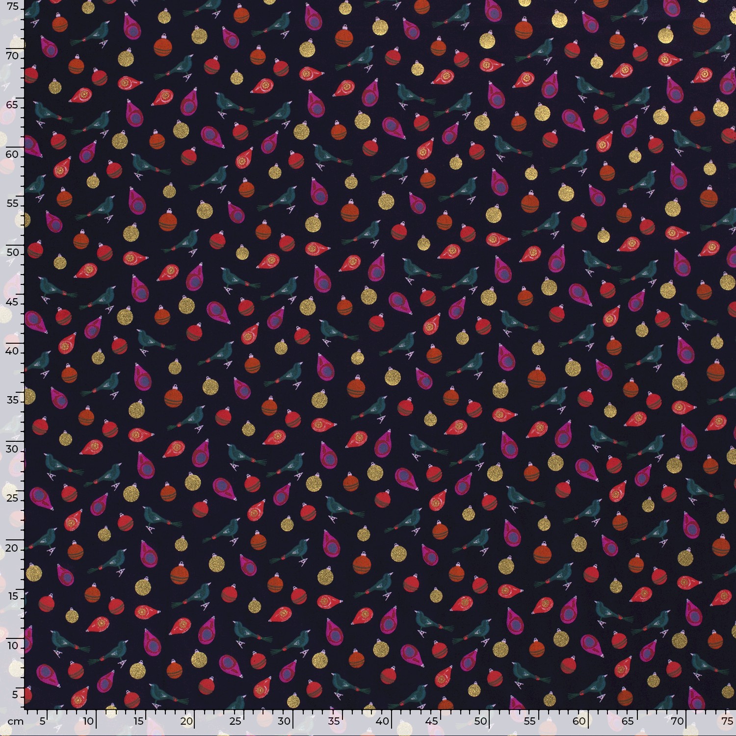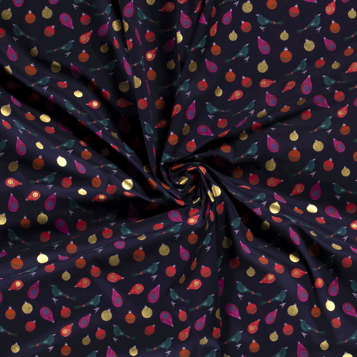 Produktinformationen "Baumwolle Popeline Stoff Bedruckt Weihnachtskugeln, marine"