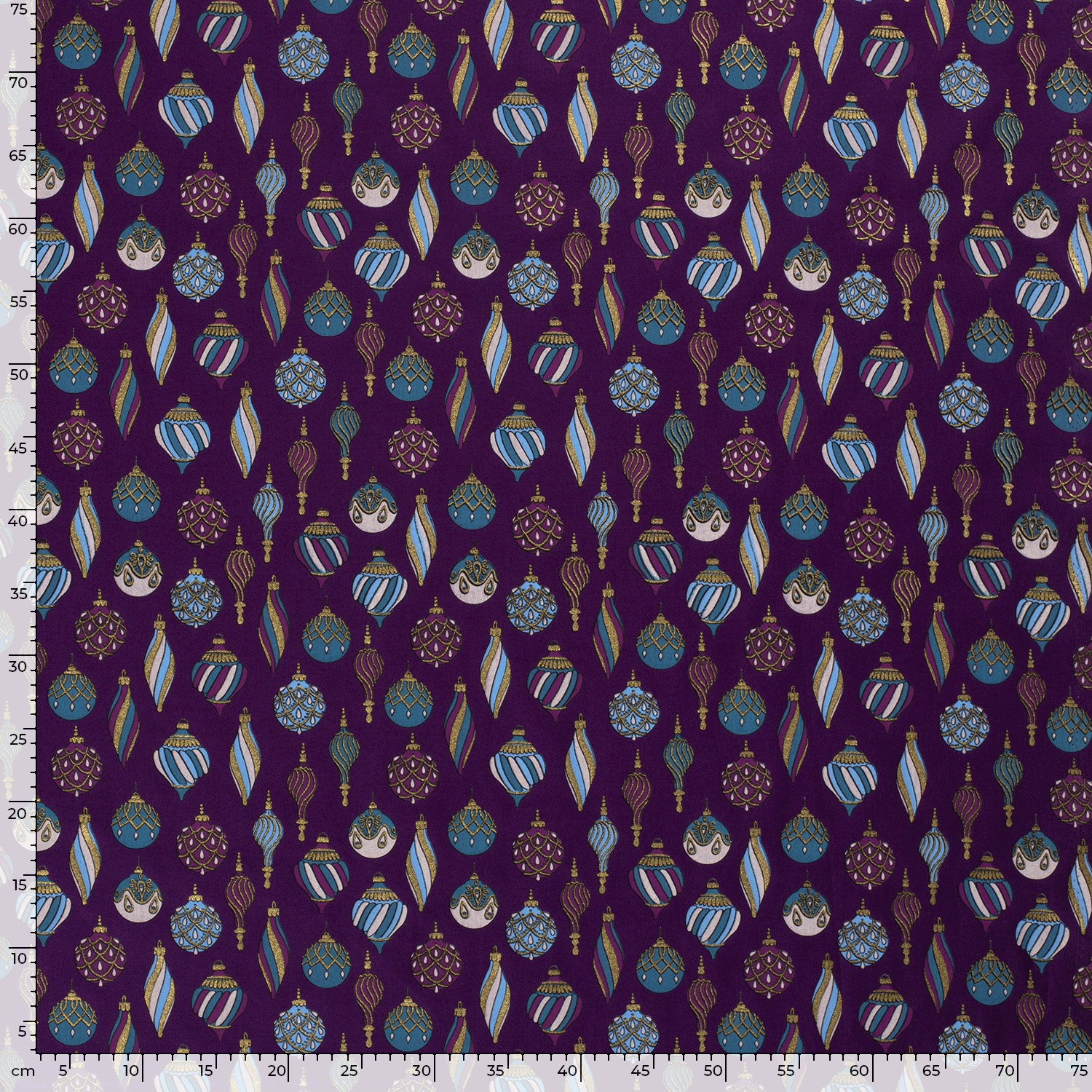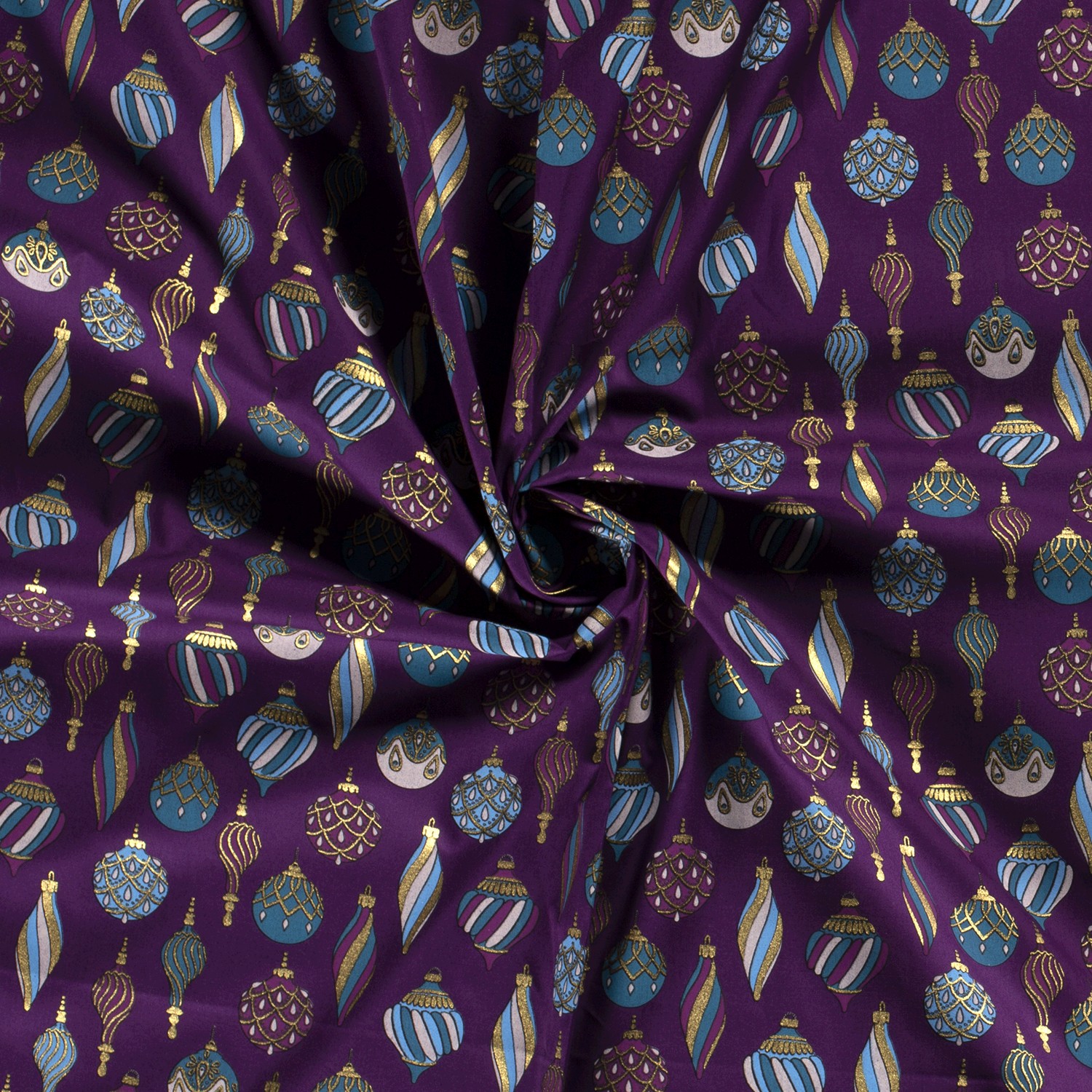 Produktinformationen "Baumwolle Popeline Stoff Bedruckt Weihnachtskugeln, bordeauxrot"