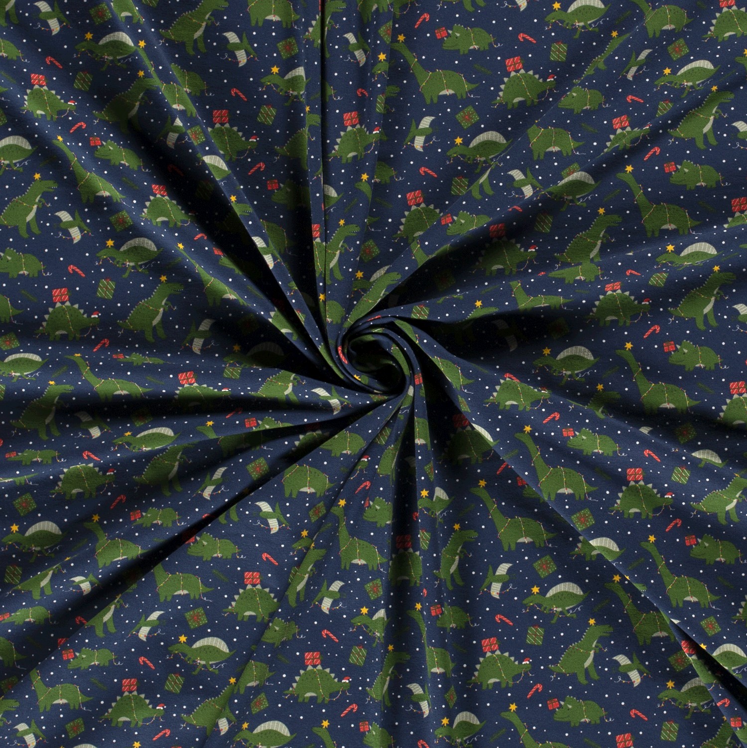 Produktinformationen "Baumwolle Popeline Stoff Bedruckt Weihnachten Dinosaurier, marine"