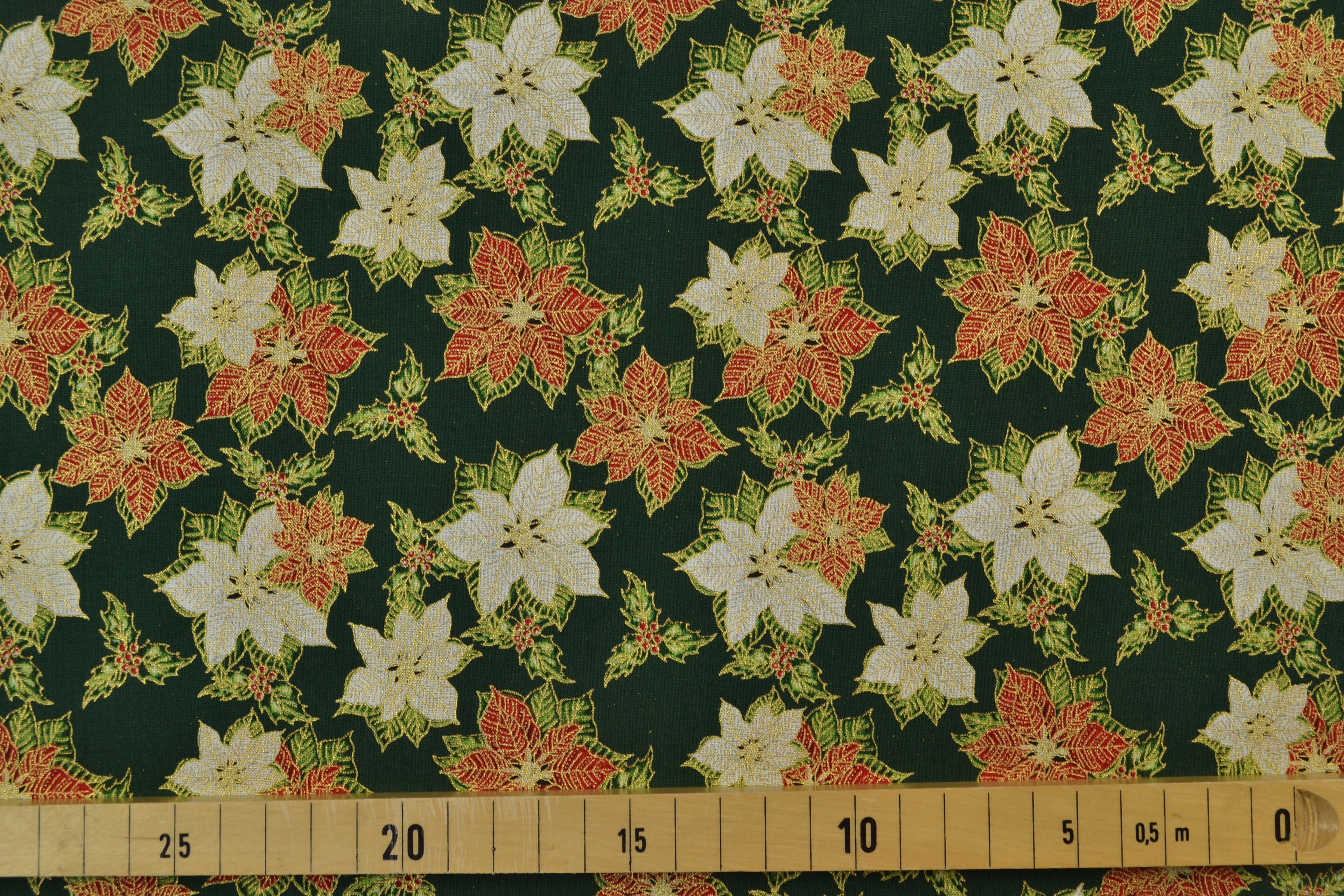 Produktinformationen "Baumwollstoff Weihnachten, Blütenzauber grün/weiß"