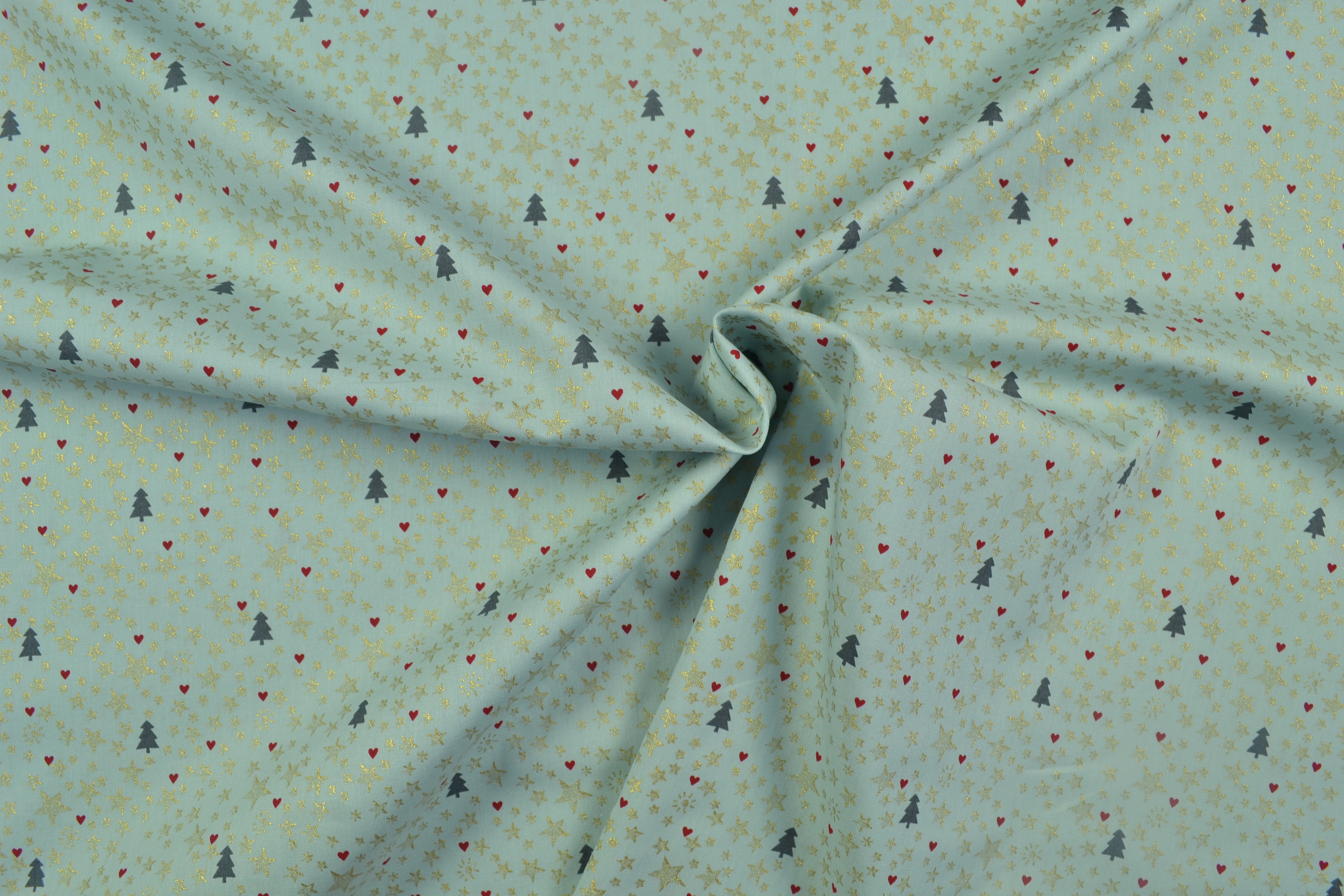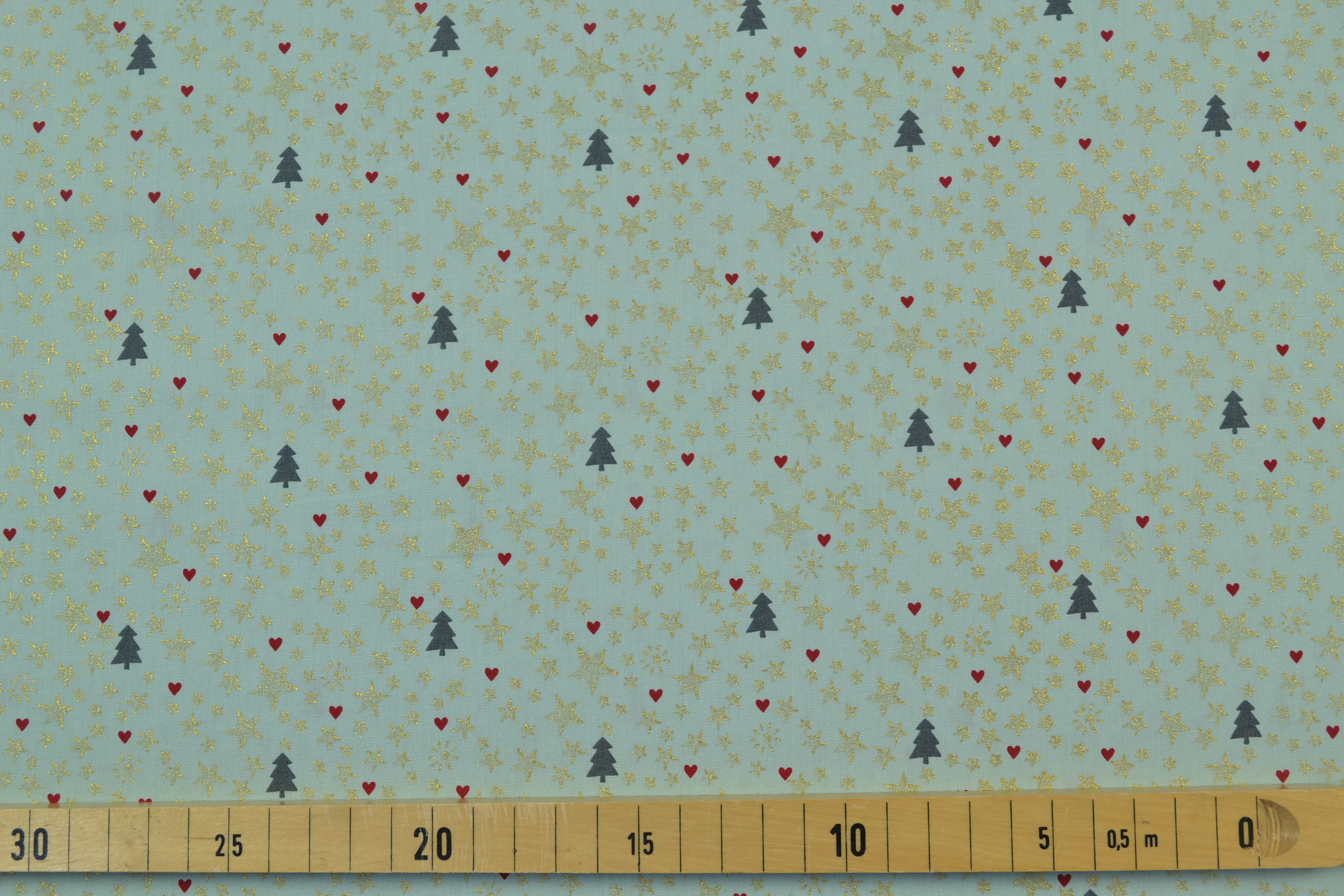 Produktinformationen "Baumwollstoff Weihnachten, kleine Motive babyblau/gold"