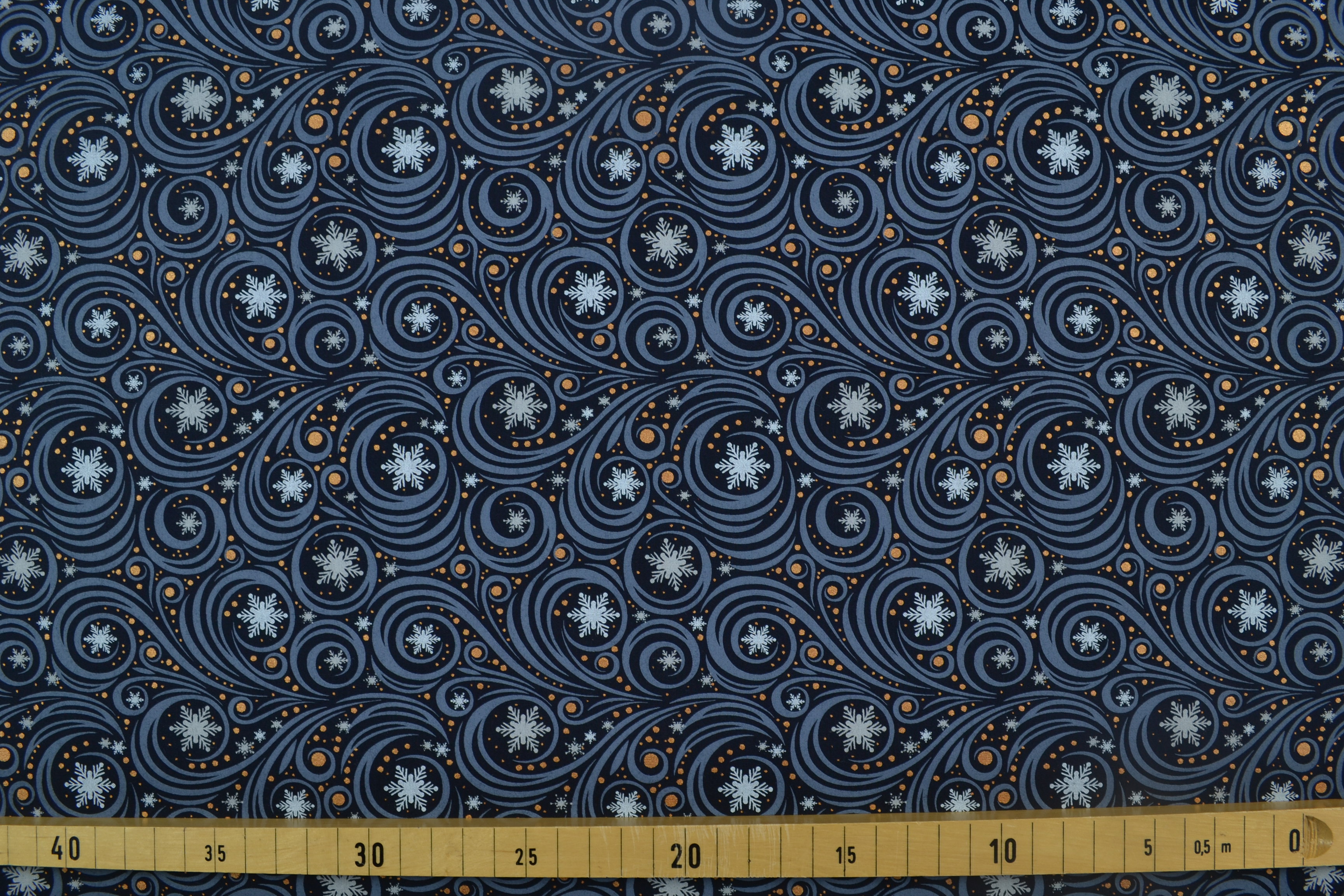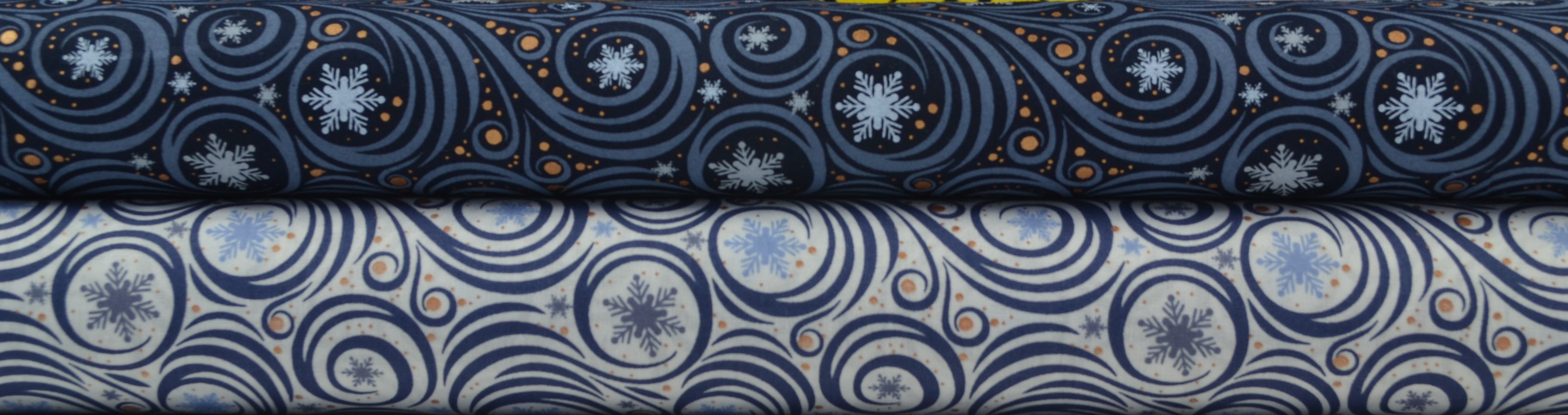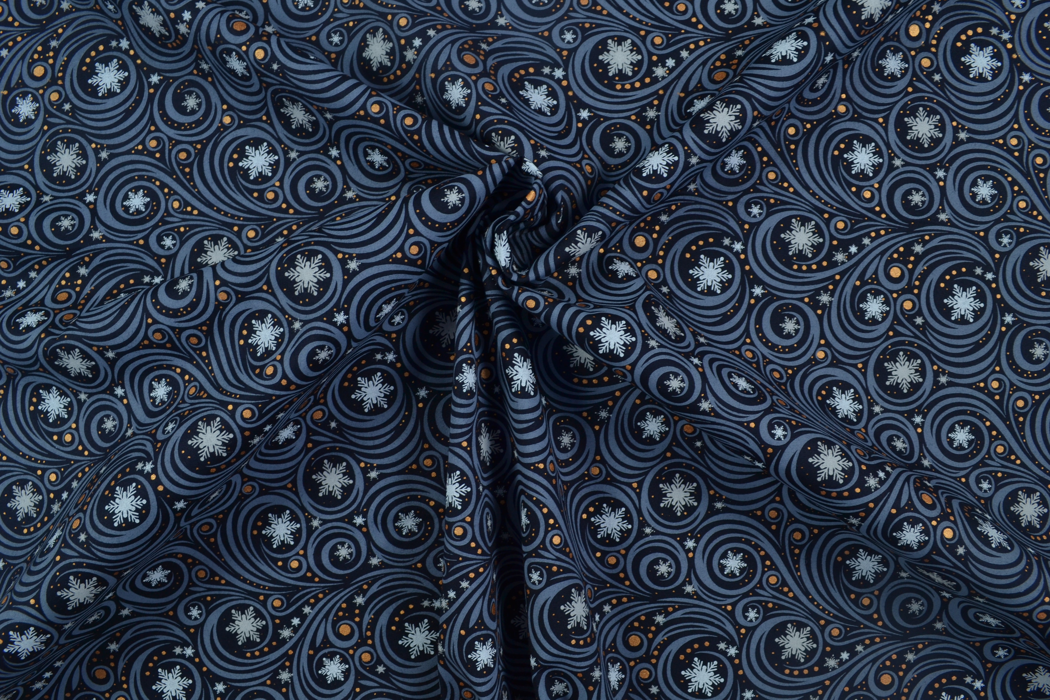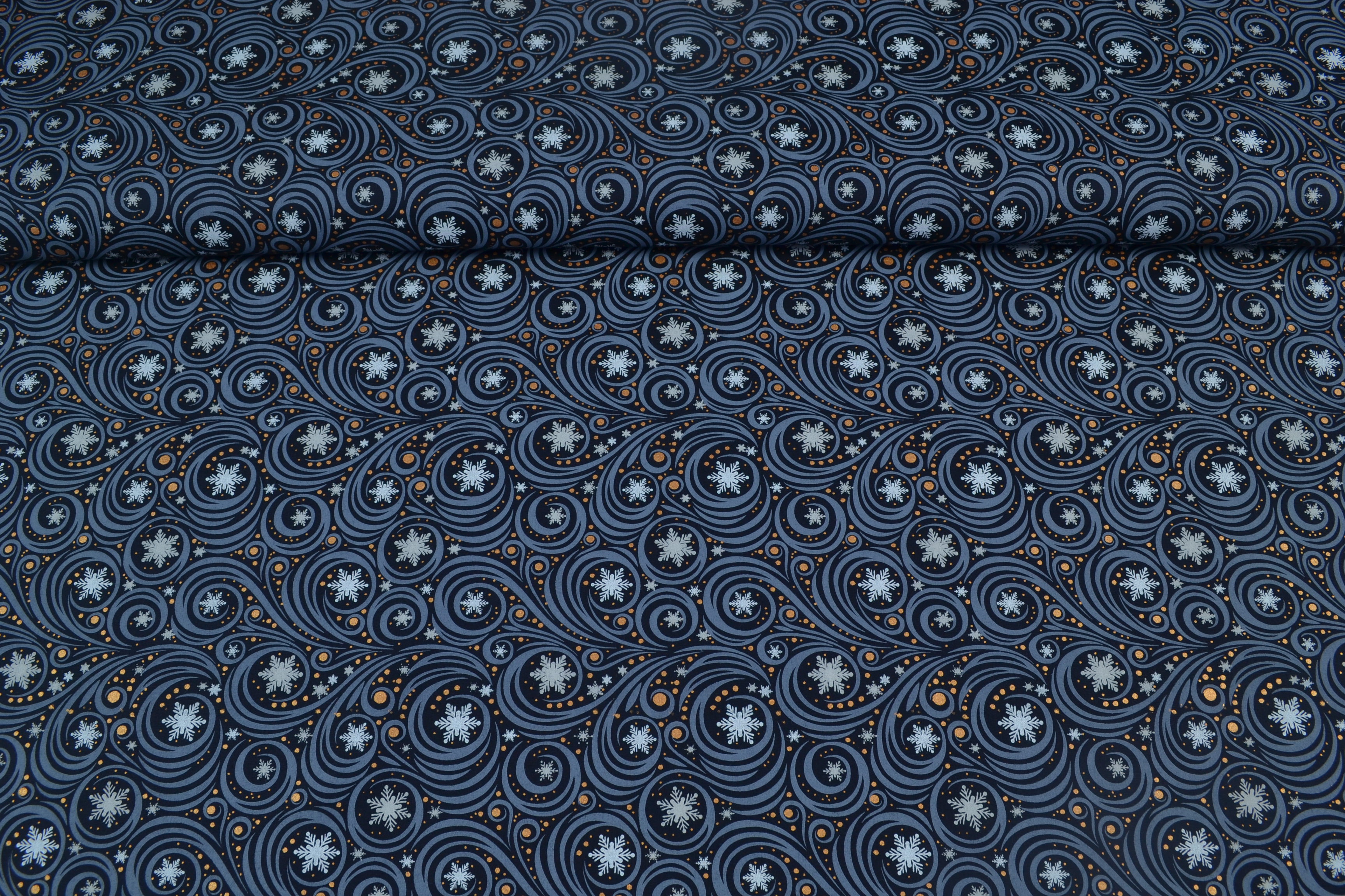 Baumwollstoff Weihnachten, Schneeflöckchen dunkelblau