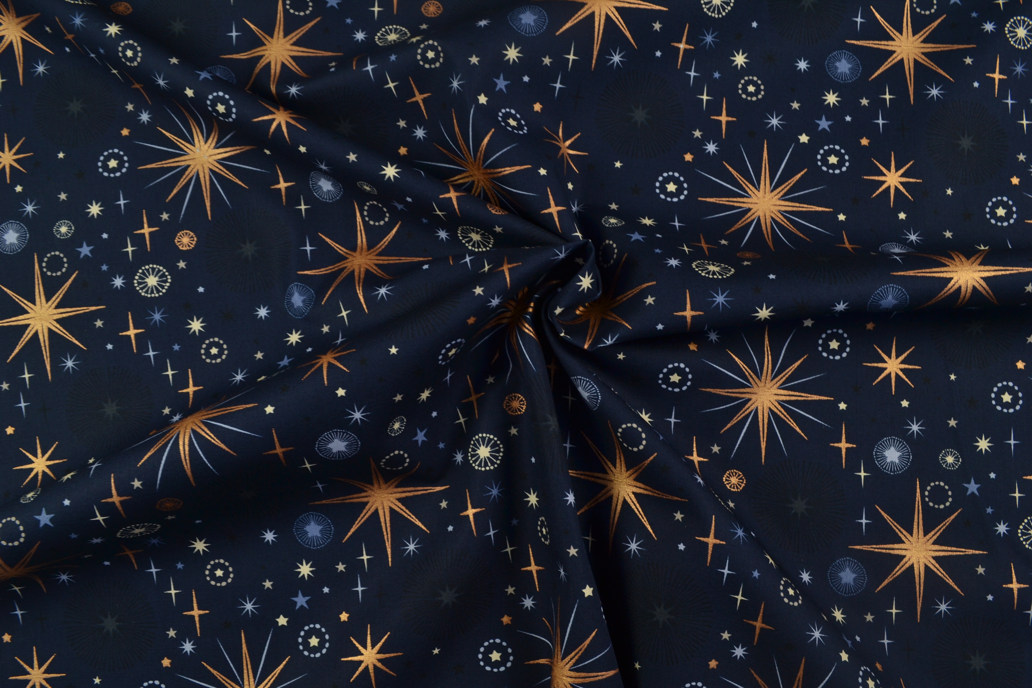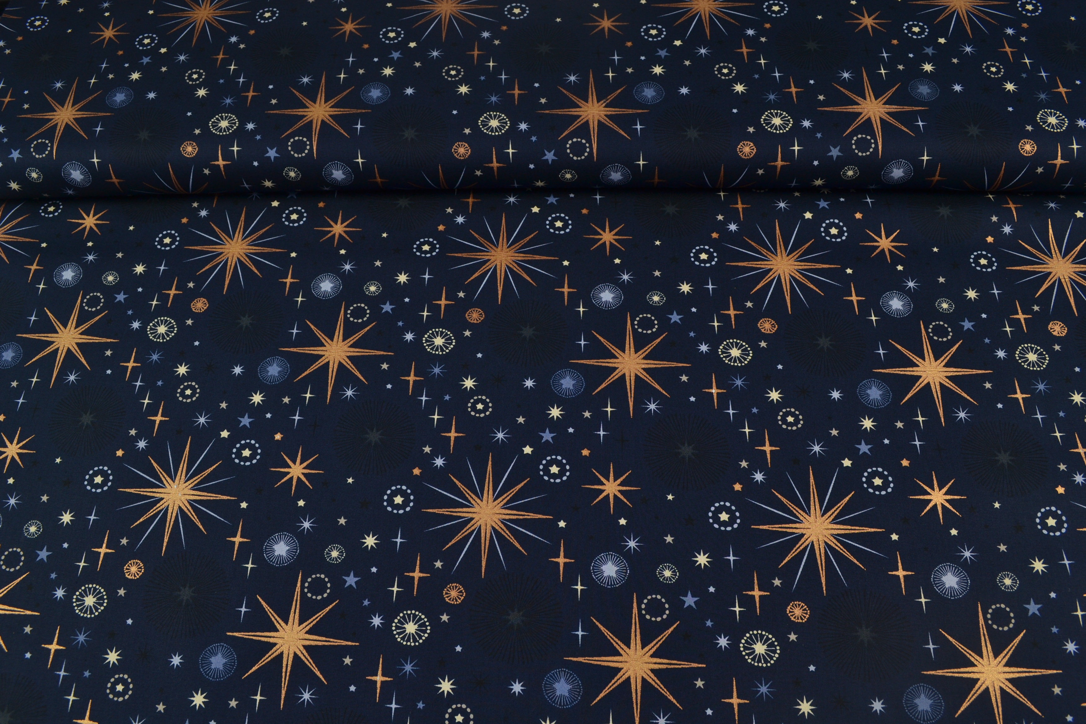 Baumwollstoff Weihnachten, Sternschnuppen dunkelblau