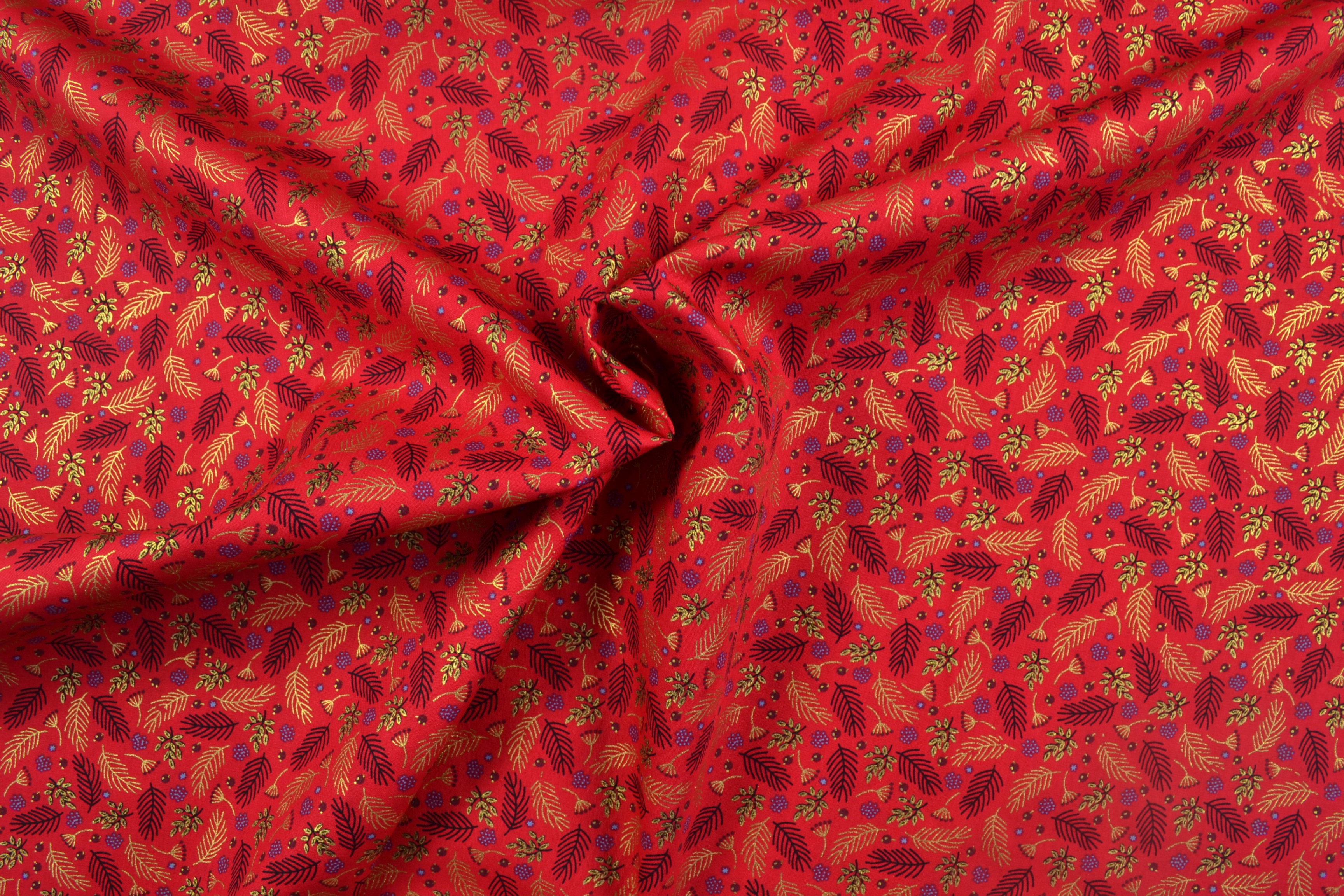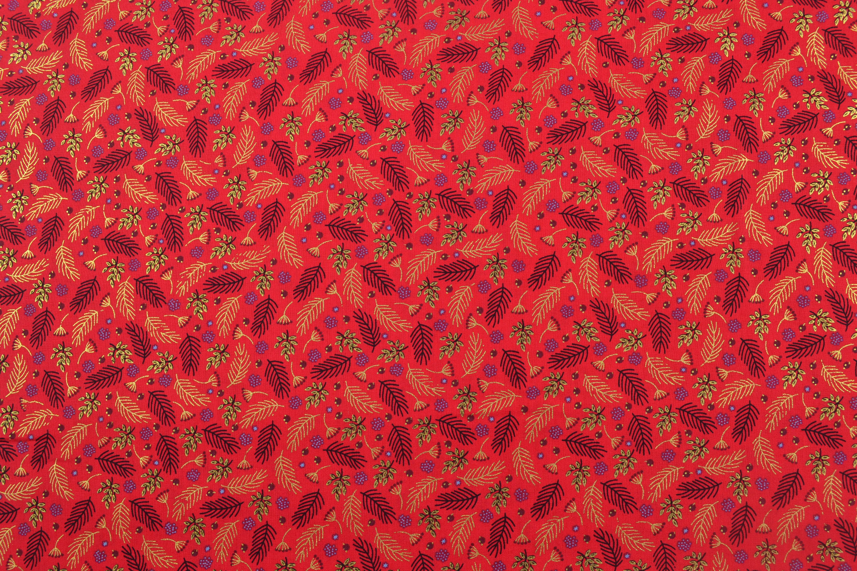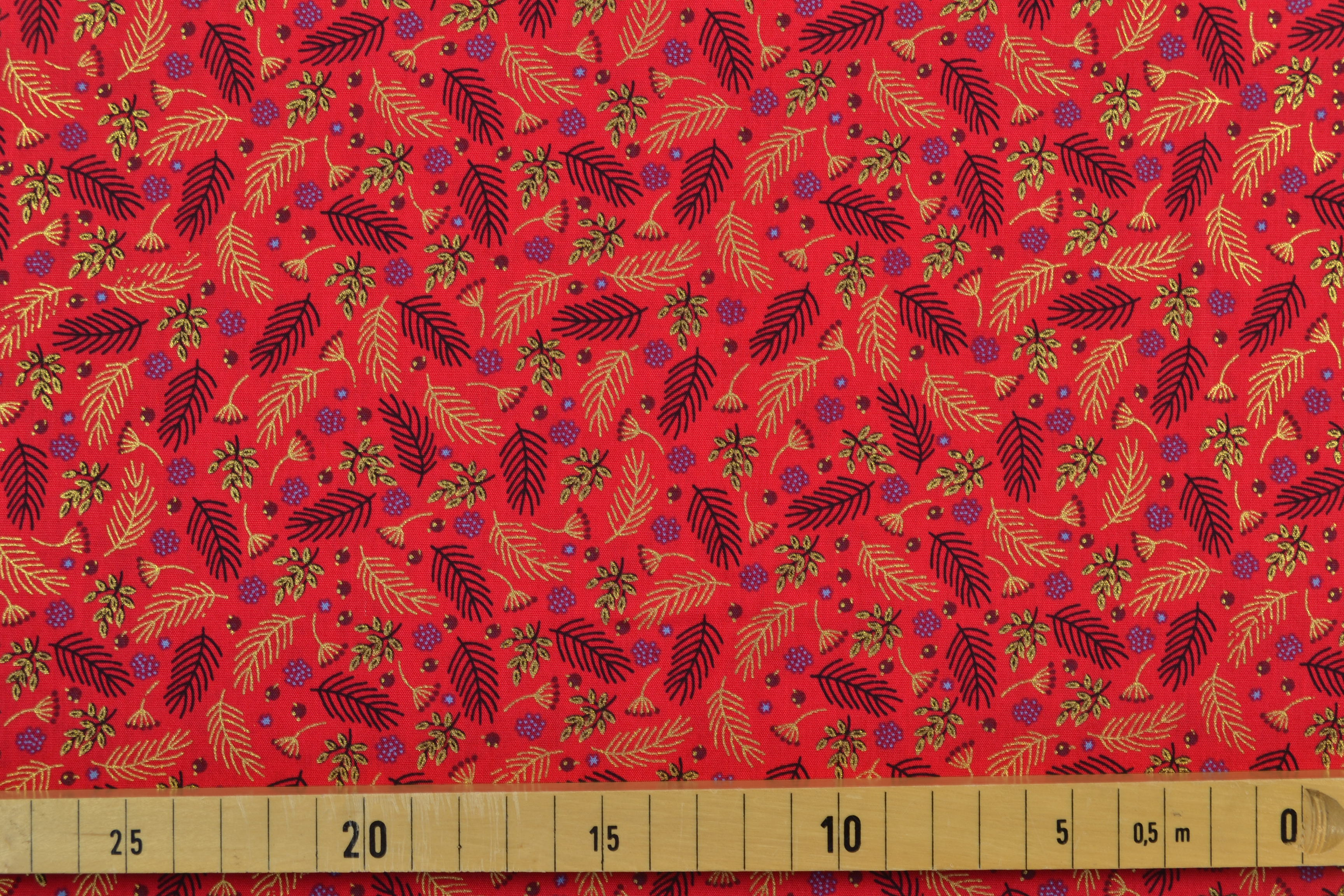 Baumwollstoff Weihnachten, Tannenzweige rot