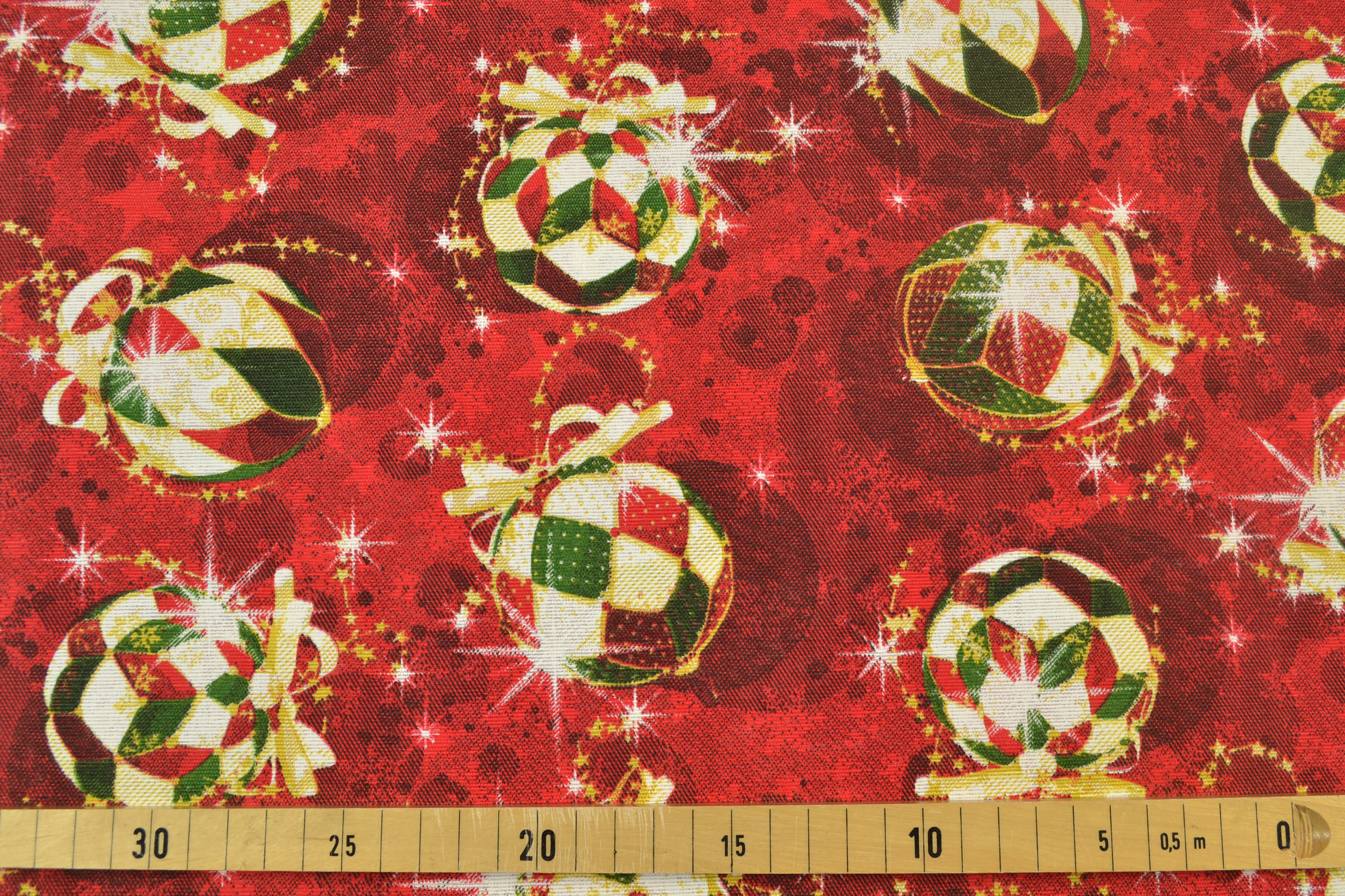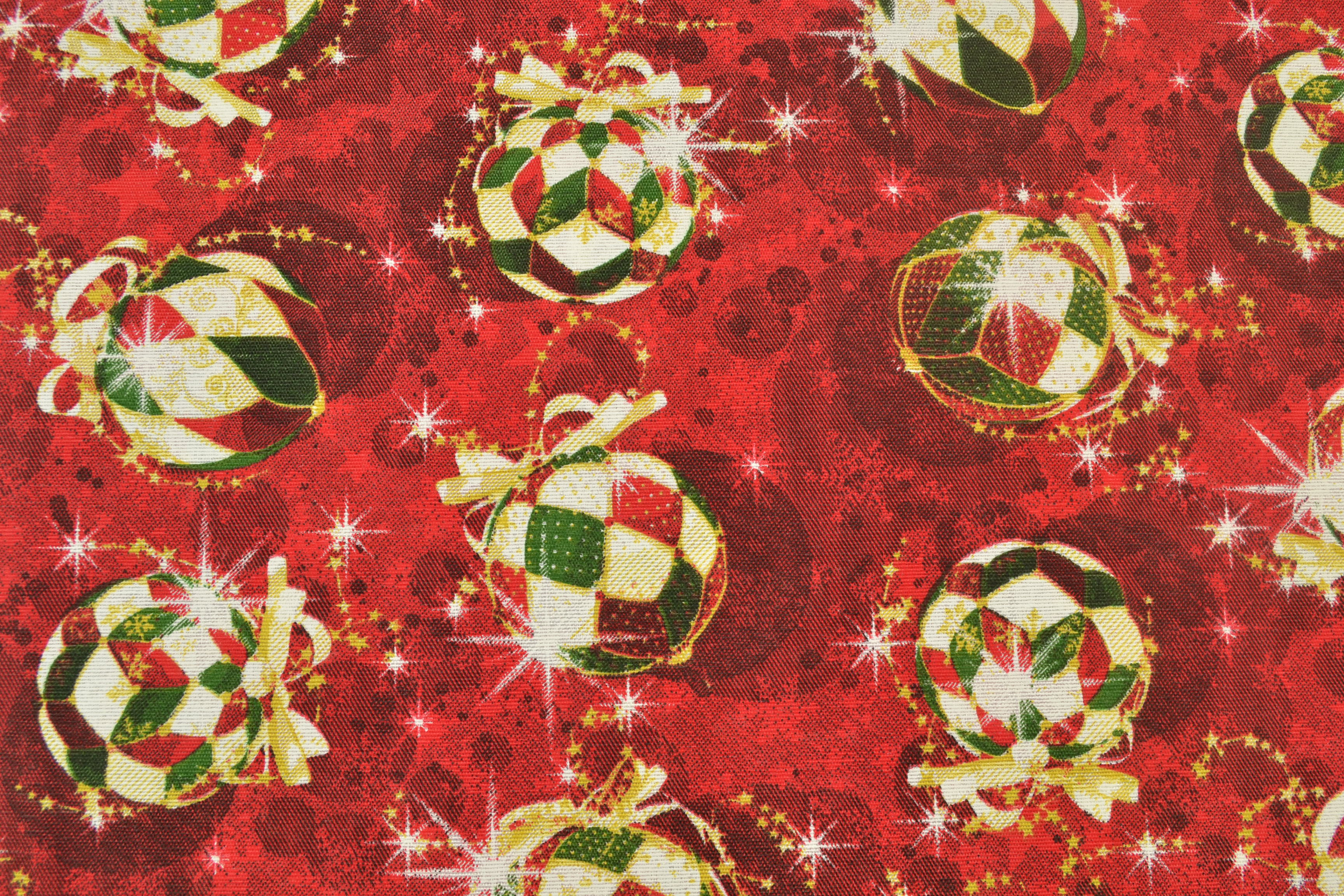 Produktinformationen "Canvas Deko Stoff karierte Weihnachtskugeln rot"
