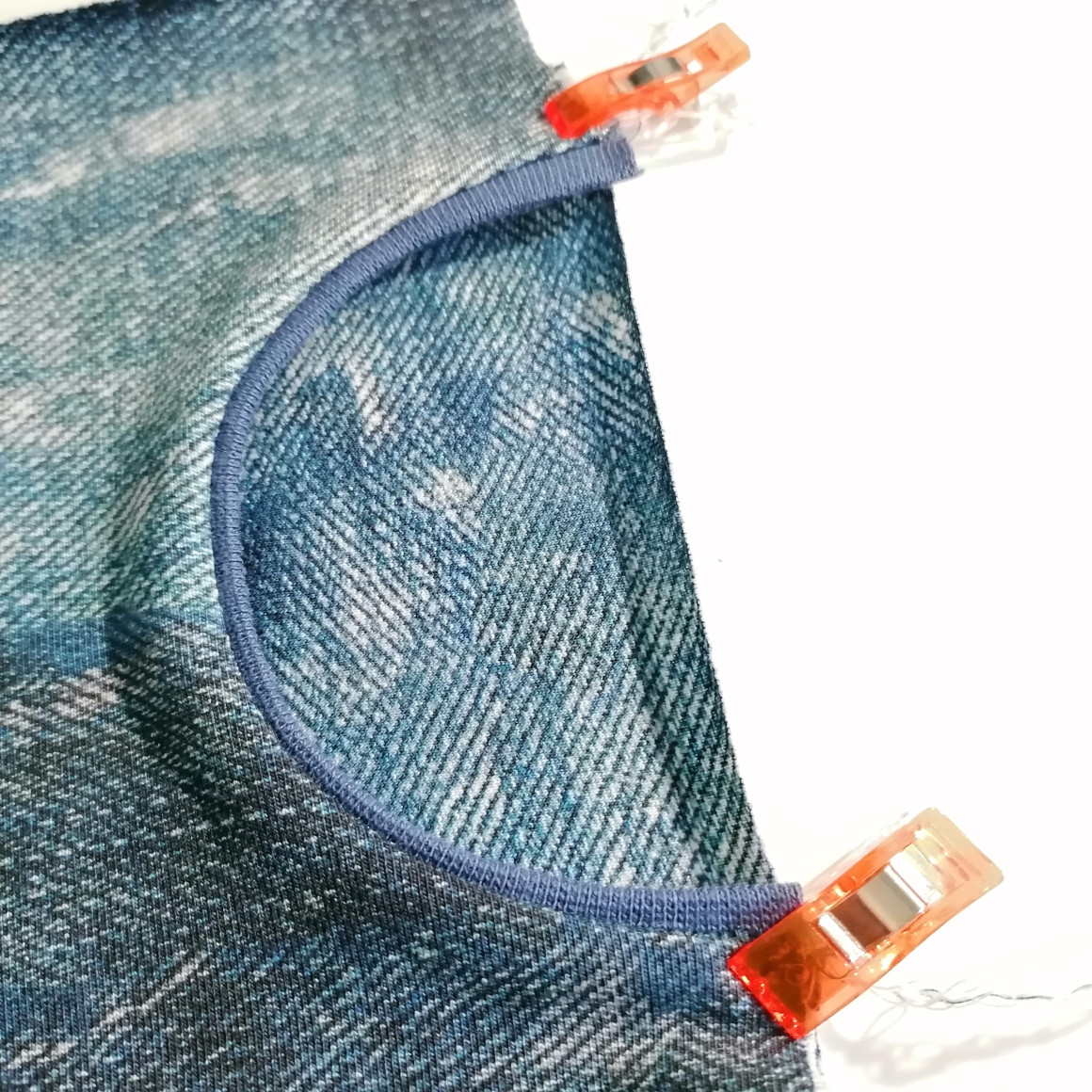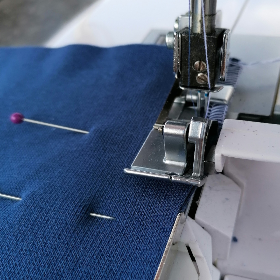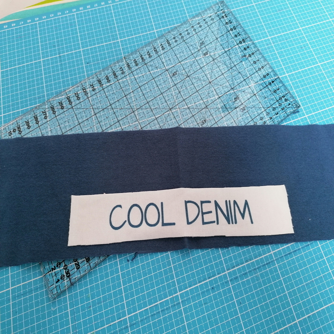 In meinem Fall soll das Bündchen 5 cm hoch sein, also schneide ich 10cm plus Nahtzugabe zu.