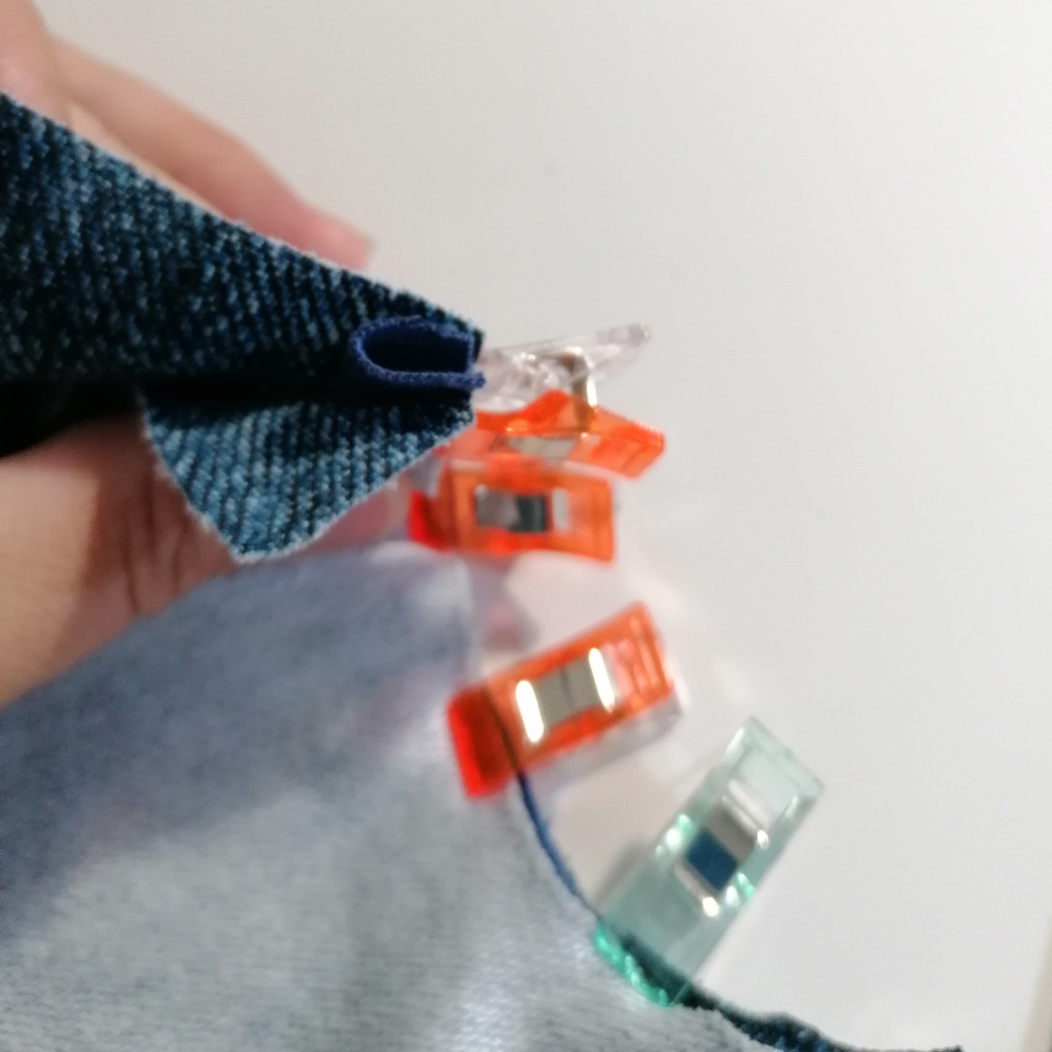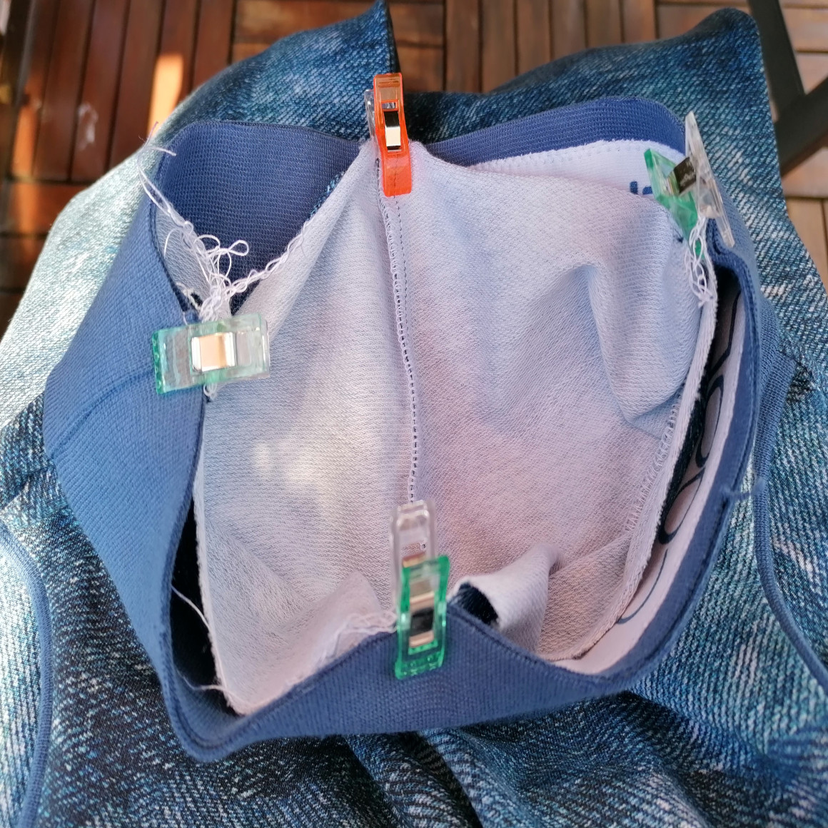 Teilt das Bündchen nun in 4 gleiche Teile ab und markiert euch die Stellen mit Klammern oder Nadeln.