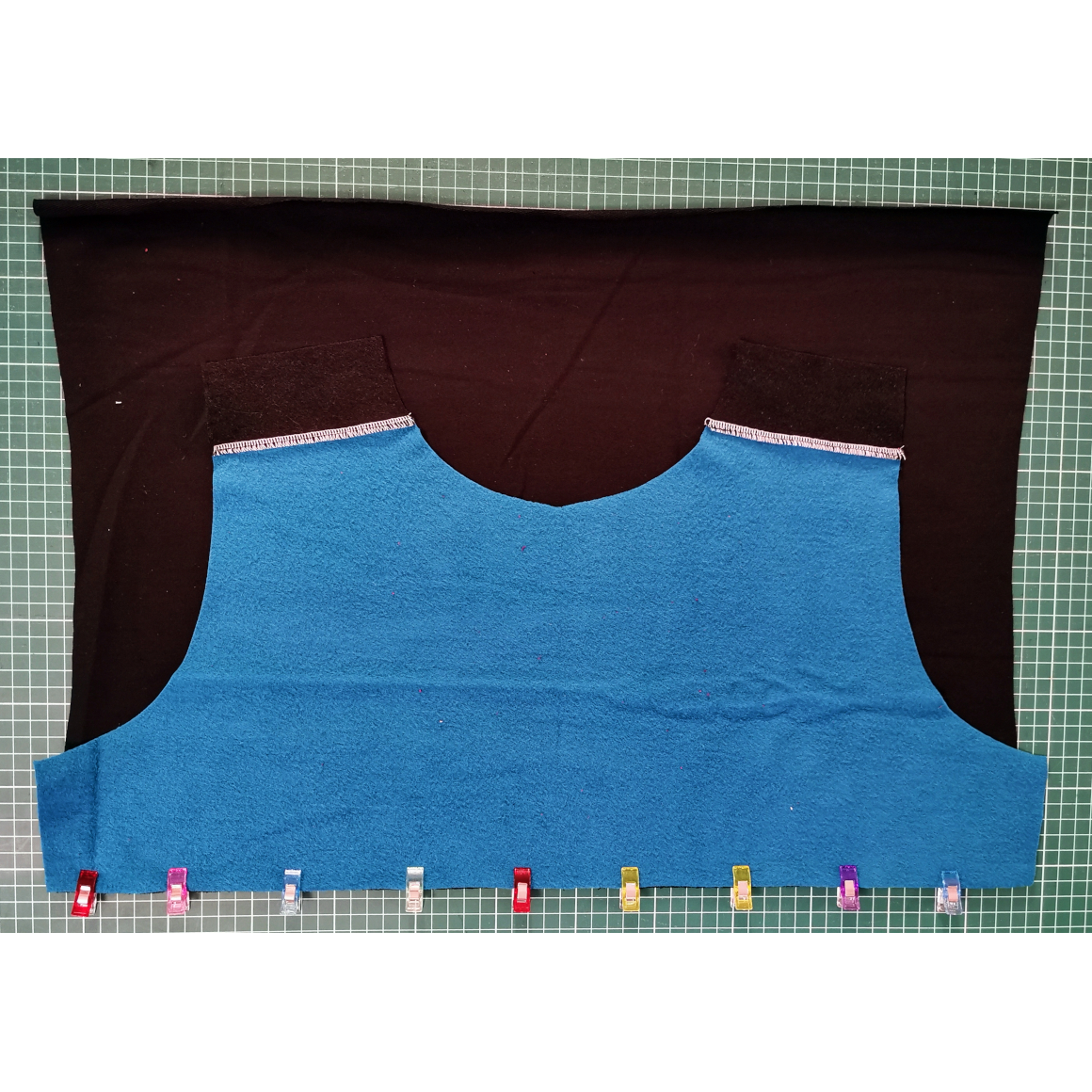 Dann stecke das vordere Brustteil auf das vordere Unterteil und nähe es an.