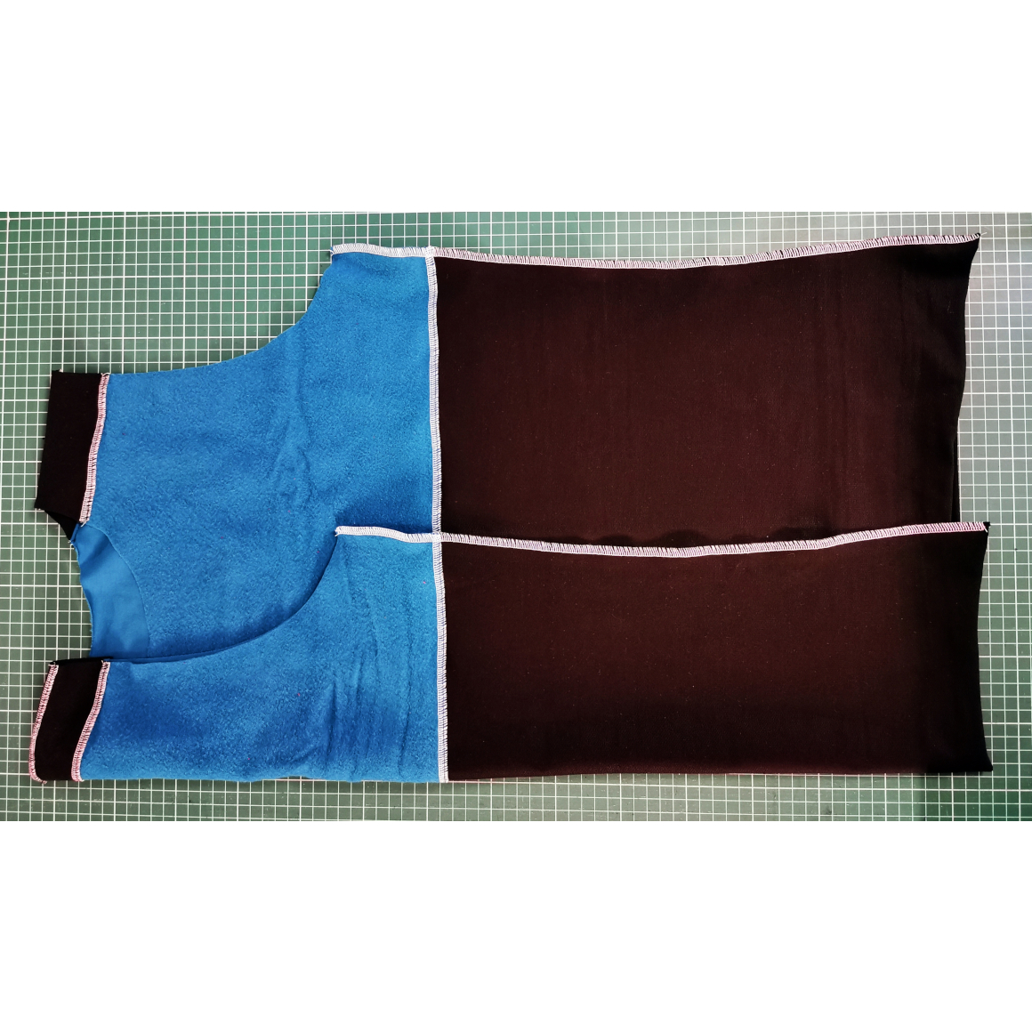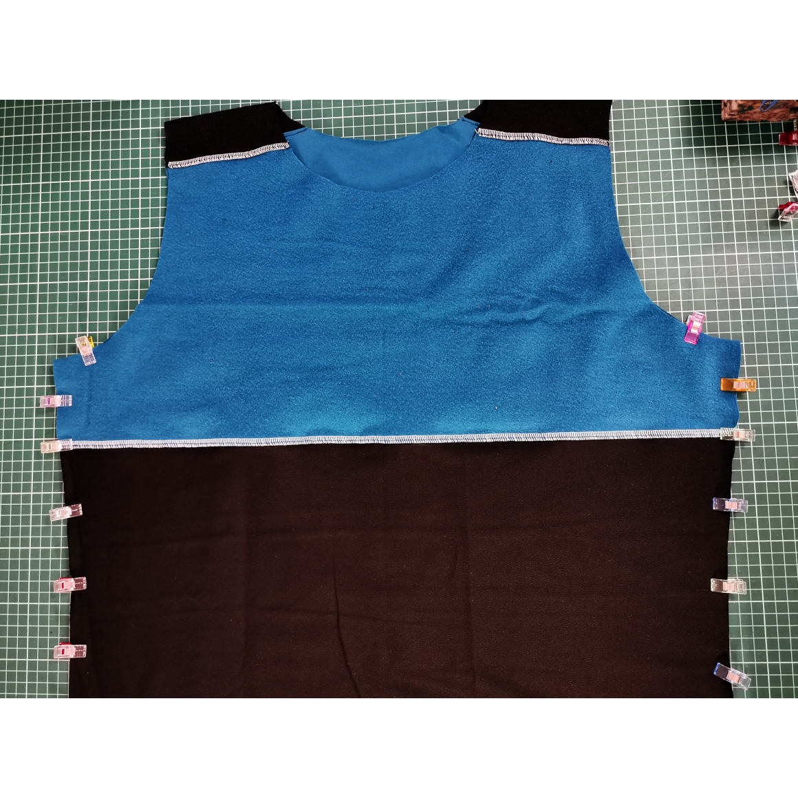 Nähe jetzt noch die Bündchen an und lege die Ärmel bei Seite.