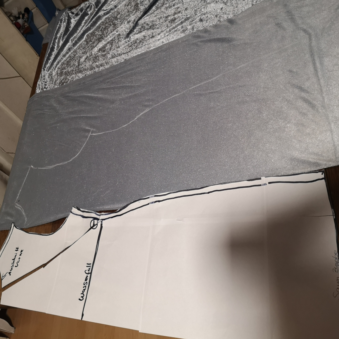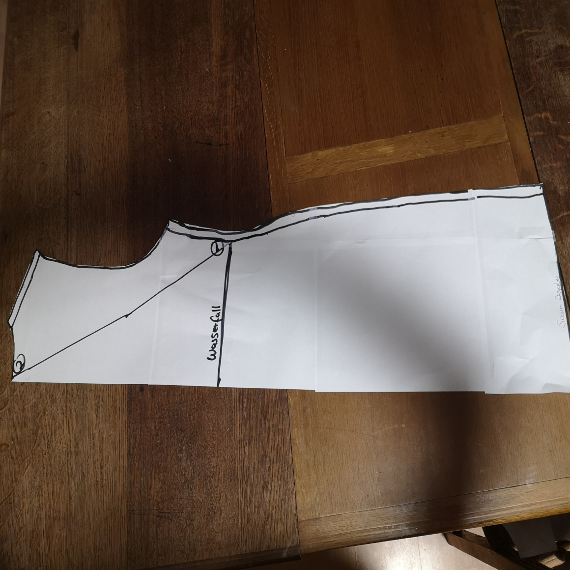 Ich zeichne mein Kleid ab und gebe an den Schultern und den Seiten noch 1 cm NZ hinzu.