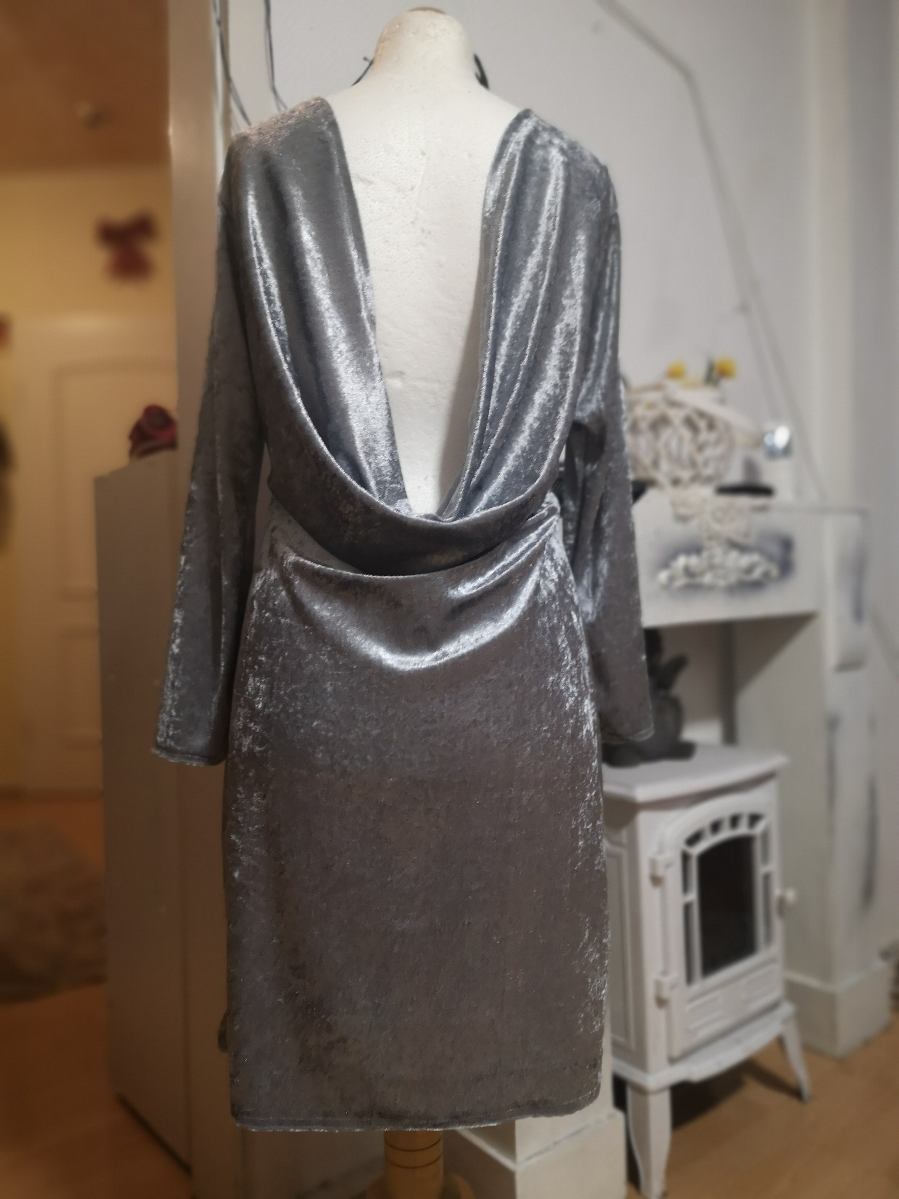 Hier hat Diana Yildirim Euch eine tolle Nähanleitung für ein edles Wasserfallkleid aus Pannesamt erstellt! Es ist rückenfrei und sieht super edel aus!