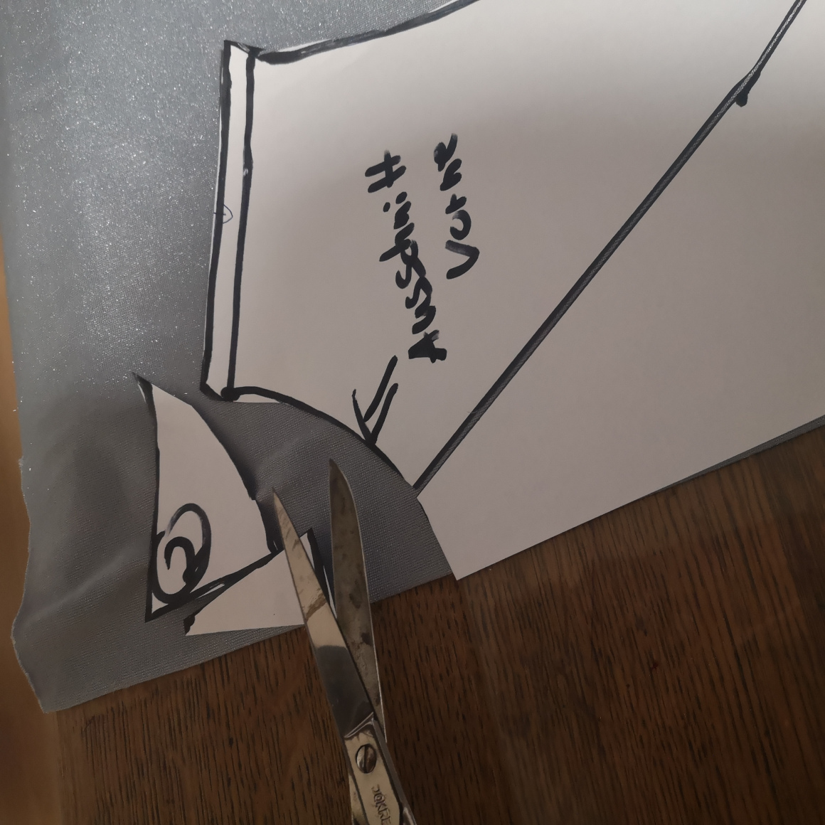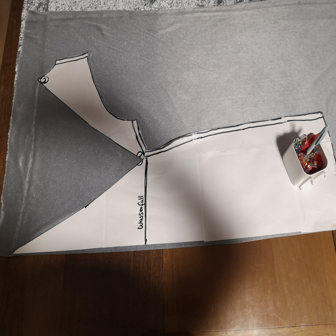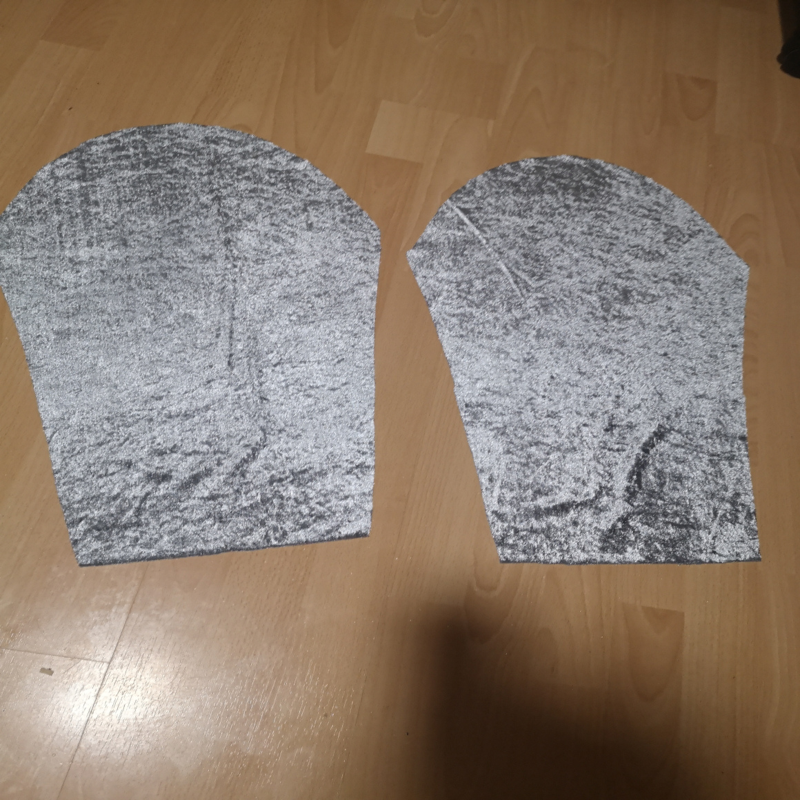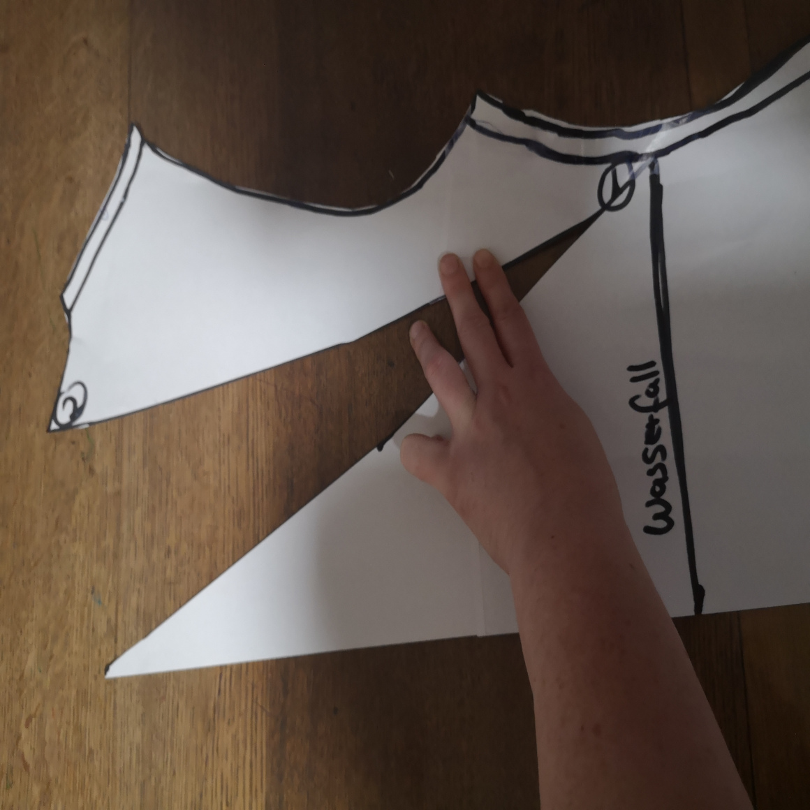 Nun lege ich dieses Schnitteil wieder auf den Bruch auf meinen Stoff und zeichne auch dieses ab und schneide es aus.