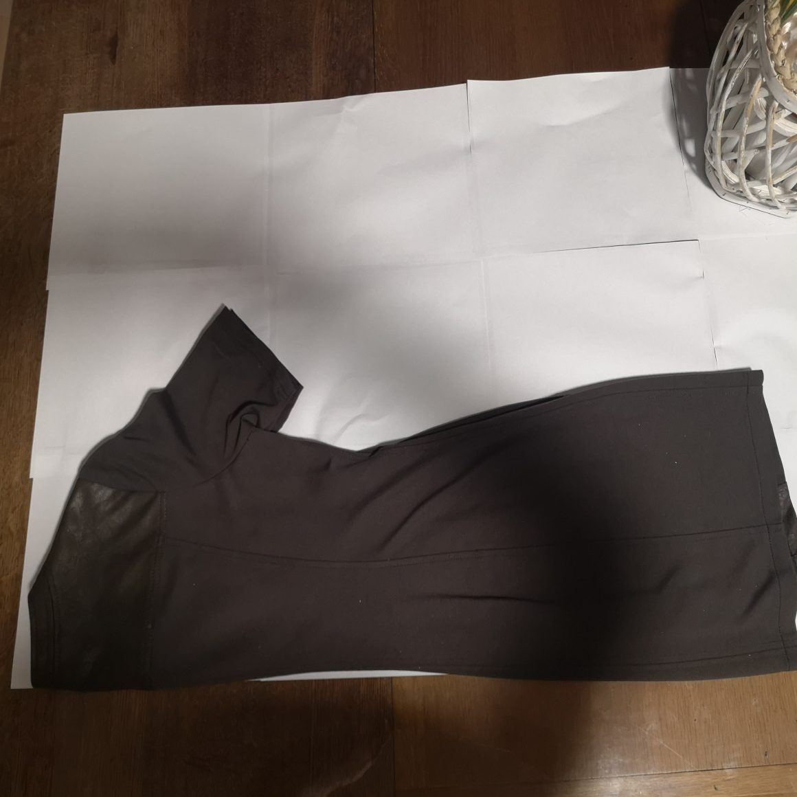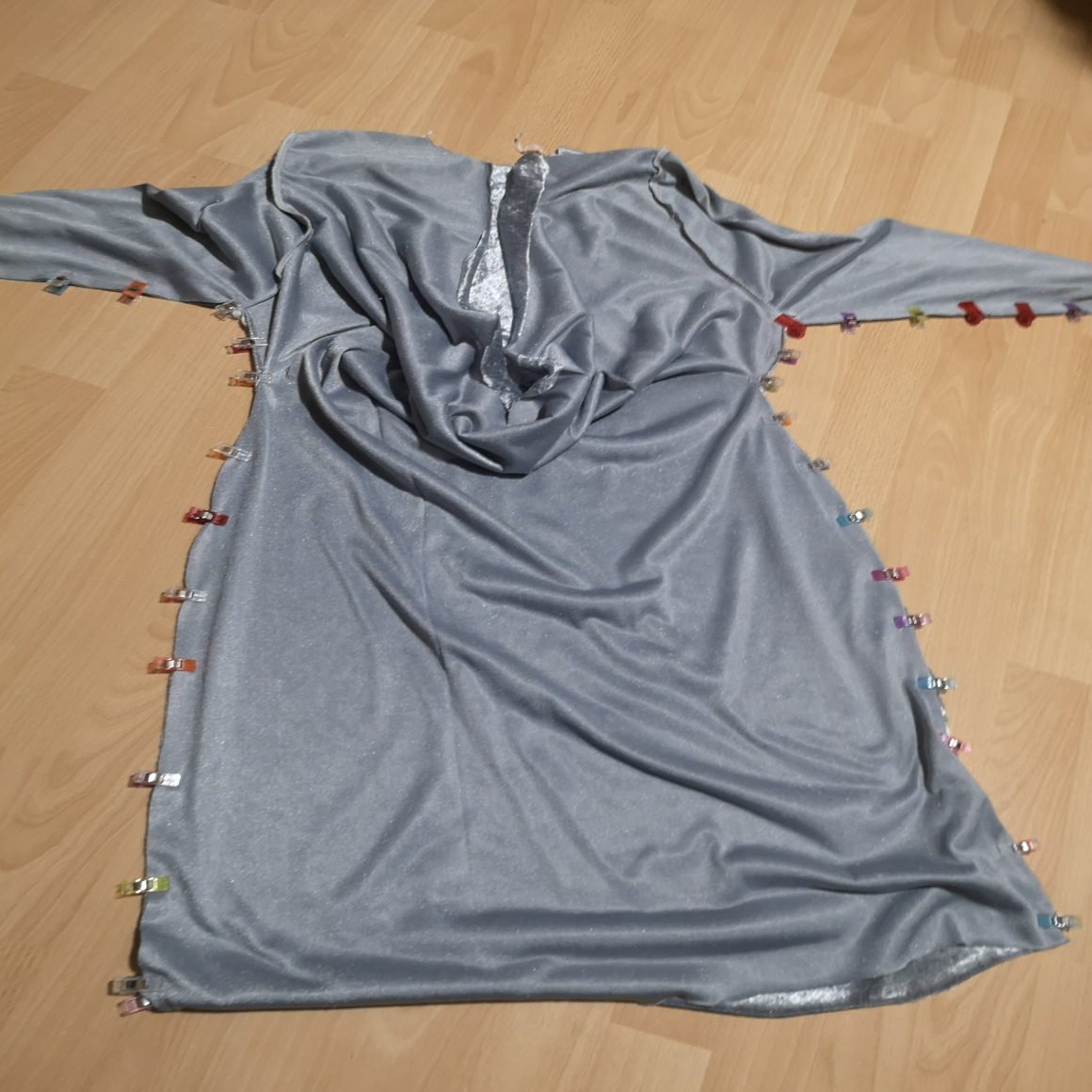 Wir brauchen als erstes einen Grundschnitt, dafür nehme ich mir ein von mir passendes Kleid in gerader Form aus meinem Kleiderschrank.