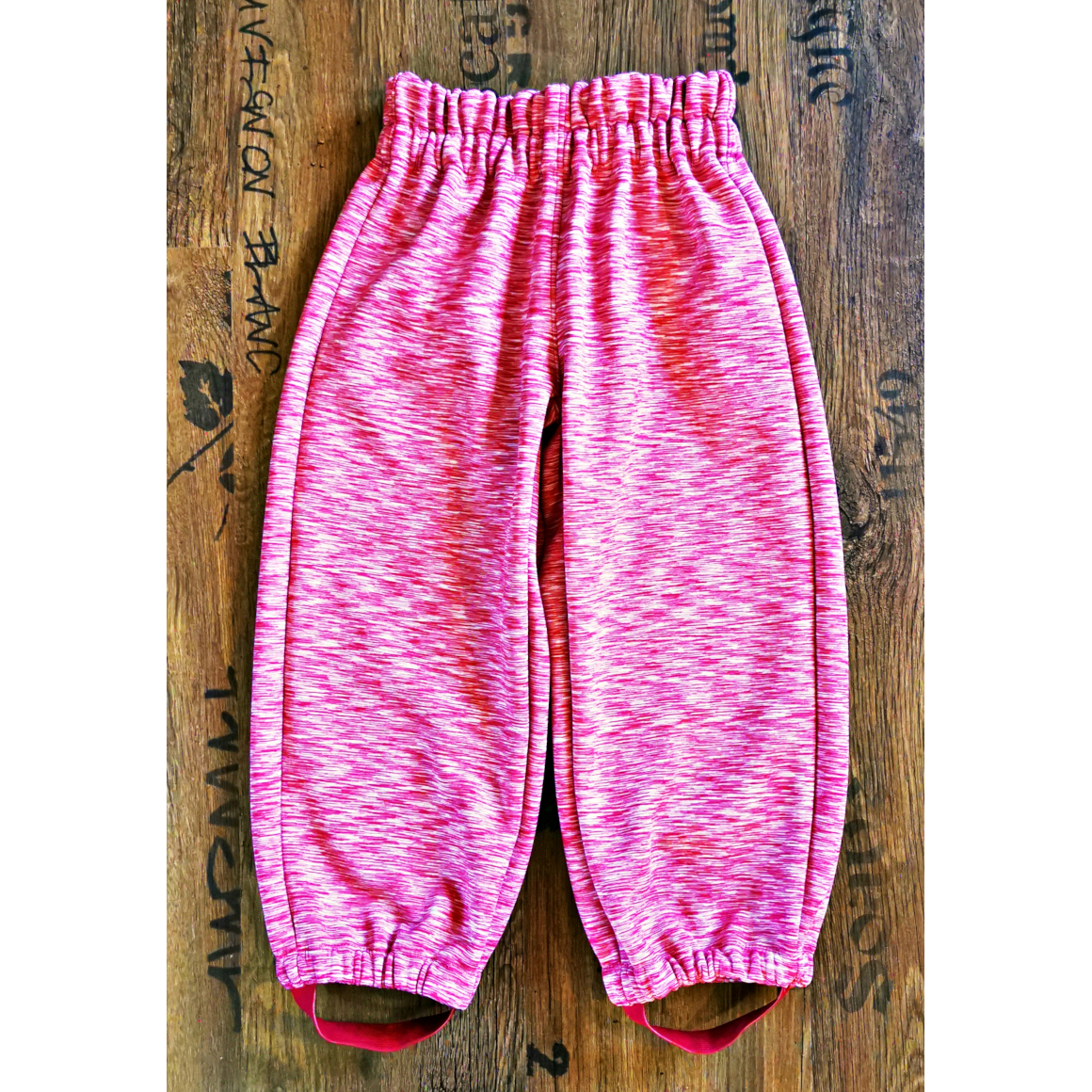 Wenn Du das Gummiband durchgezogen hast, sind die Hosebeine schon fertig. Optional kannst Du noch ein Schuhgummi annähen, für einen festen Halt.