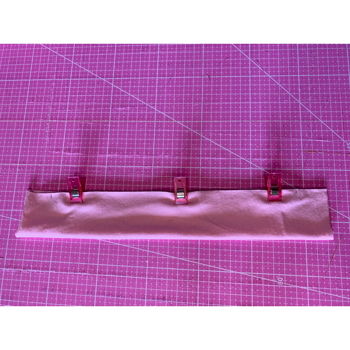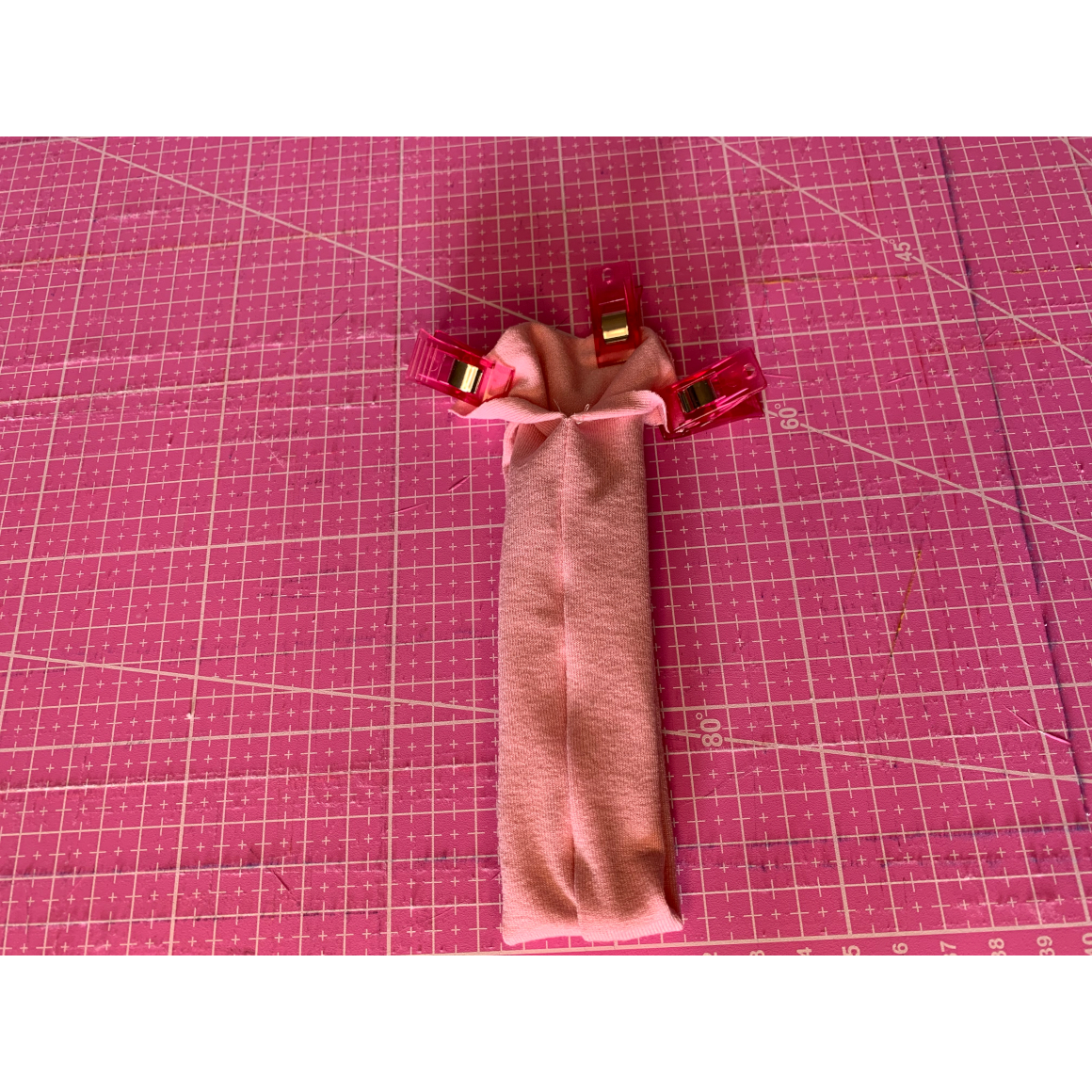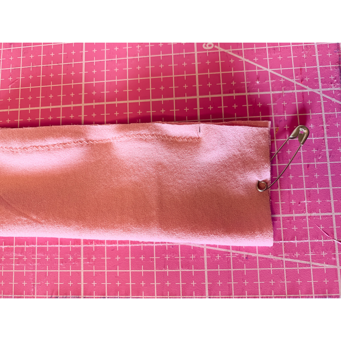Im nächsten Schritt steckt Ihr euch die offenen Enden auf einander, oder Ihr verwendet Stoffklammern und näht die Ränder zusammen.