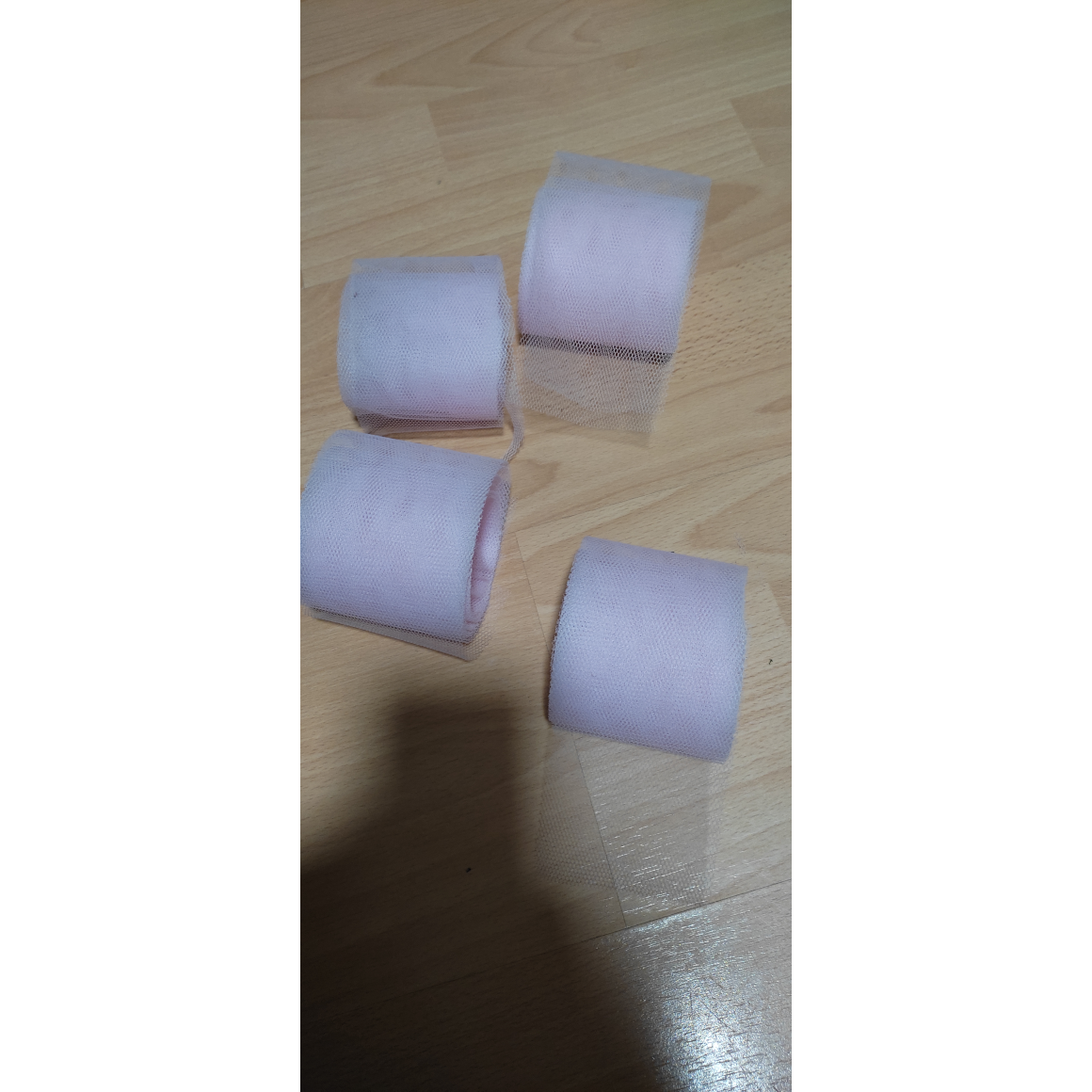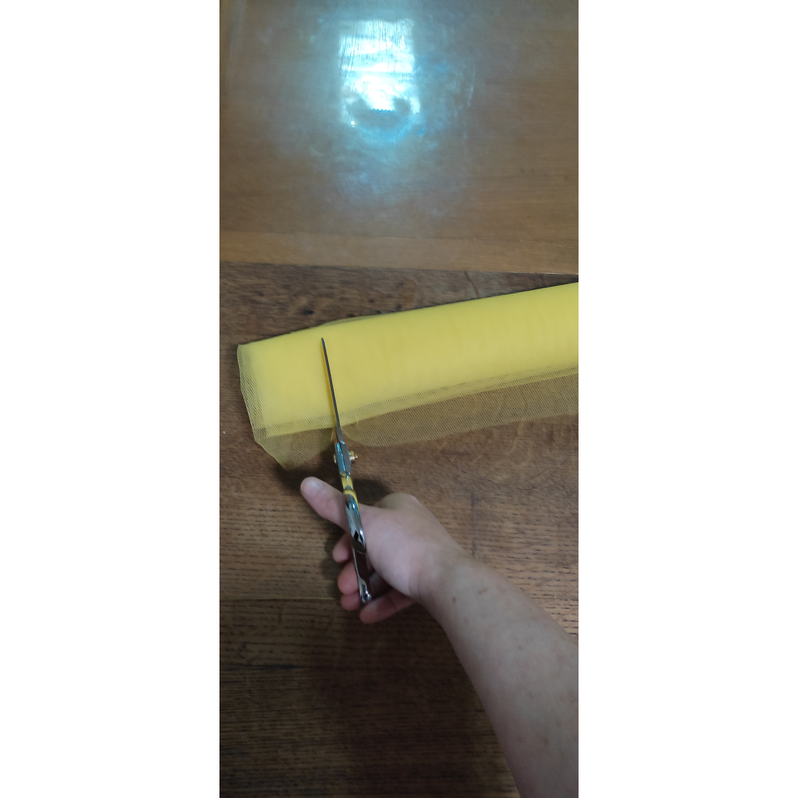 Nun schneide die Tüllrolle in gleichmääßige Streifen.