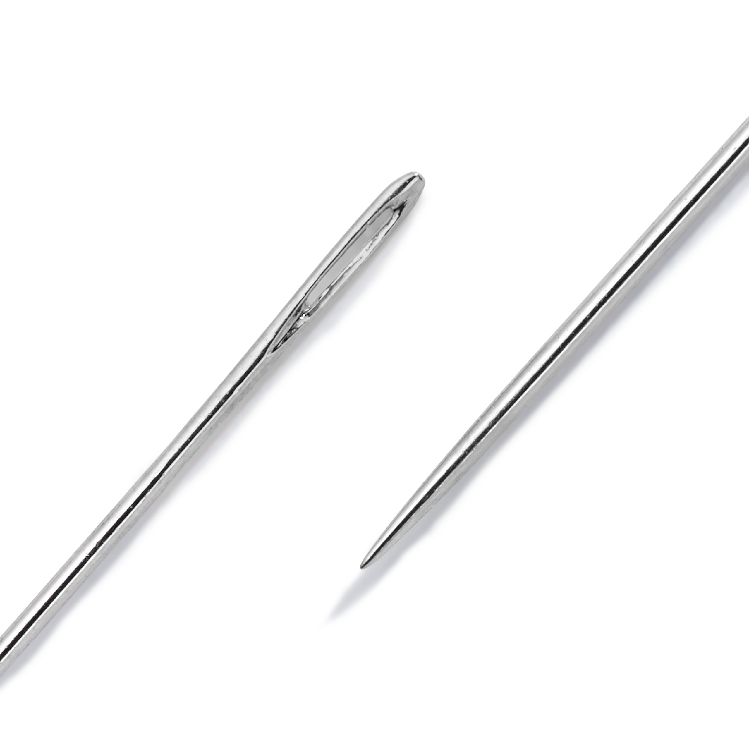 Die ultrafeinen, aus dünnem Federstahldraht gefertigten Perlnadeln mit sehr kleinem Nadelöhr eignen sich zum Vernähen und Annähen von Applikationen und Strass sowie für die Perlstickerei. Trotz ausgeprägter Flexibilität bleiben die Nadeln stabil, ohne zu verbiegen oder gar zu brechen. Prym bietet die Perlnadeln den Größen Nr. 10 und 12 als Sortiment auf Karte und einzeln sortiert im Brief an.