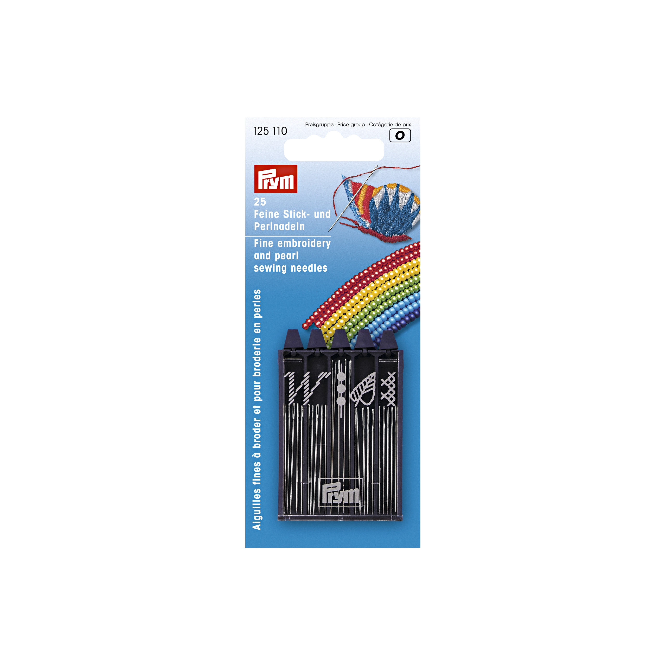 Das Sortiment aus 25 feinen Stick- und Perlnadeln in der pflaumenblauen Spender-Box enthält Nadeln für die Weiß- und Perlenstickerei sowie für Plattstich- und Kreuzsticharbeiten. Die Nadeln aus gehärtetem Stahl weisen eine ausgewogene Gebrauchselastizität auf und verfügen über ein gratfrei gearbeitetes Öhr.
