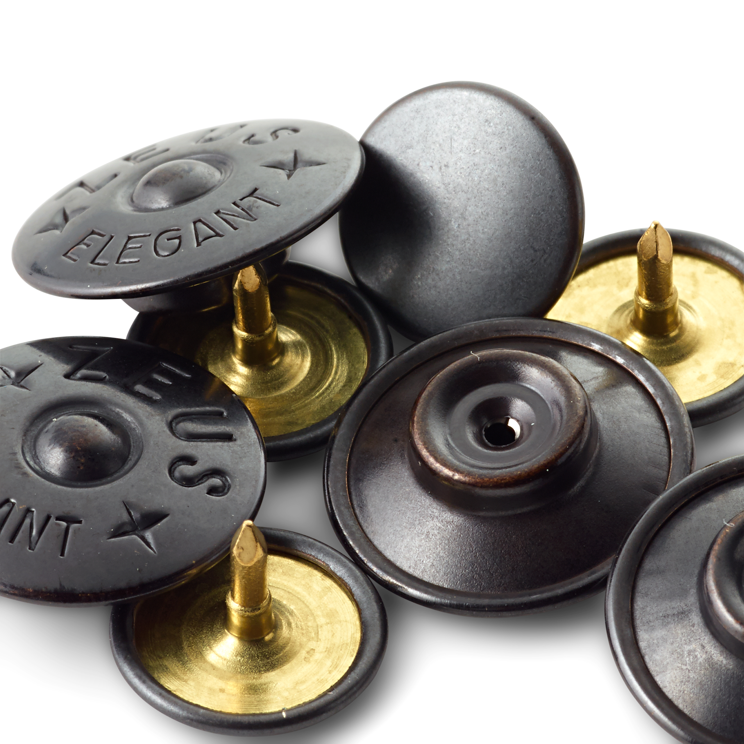 Patentknöpfe sind ausgesprochen praktisch, denn sie lassen sich schnell montieren und bei Reparaturen problemlos austauschen. Der nähfreie Patent-Knopf wird am Bekleidungsstück befestigt, indem der spitze Stift per Hand oder Hammer von der Gegenseite in den Knopf gedrückt wird.