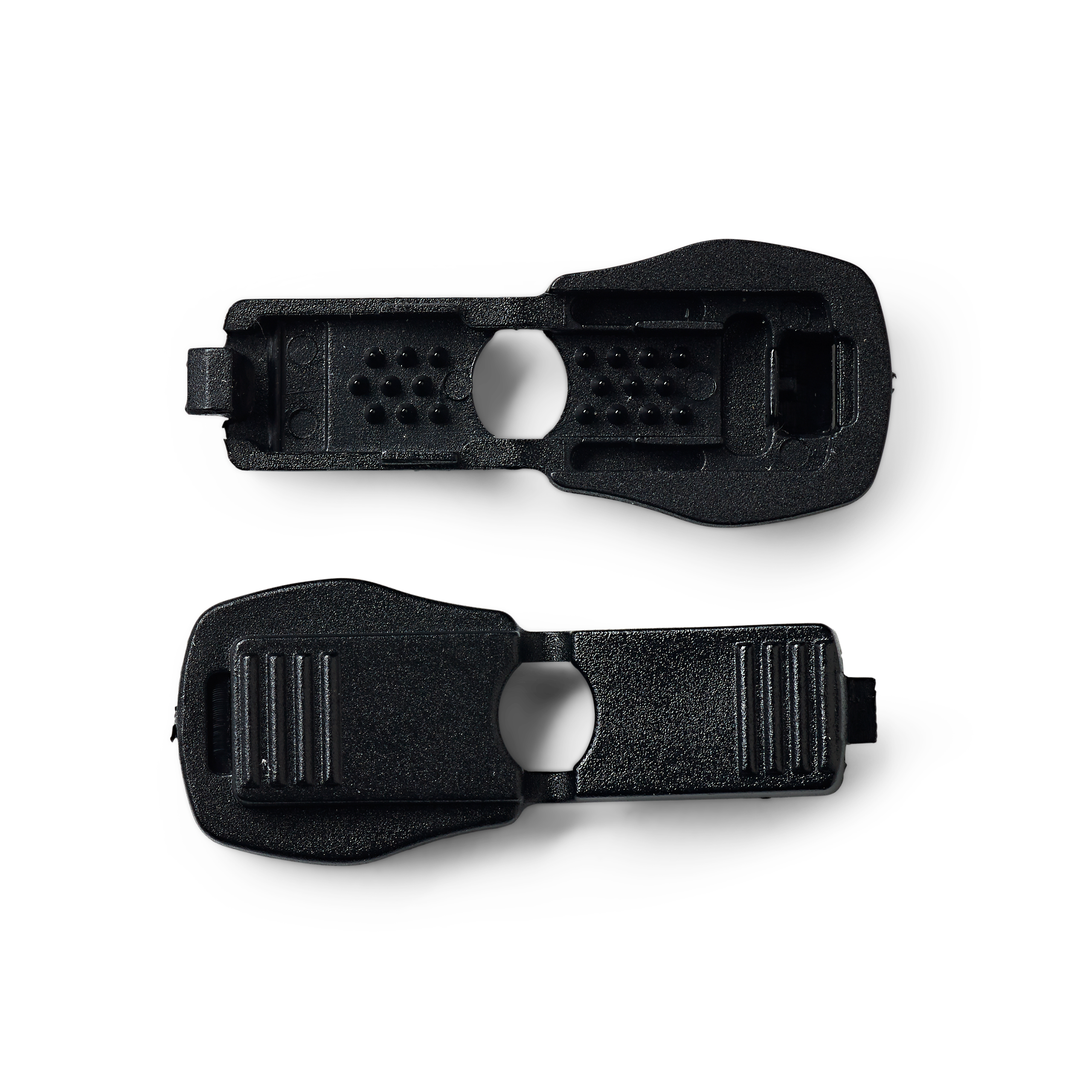 Die klappbaren Kordelenden aus schwarzem Kunststoff passen sowohl zu Regenjacken als auch zu Hoodies oder Sweatern. Das Kordelende wird sauber abgeschnitten und in die Klapp-Kordelenden eingelegt. Klappt man nun die beiden Hälften des Kunststoffteils fest zusammen, wird die Kordel durch die Zahnung im Inneren gehalten und kann nicht herausrutschen. Damit schützen sie das Kordelende vor dem Ausfransen und verhindern gleichermaßen, dass die Kordel in den Tunnelzug hineinrutschen kann.