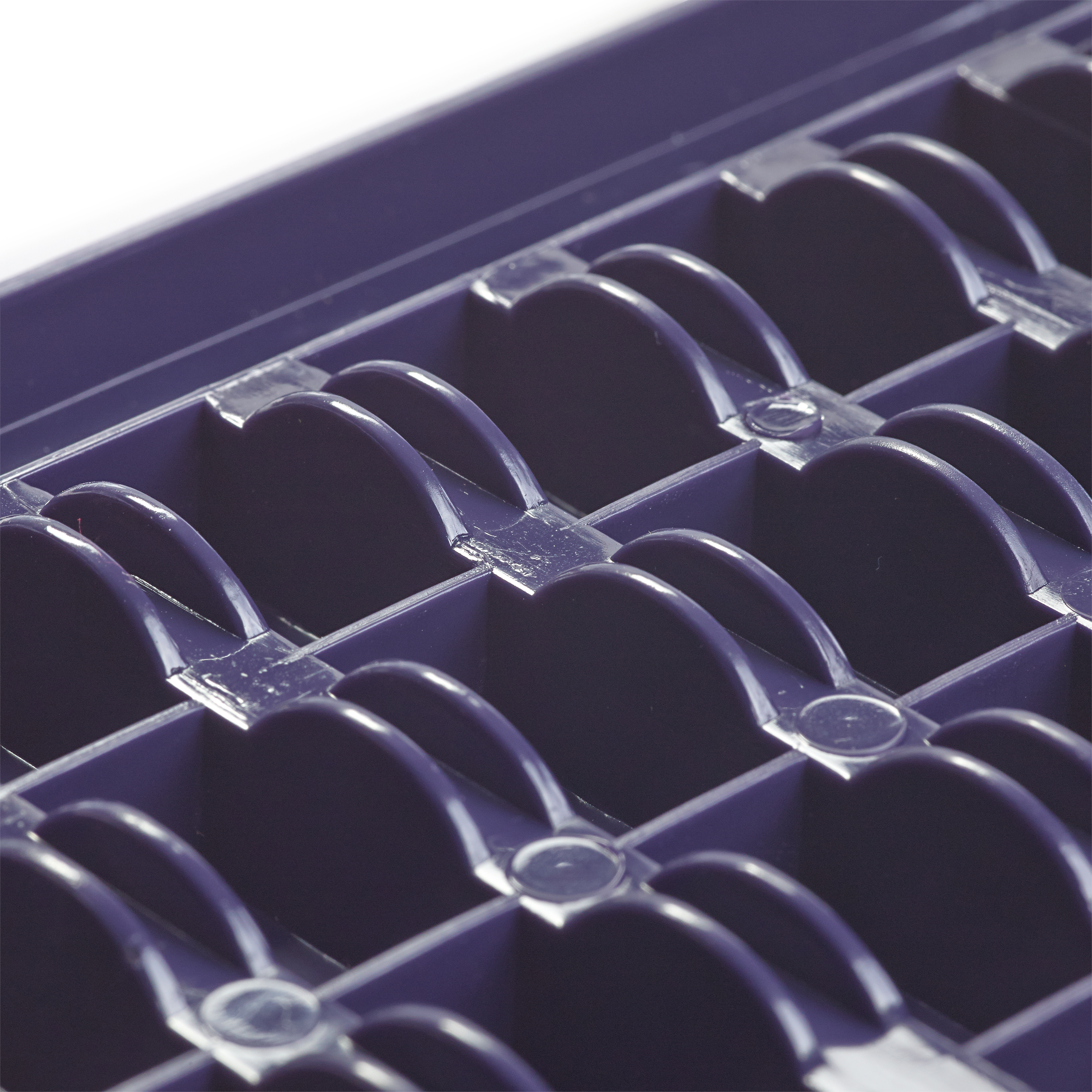 Die Spulendose aus pflaumenblauem Kunststoff mit transparentem Deckel bietet Platz für 32 Nähmaschinenspulen aller gängigen Systeme. Ob CB-Spulen, Spulen für den Doppelumlaufgreifer, oder den Horizontalgreifer: Alle Nähmaschinenspulen können übersichtlich und ordentlich verstaut werden. Der transparente Deckel im leicht gewölbten Design sorgt für den nötigen Durchblick und damit für Übersicht über die Garnvorräte. Ein plastisch herausgearbeiteter Stern schmückt den Deckel der Dose und macht sie so zu einem echten Hingucker. Durch zwei Kunststofflaschen an der Vorderseite der Dose lässt sie sich problemlos mit einer Hand öffnen und schließen.