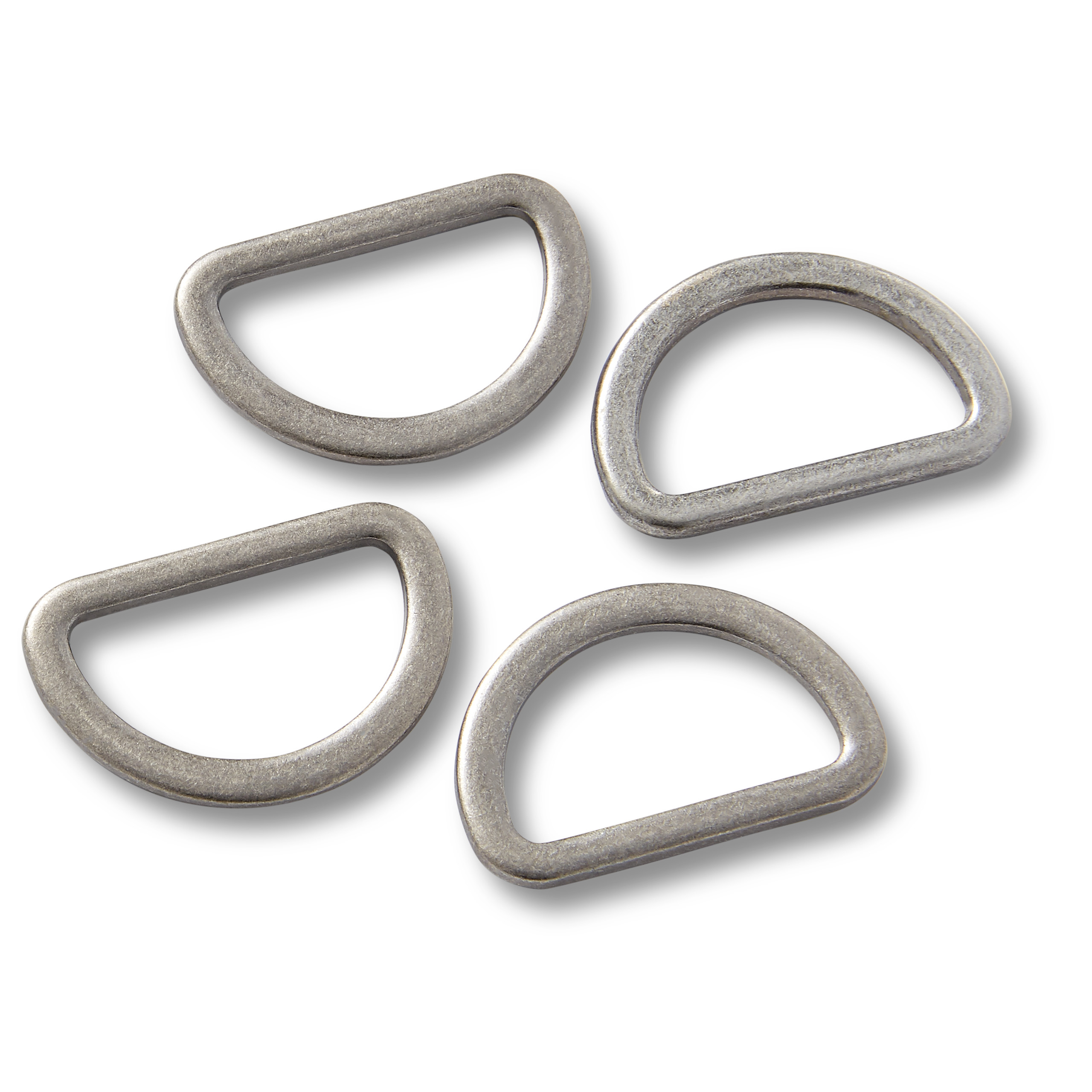 Halbrundringe oder auch D-Ringe sind formschöne Allrounder, denn sie lassen sich optimal für Taschenverschlüsse oder für verstellbare Trageriemen, aber auch für Gürtel, Bekleidung, Rucksäcke, Schlüsselanhänger und vieles mehr einsetzen. Auch als cooles Accessoire bei Taschen und Teenagerbekleidung oder zum Basteln sind die Halbrundringe perfekt verwendbar.