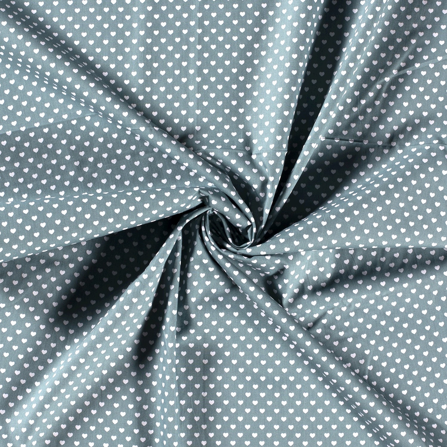 Produktinformationen "Baumwolle Popeline Stoff Bedruckt Herzen, altgrün"