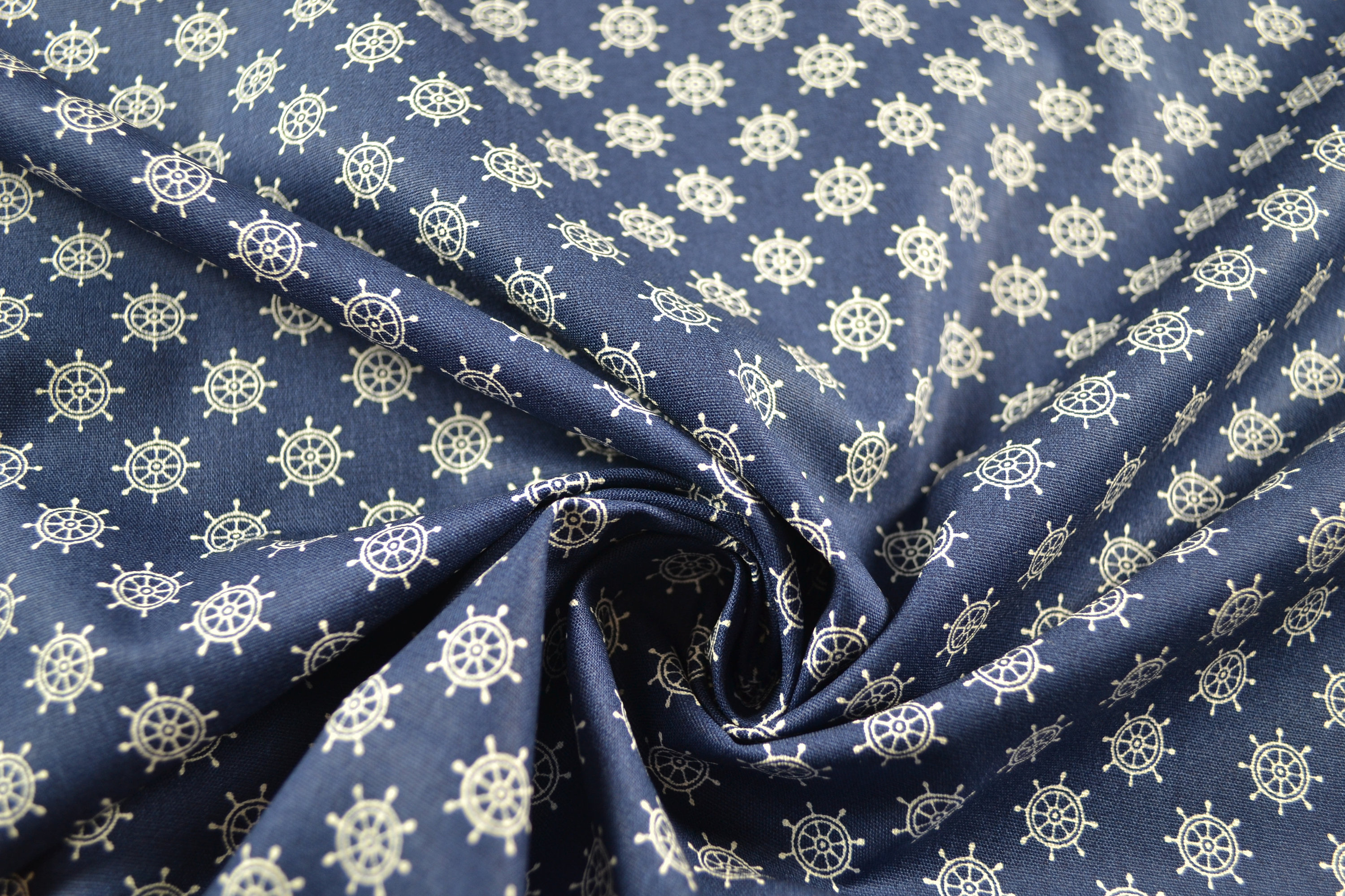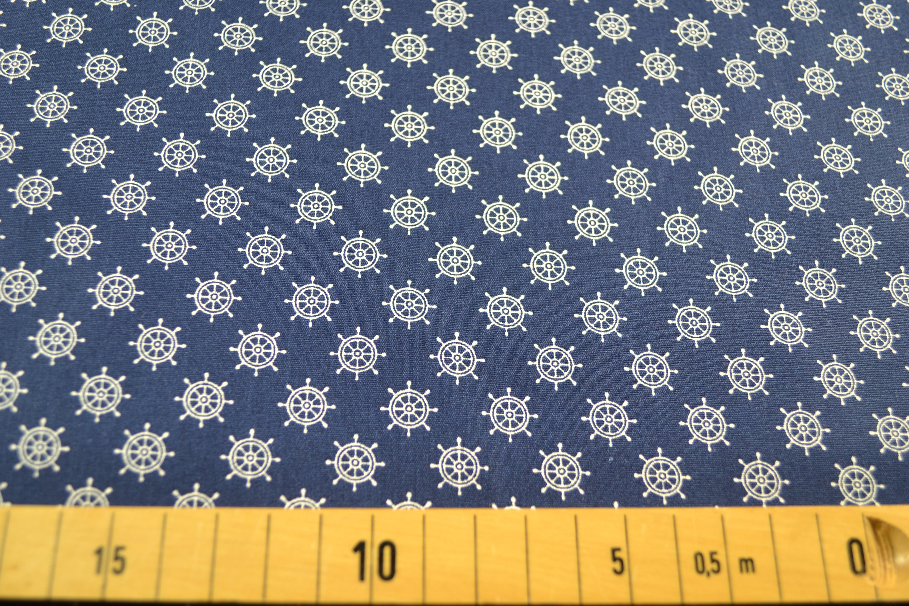 Produktinformationen "Baumwolle gemustert, Steuerrad marine/weiß"