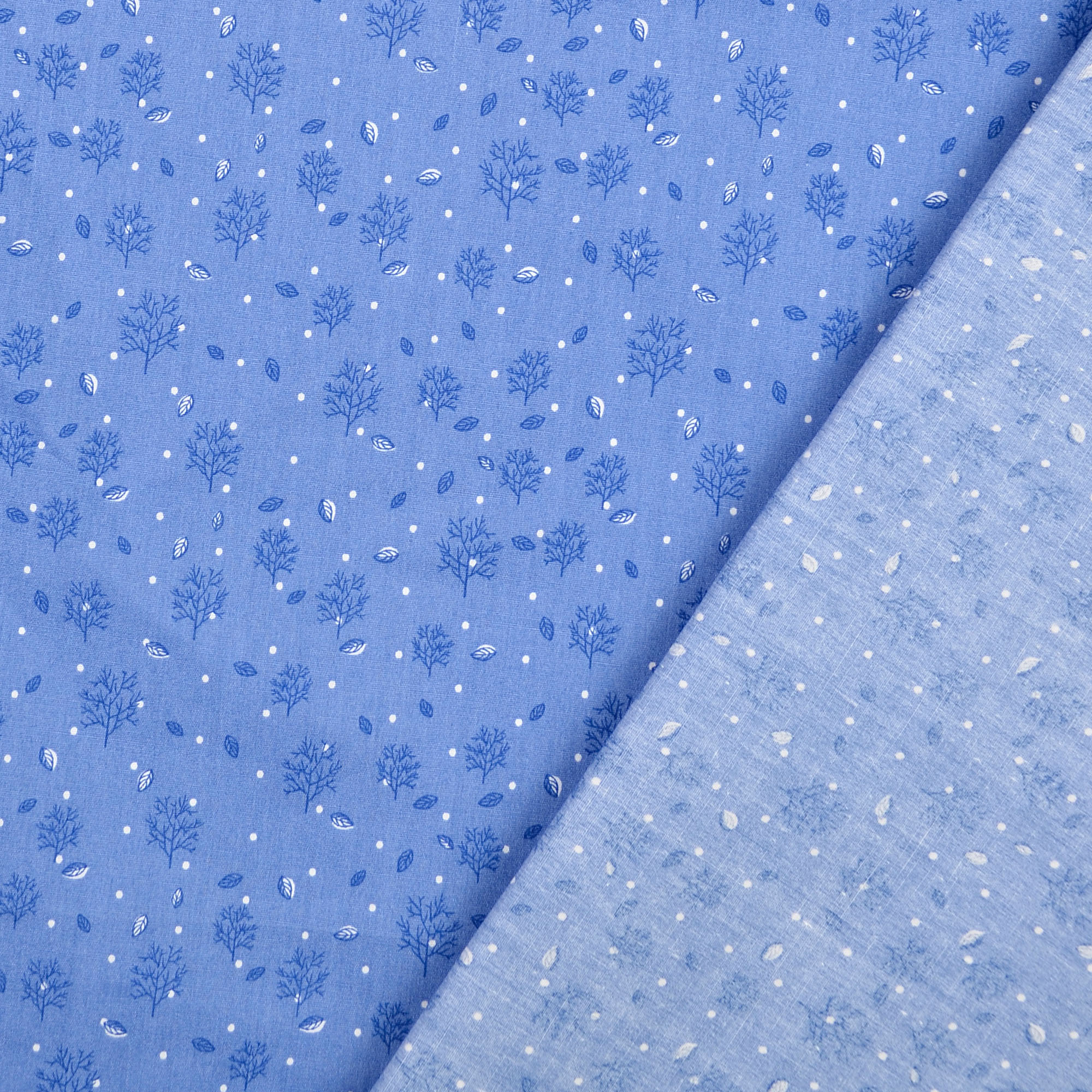 Baumwollstoff Popeline Bäume, jeansblau