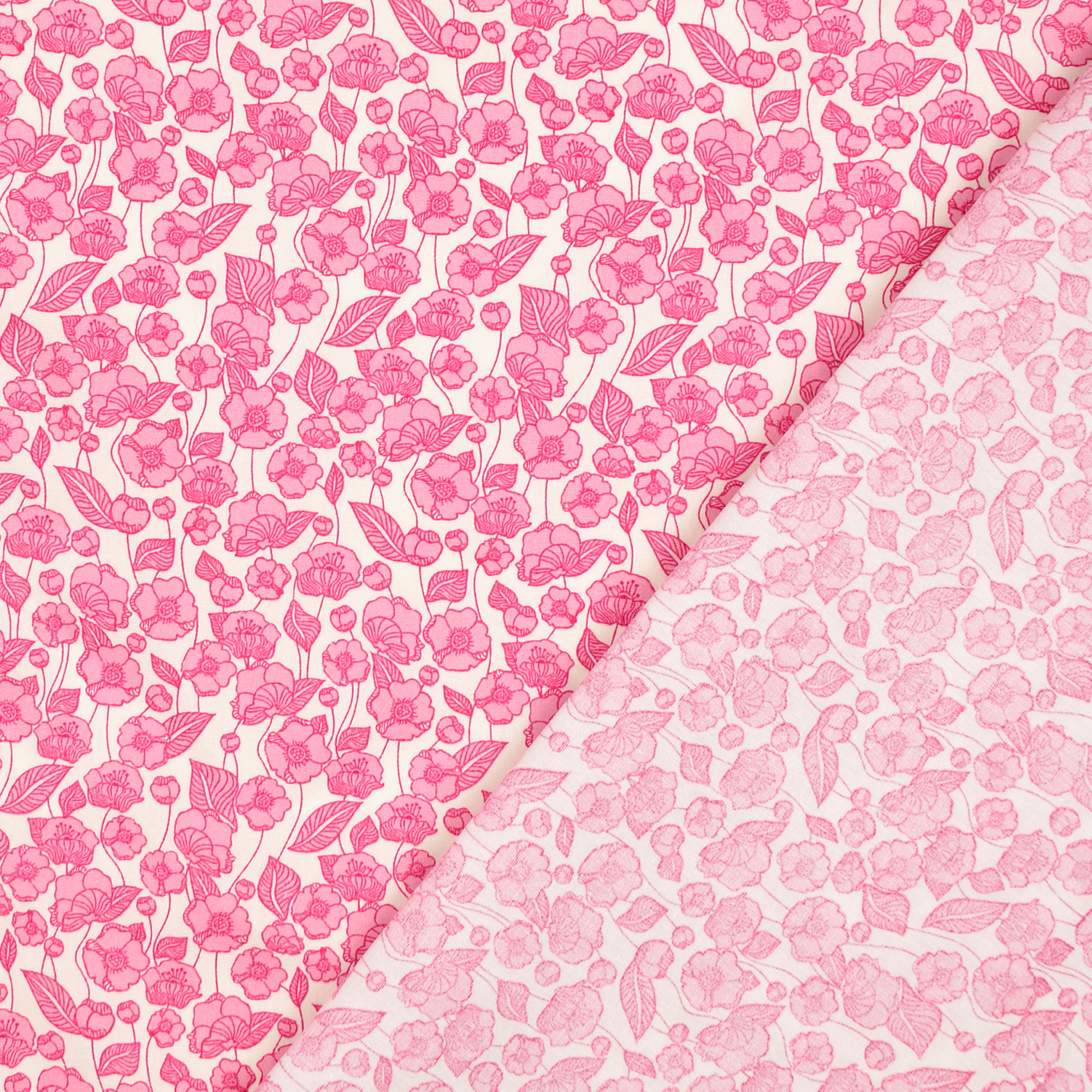 Baumwollstoff Popeline Florales Muster, rosa