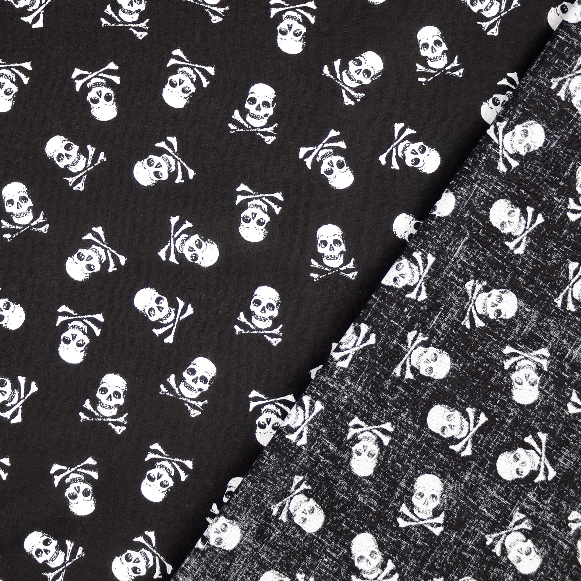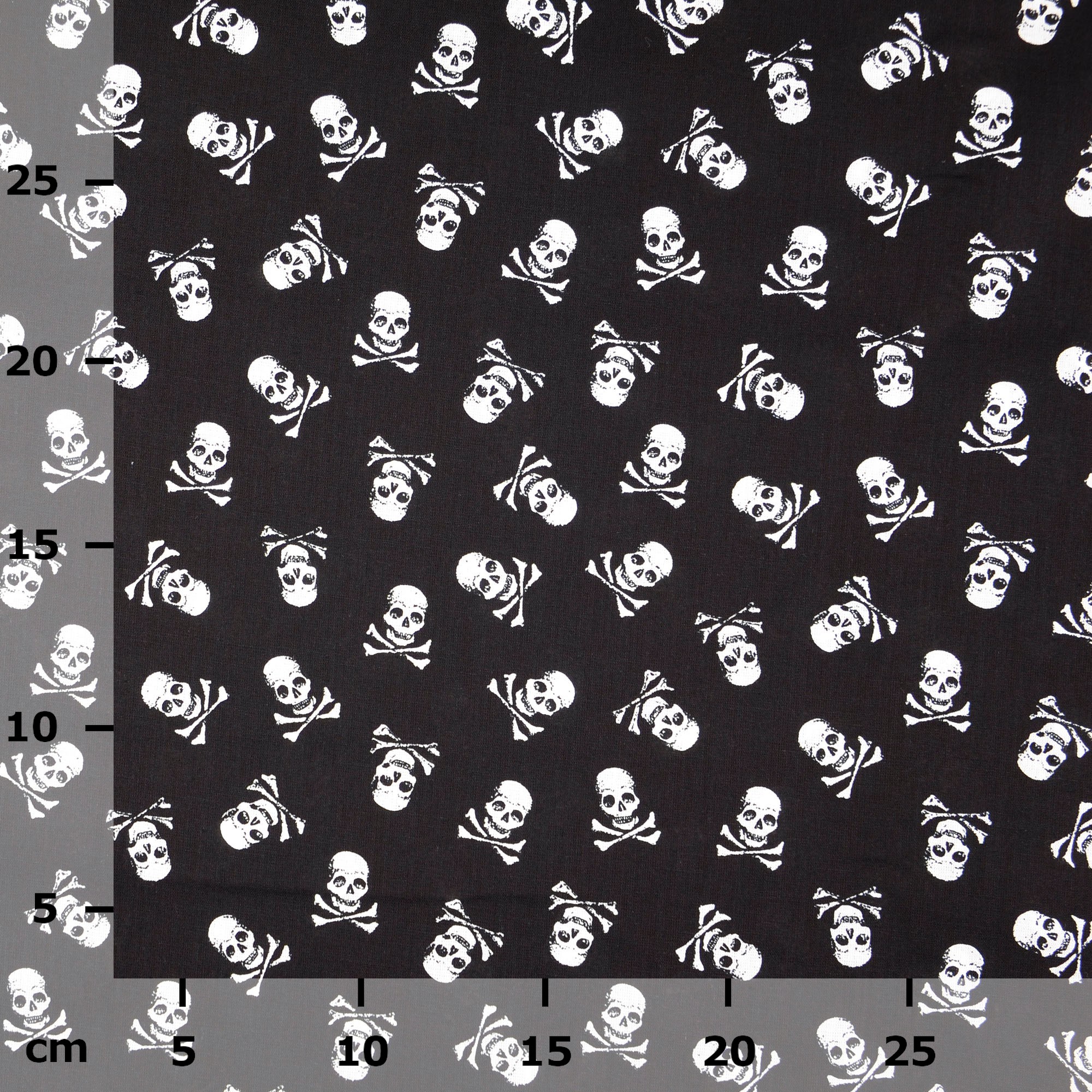 Produktinformationen "Baumwollstoff gemustert, Totenköpfe klein schwarz/ weiß"
