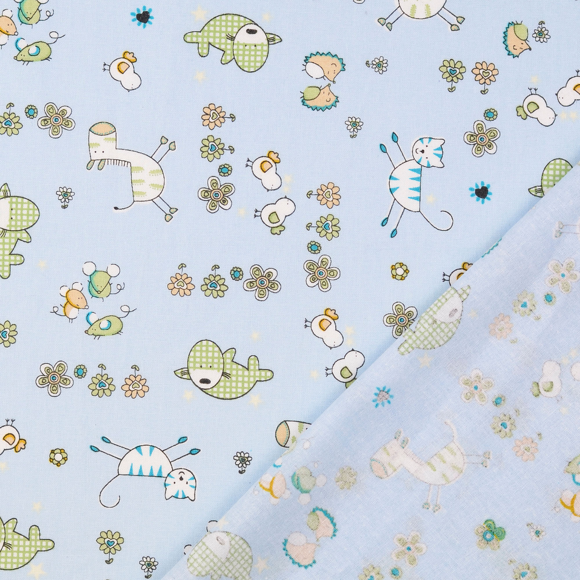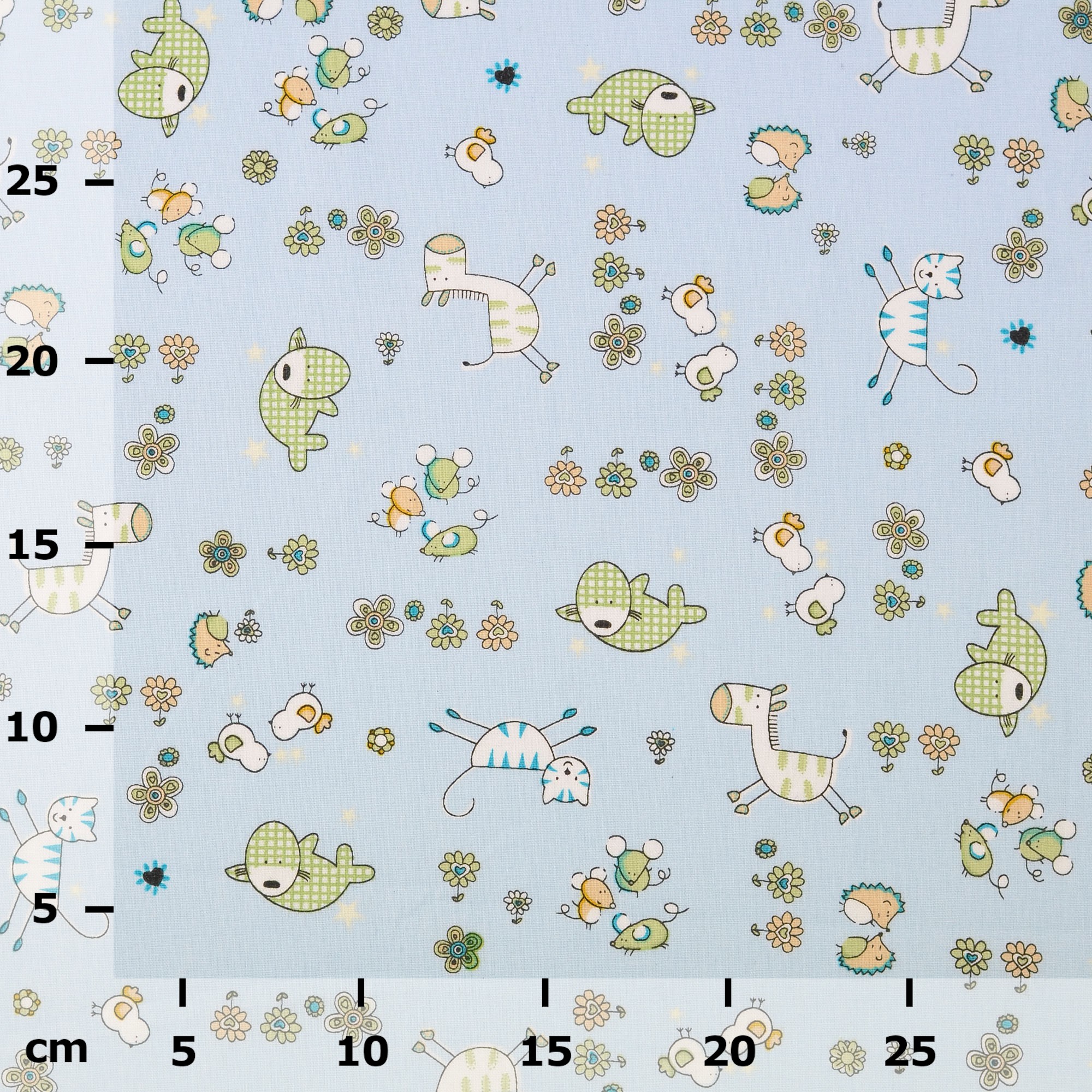 Produktinformationen "Baumwollstoff gemustert, Tierwelt, grün/ blau"