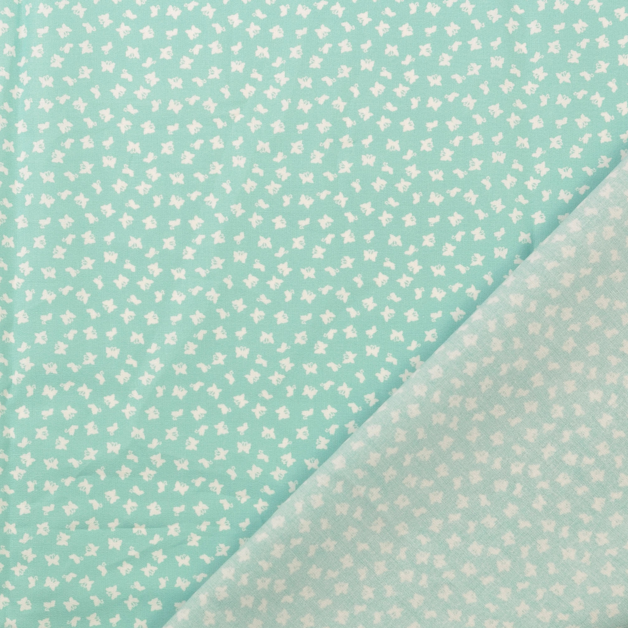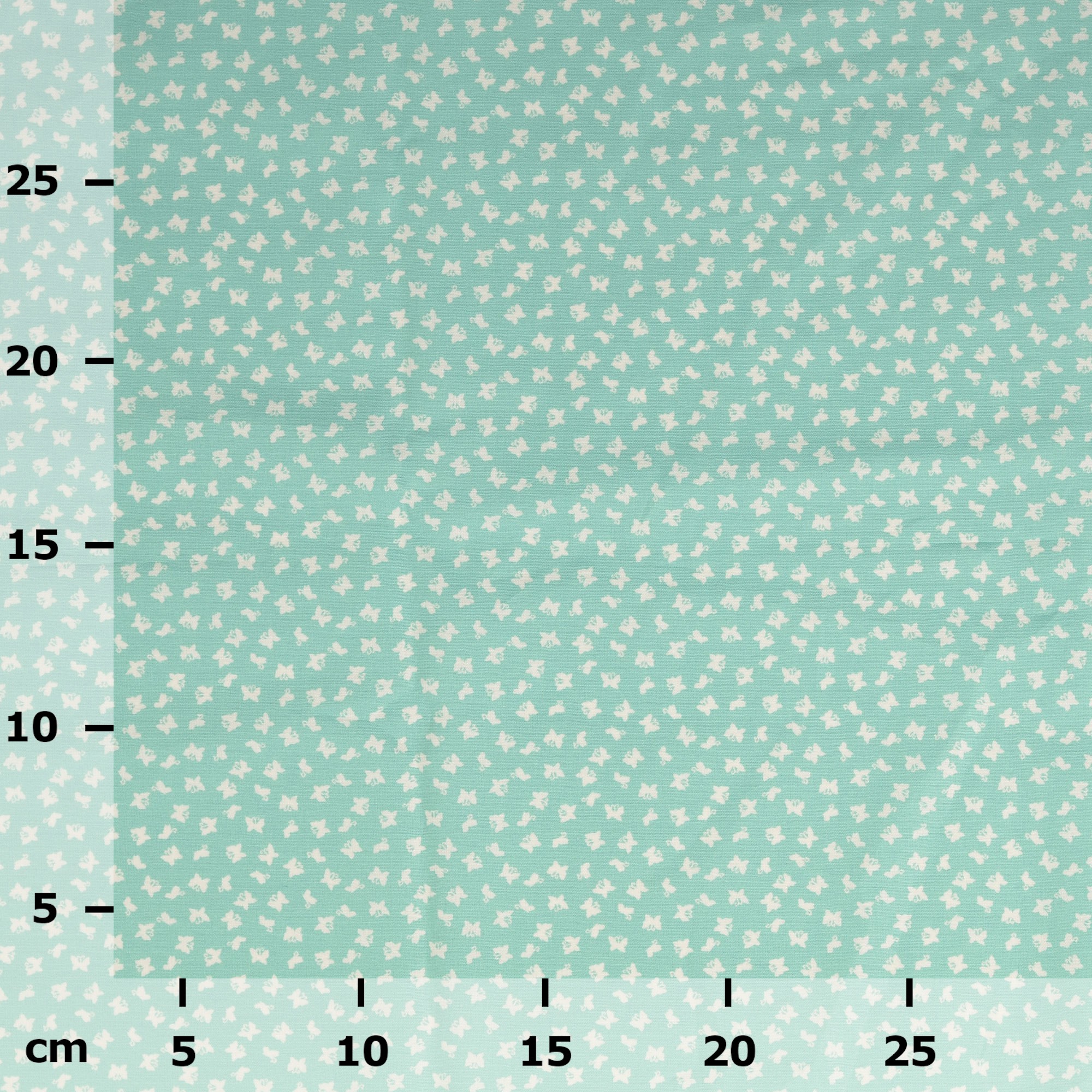 Produktinformationen "Baumwollstoff gemustert, Schmetterlinge klein, türkis/ weiß"