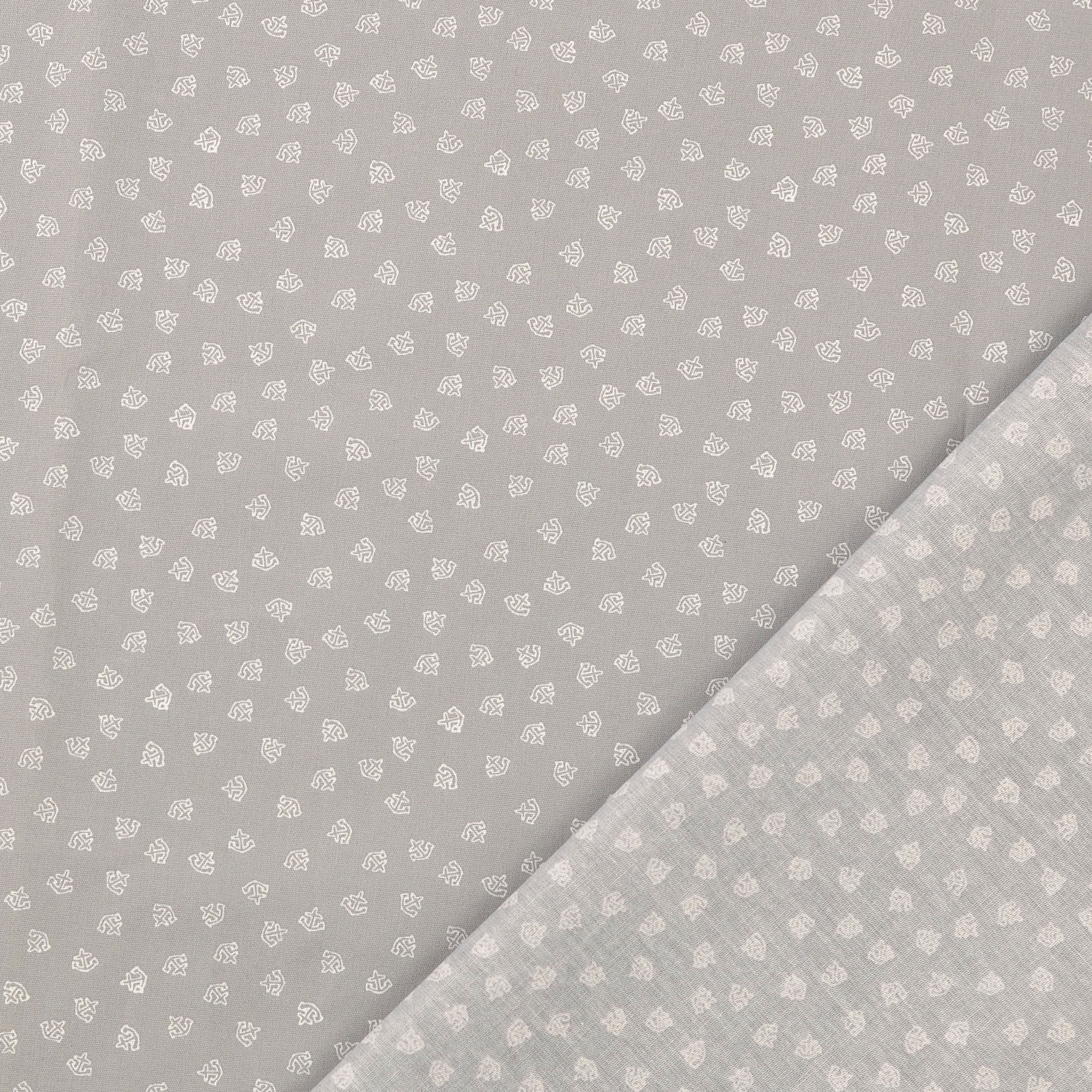 Baumwollstoff gemustert, Anker klein, grau/ Weiß